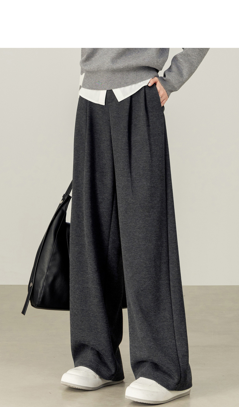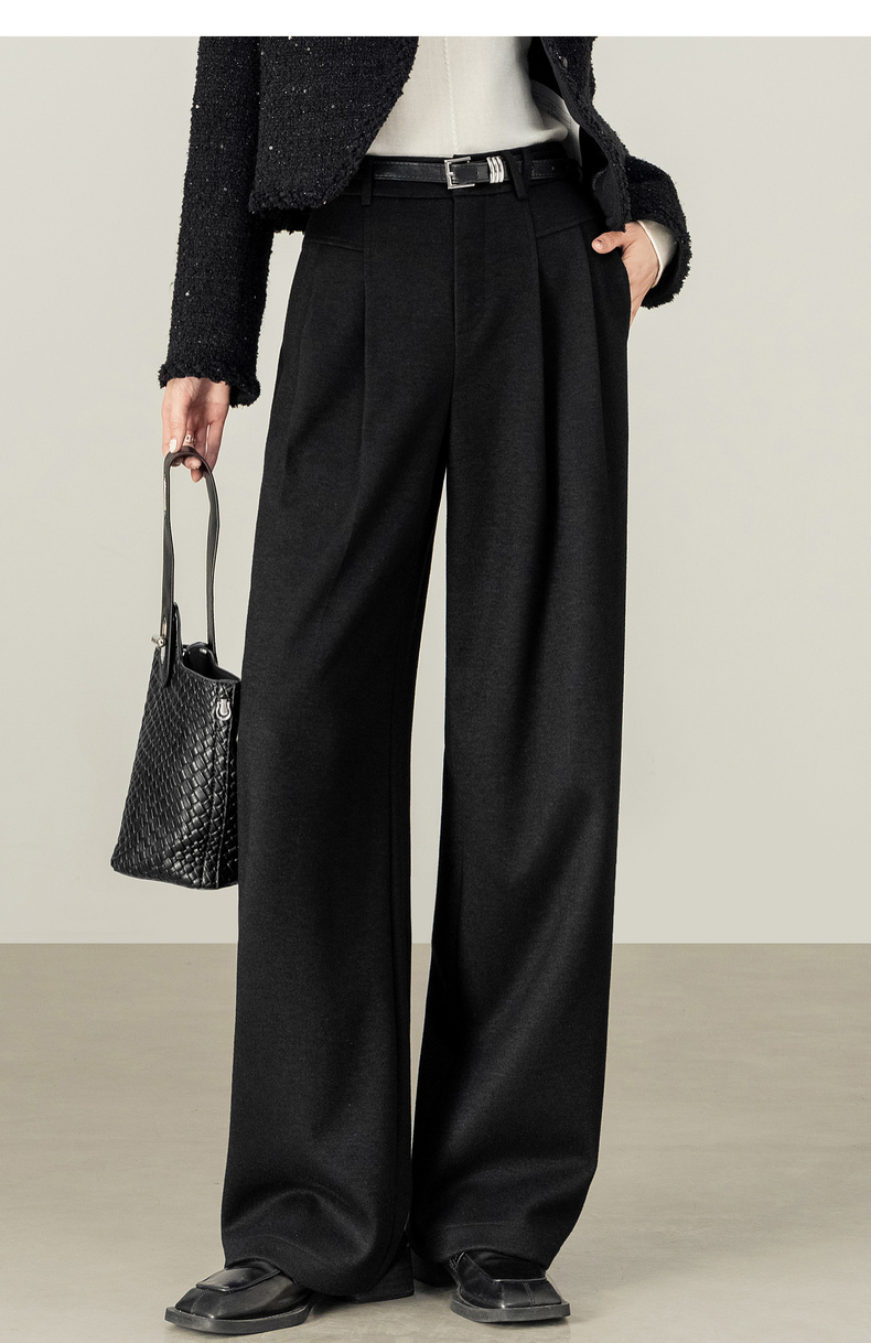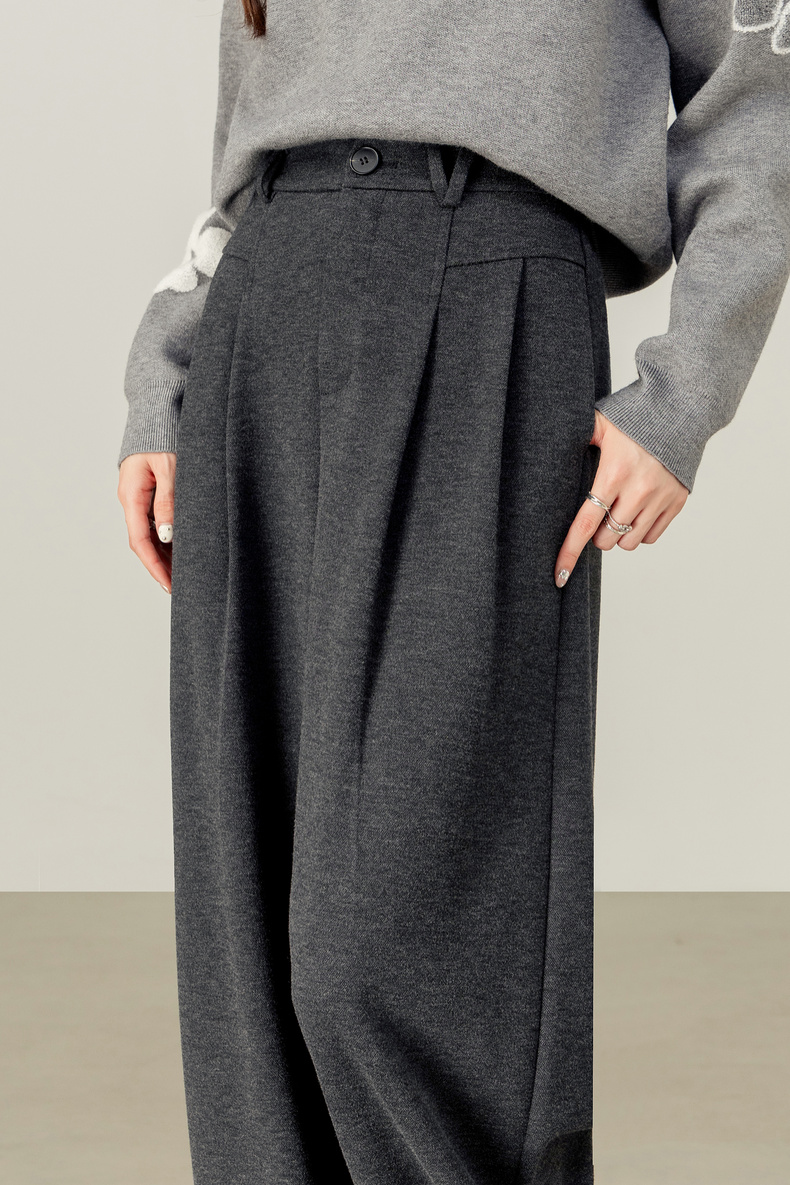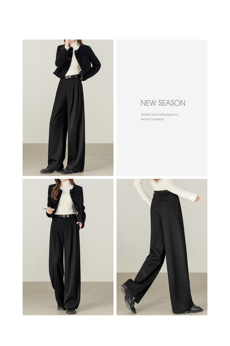 【内购】【显瘦易搭】简约通勤梨型身材松紧腰立体单褶遮肉呢子直筒长裤-153KA2457