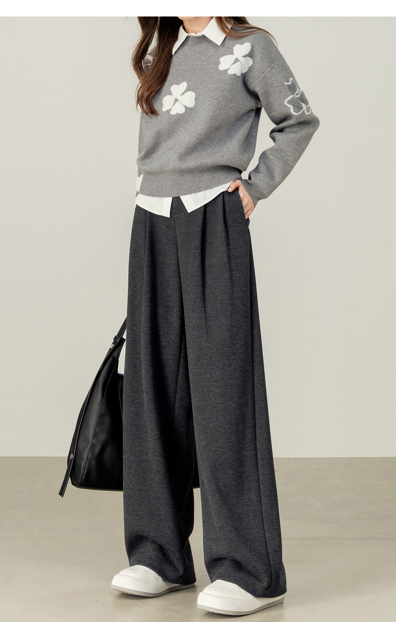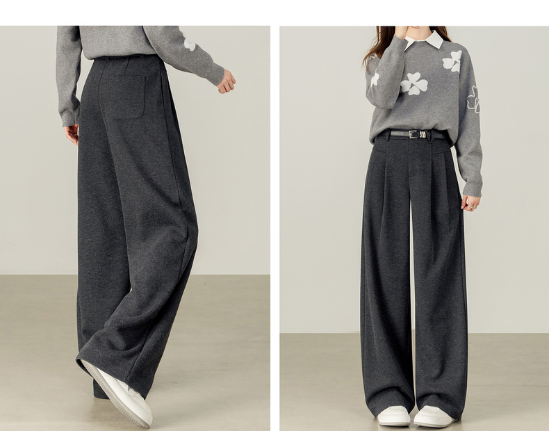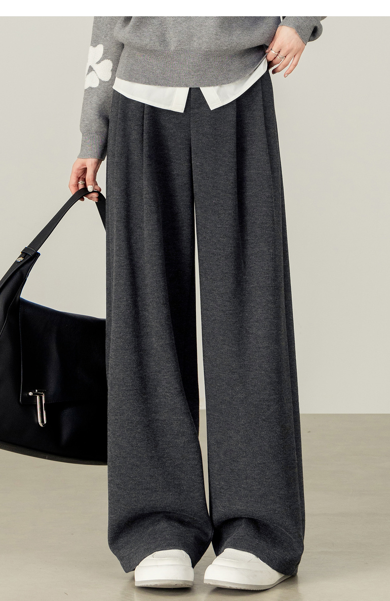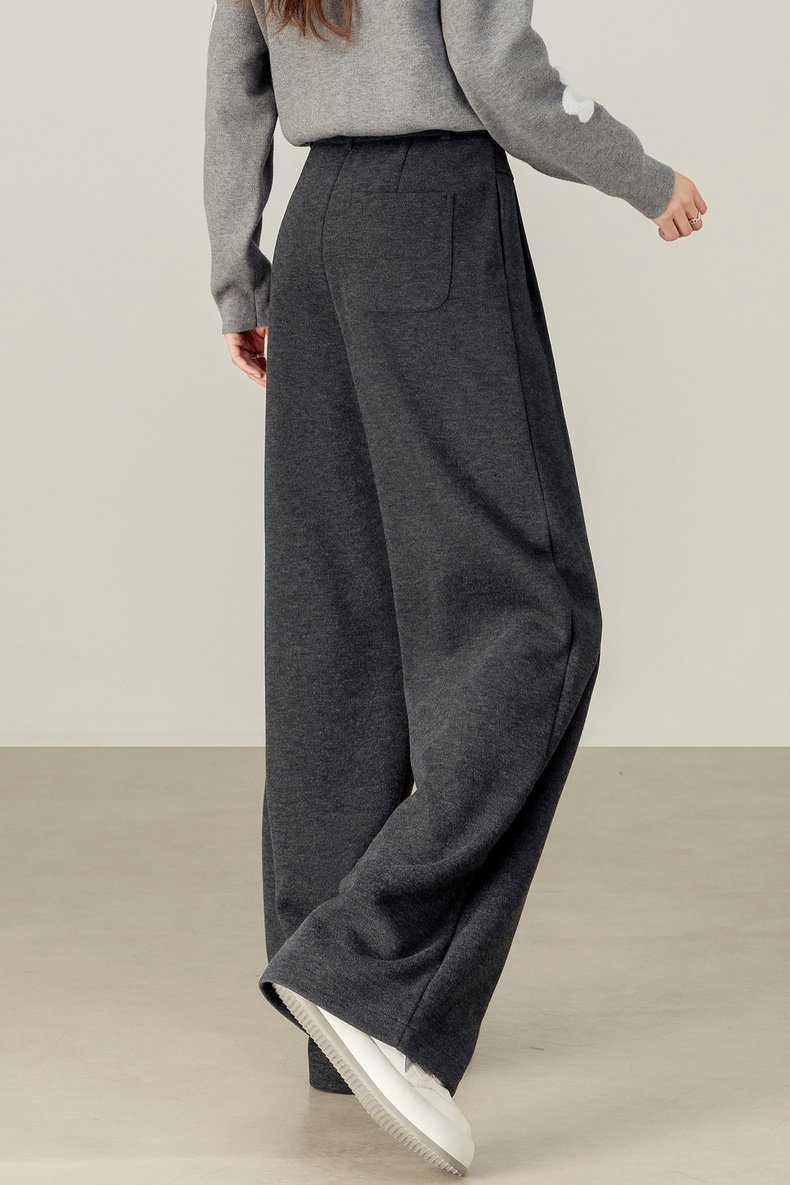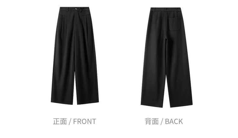 【内购】【显瘦易搭】简约通勤梨型身材松紧腰立体单褶遮肉呢子直筒长裤-153KA2457