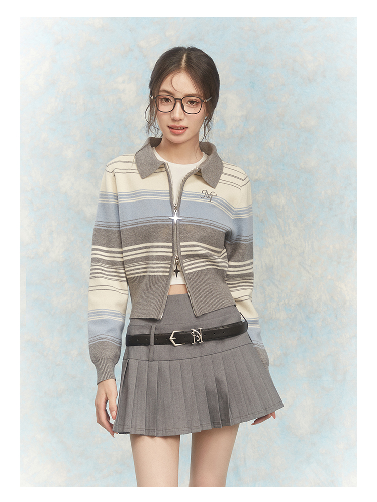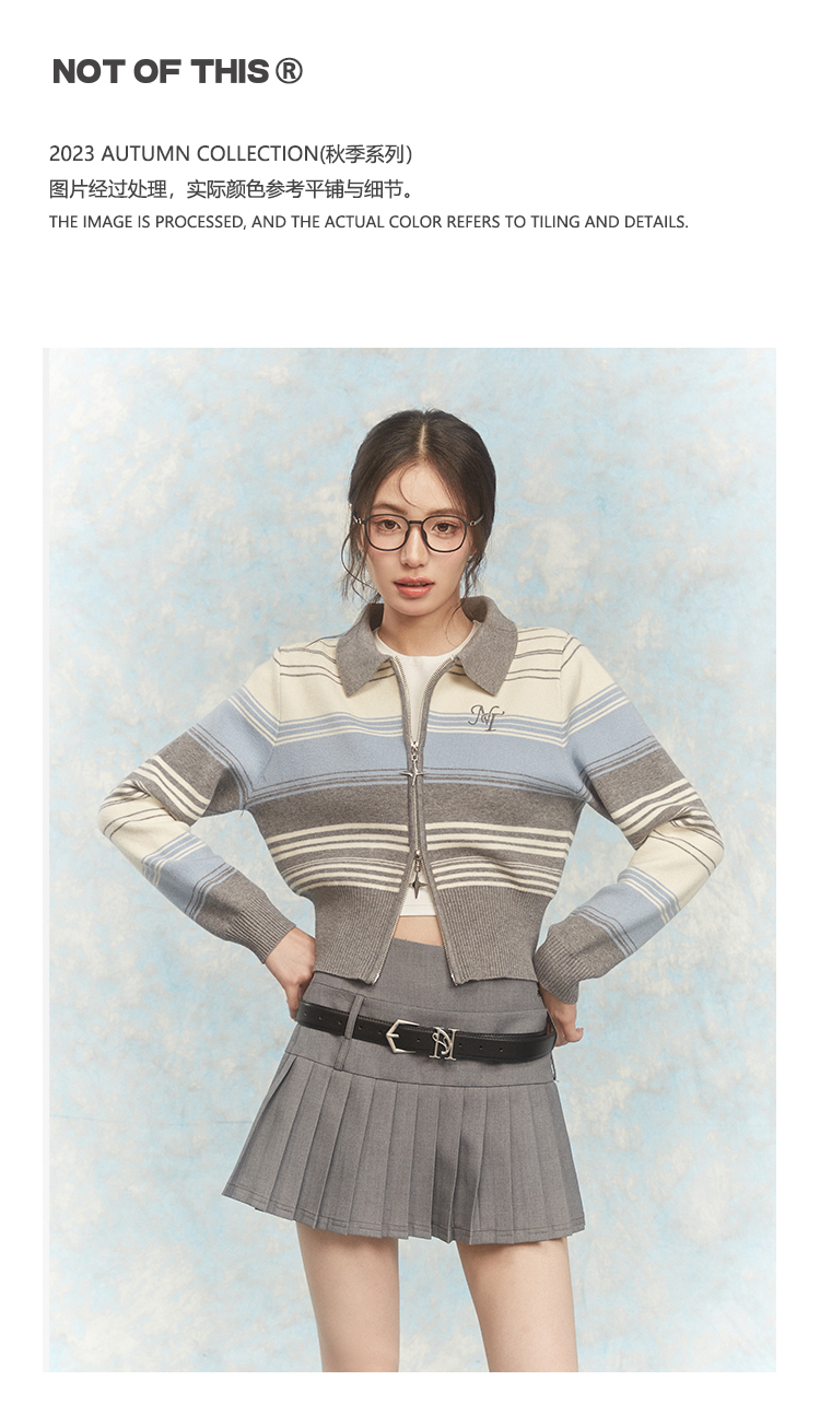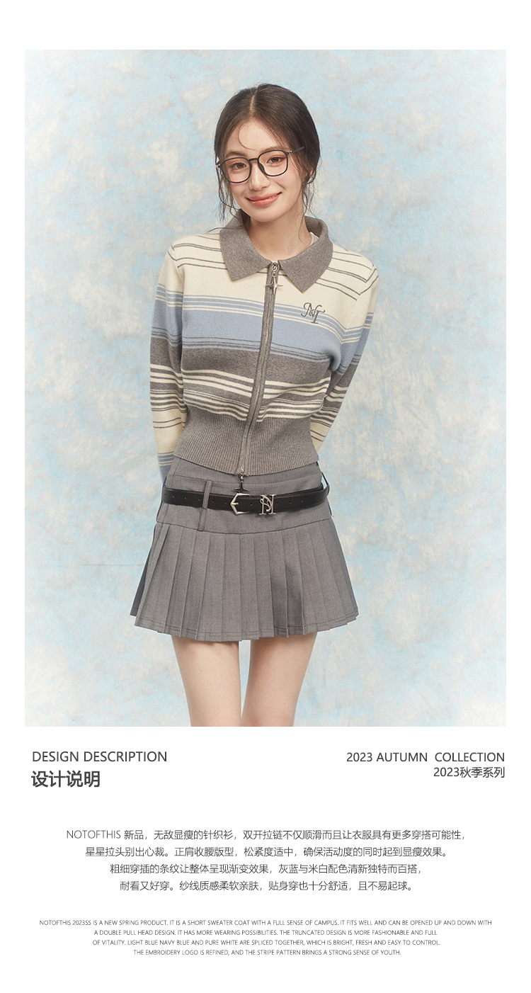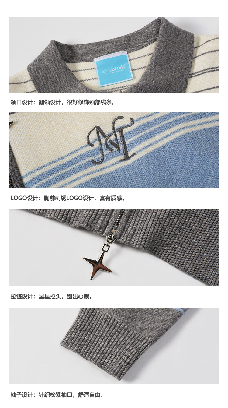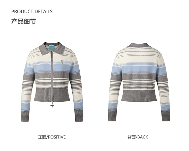 NTOT/NOTWT23237/双开拉链灰蓝针织开衫