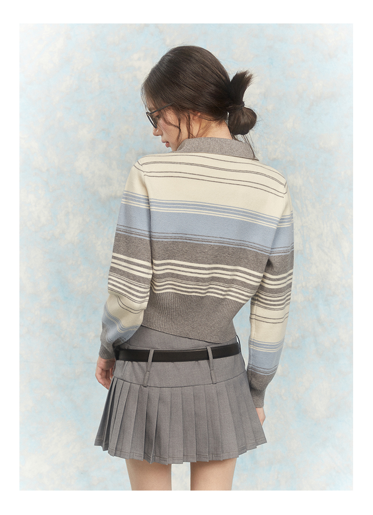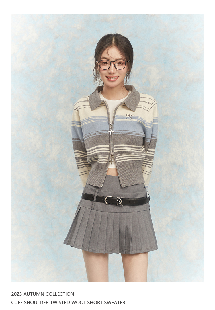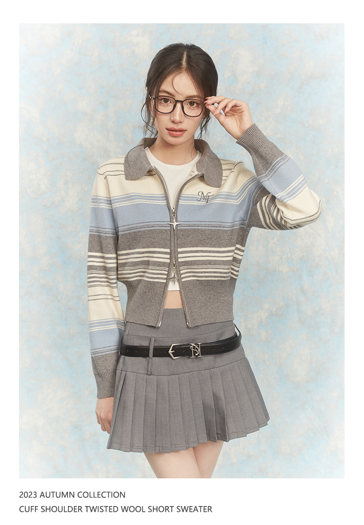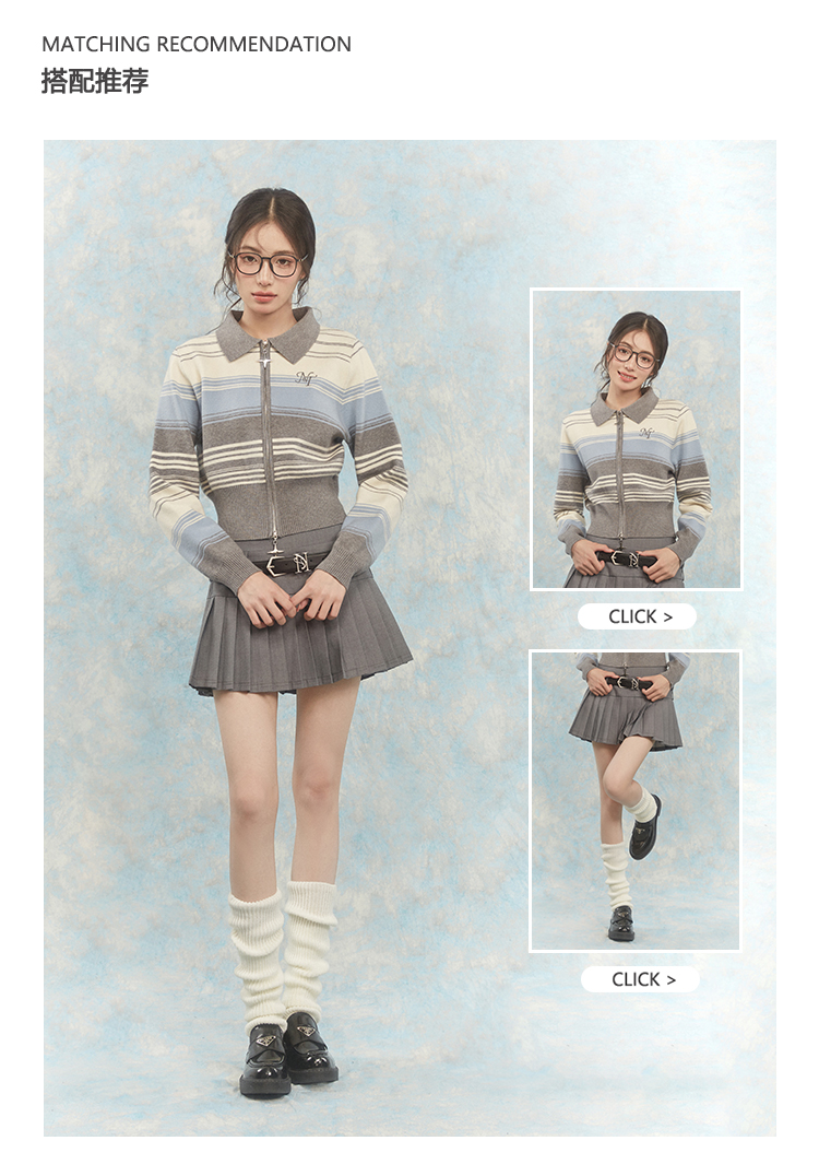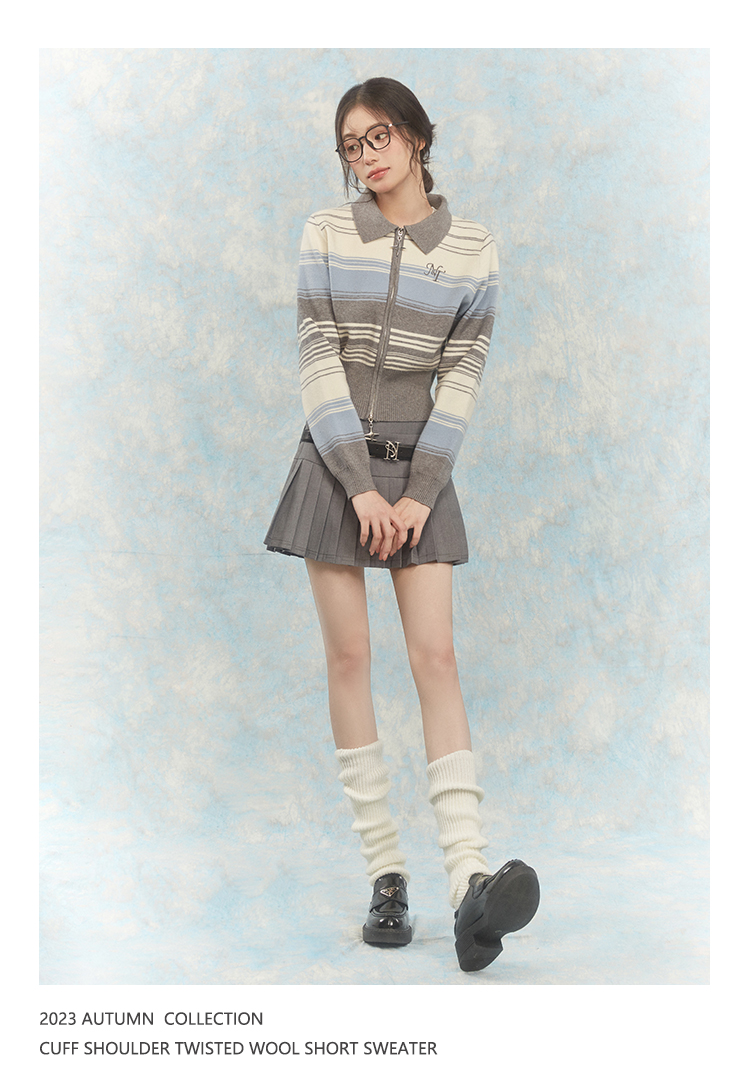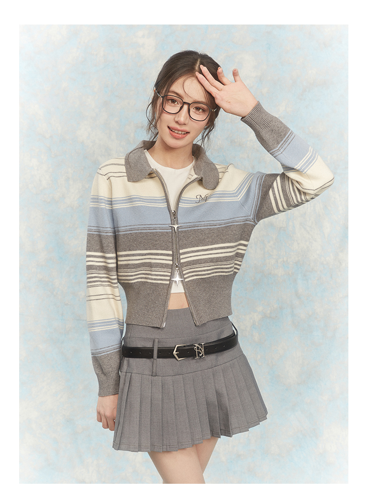 NTOT/NOTWT23237/双开拉链灰蓝针织开衫