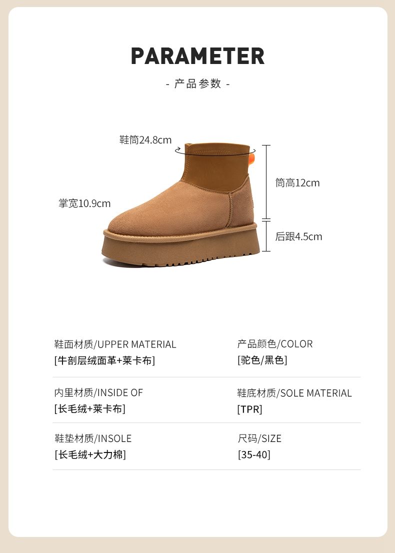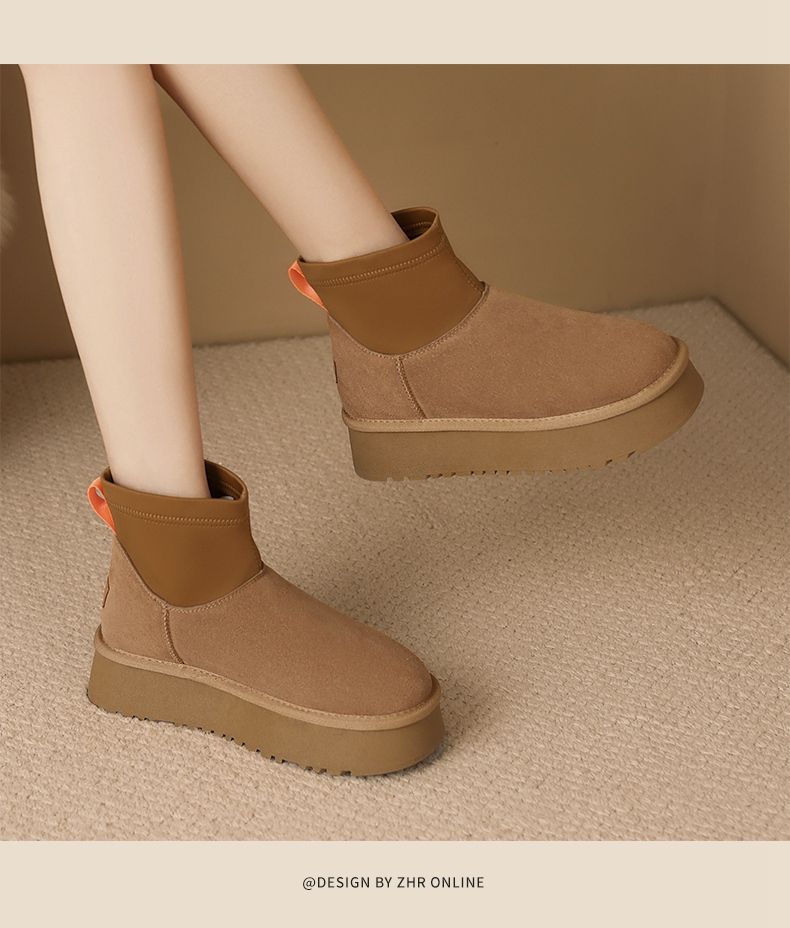ZHR则则加绒厚底雪地靴防寒保暖女靴冬季新款百搭棉鞋轻便短靴女