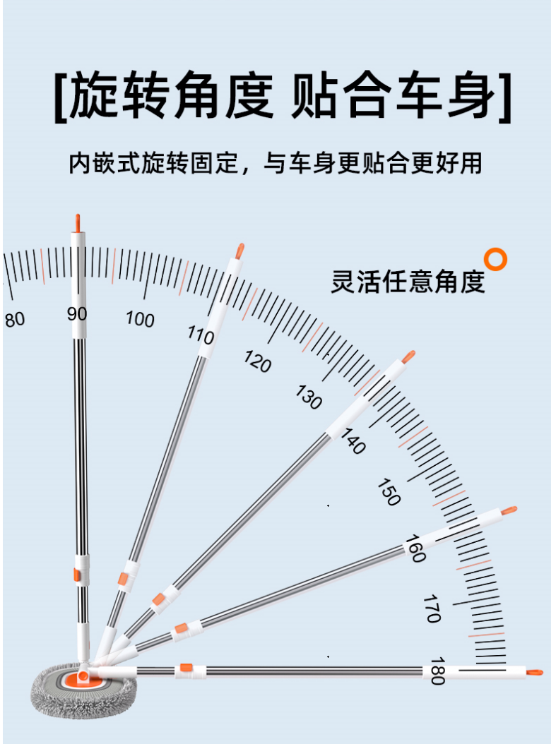 内嵌式旋转固定,与车身更贴合更好用,可伸缩加长拖杆,方便收纳,节省空间;