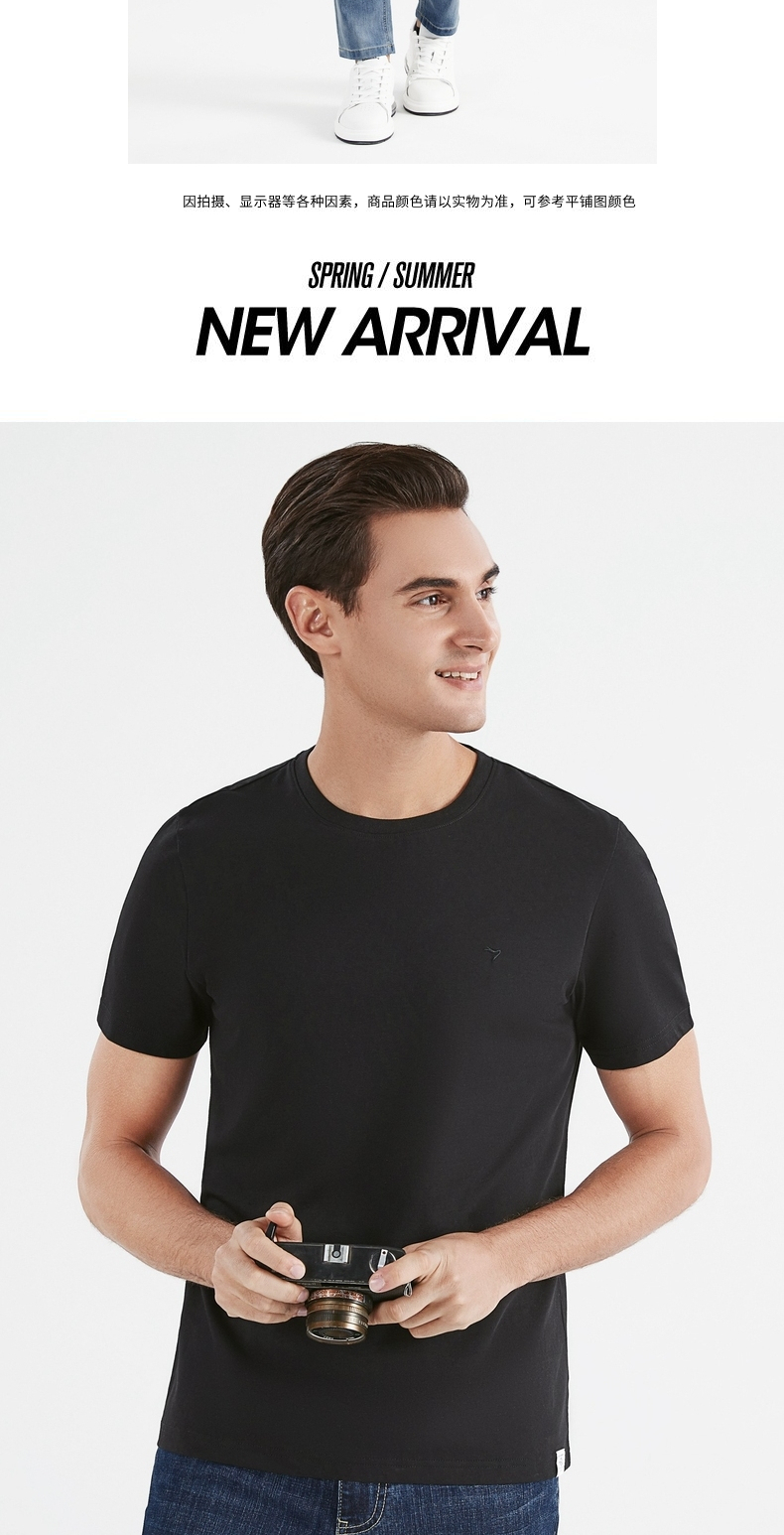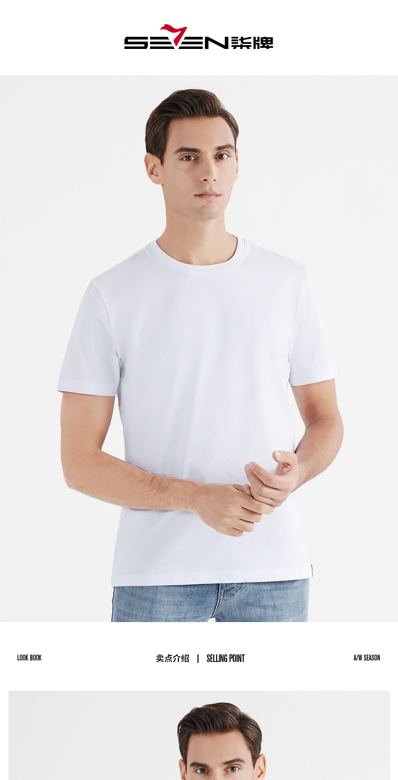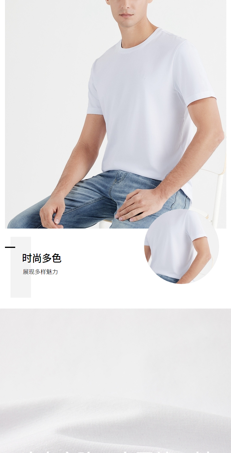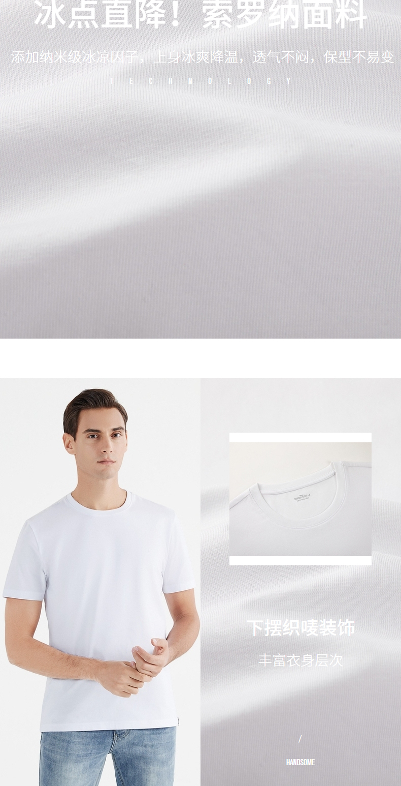 【凉感索罗纳】柒牌短袖t恤男时尚青年休闲百搭弹力圆领薄款体恤 122T71441