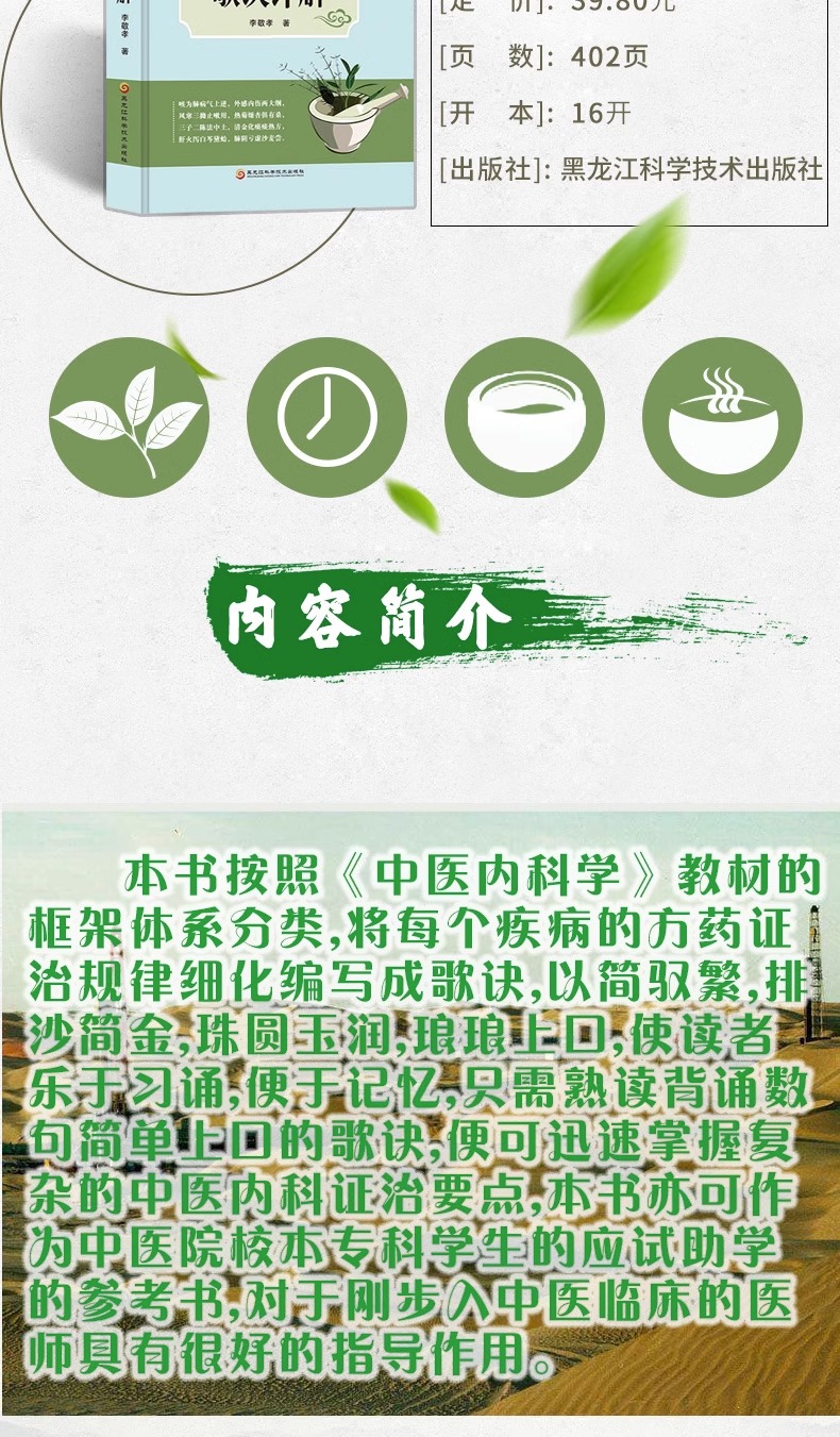 本书按照《中医内科学》教材的框架体系分类,将每个疾病的方药证治规律细化编写成歌诀,以简驭繁,排沙简金珠圆玉润,琅琅上口,使读者乐于习诵便于记忆,只需熟读背诵数句简单上口的歌诀,便可迅速掌握复杂的中医内科证治要点,本书亦可作为中医院核本专科学生的应试助学的参考书,对于刚步入中医临床的医师具有很好的指导作用。