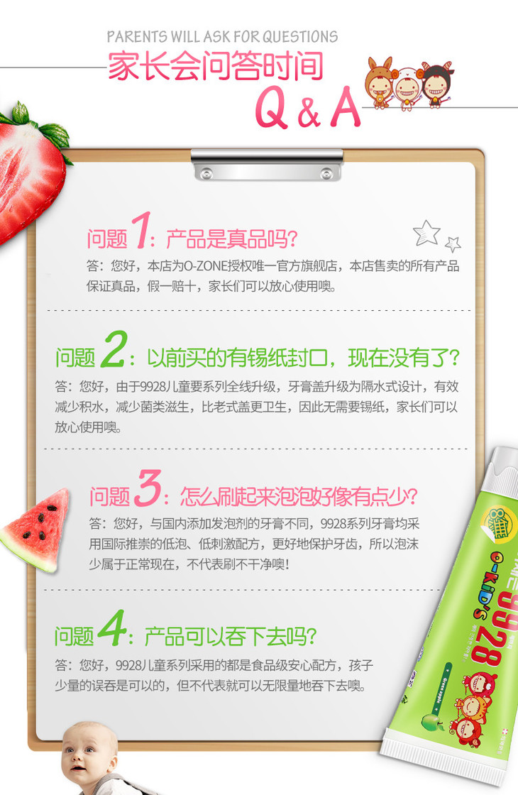 【一般贸易】韩国O-ZONE欧志姆 9928儿童牙膏(草莓味)60g/支