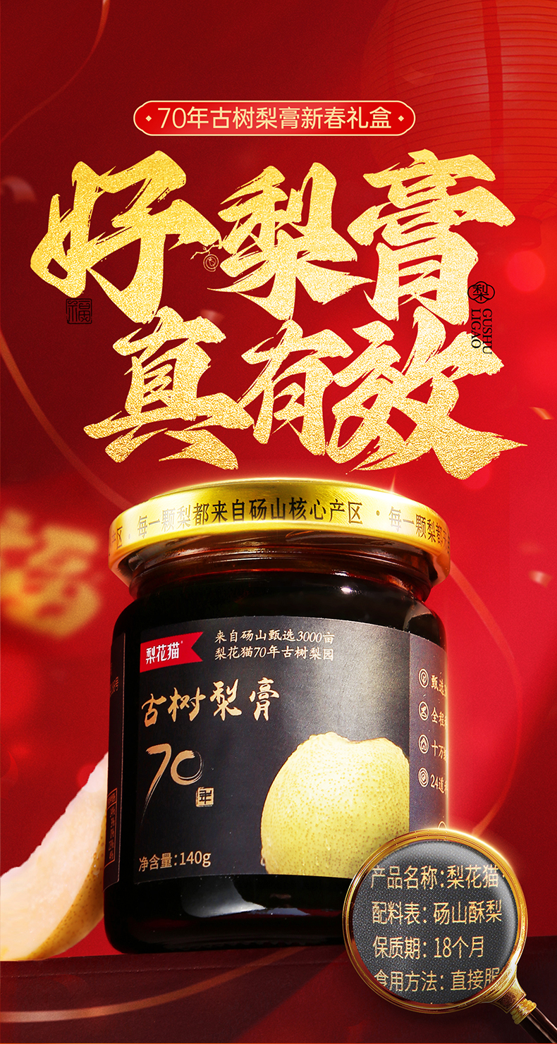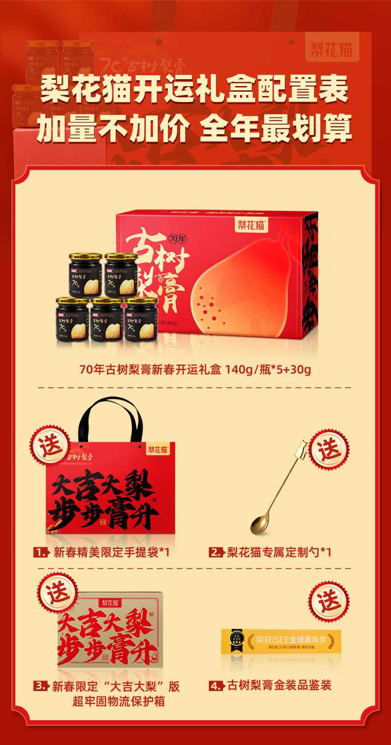 礼盒 梨花猫古树梨膏 (5瓶装)140g/瓶*5 A-3089