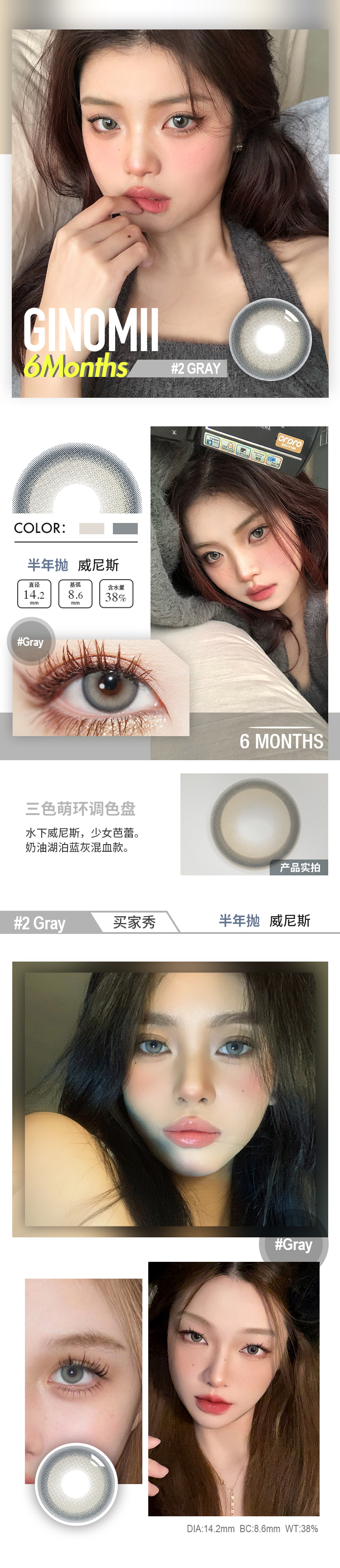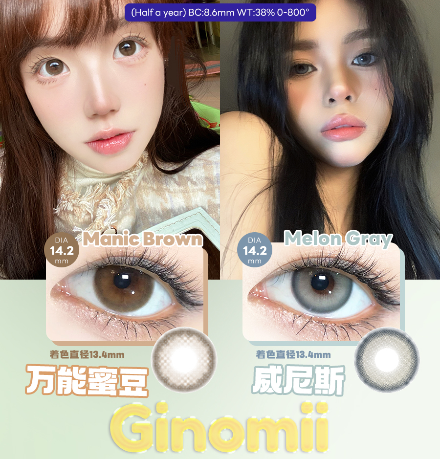 GINOMII半年抛 威尼斯/万能蜜豆(巧咖棕灰,14.2最高800度)