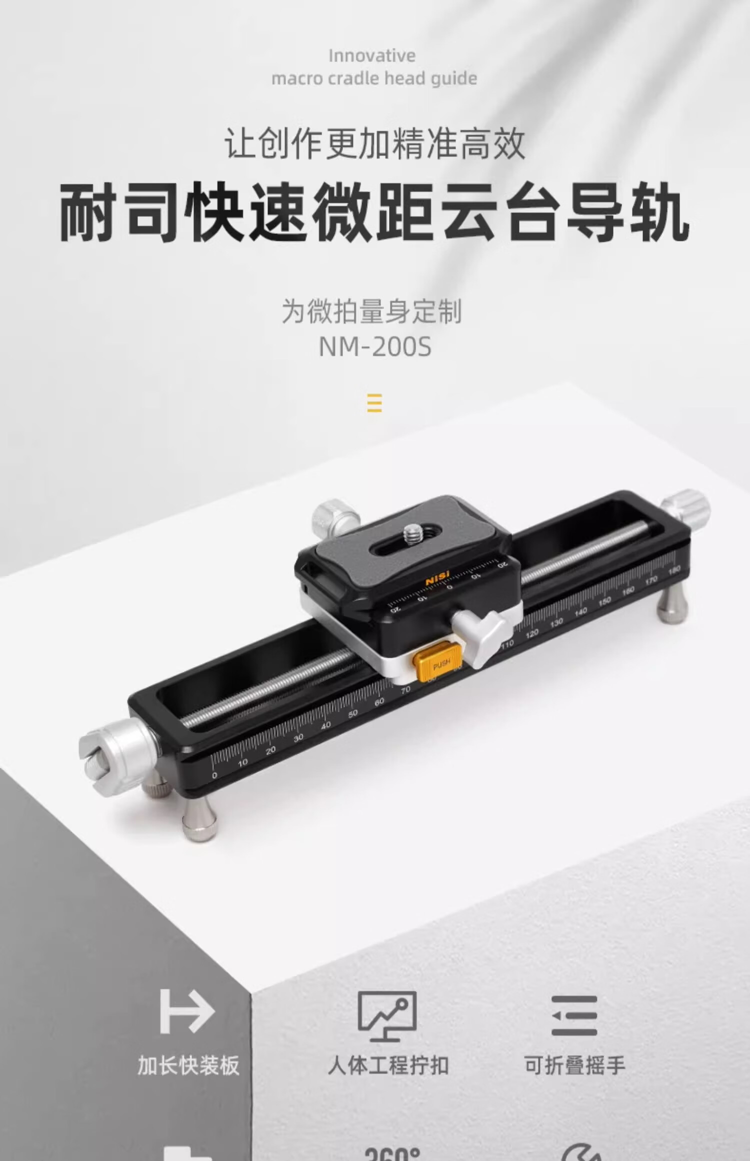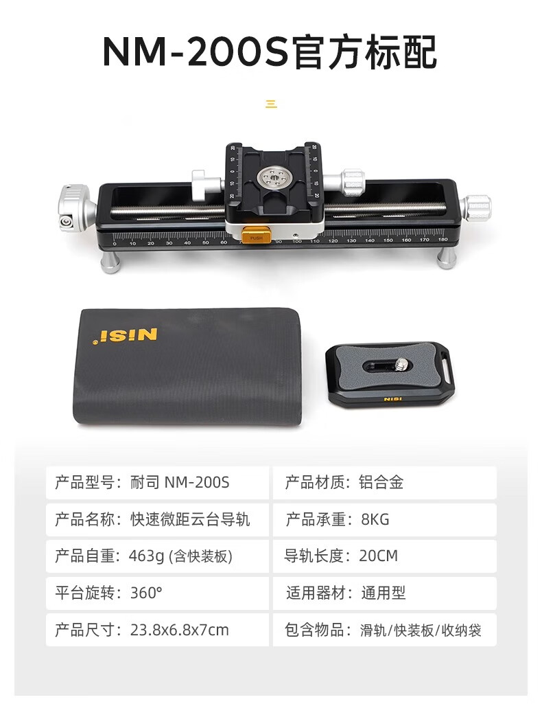 狼族优选丨升级款耐司NM-200s 微距云台导轨 单反相机 滑轨 摄影摄像 轨道便携桌面拍摄滑轨