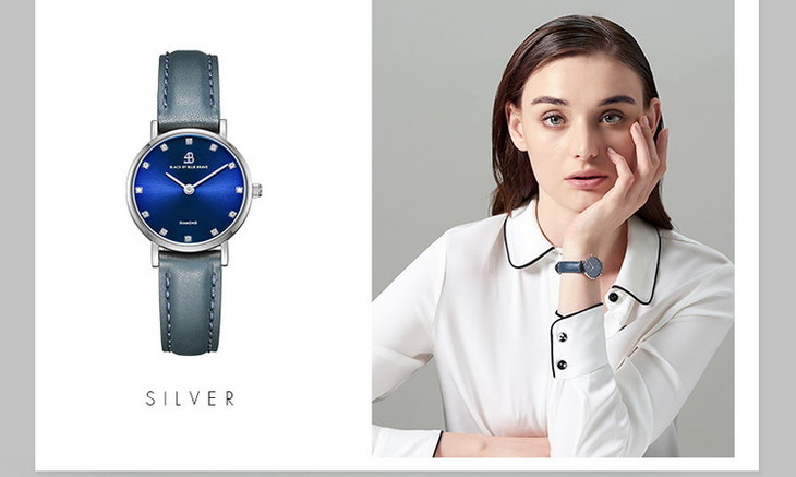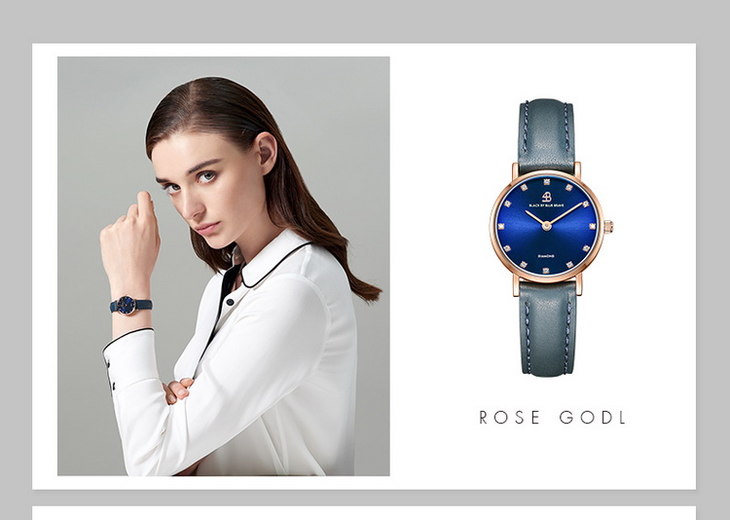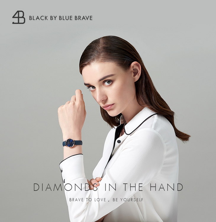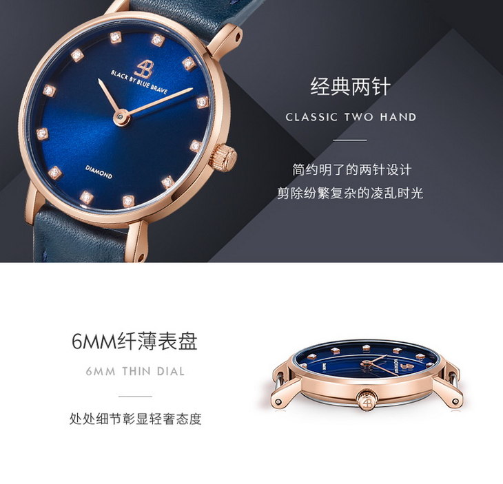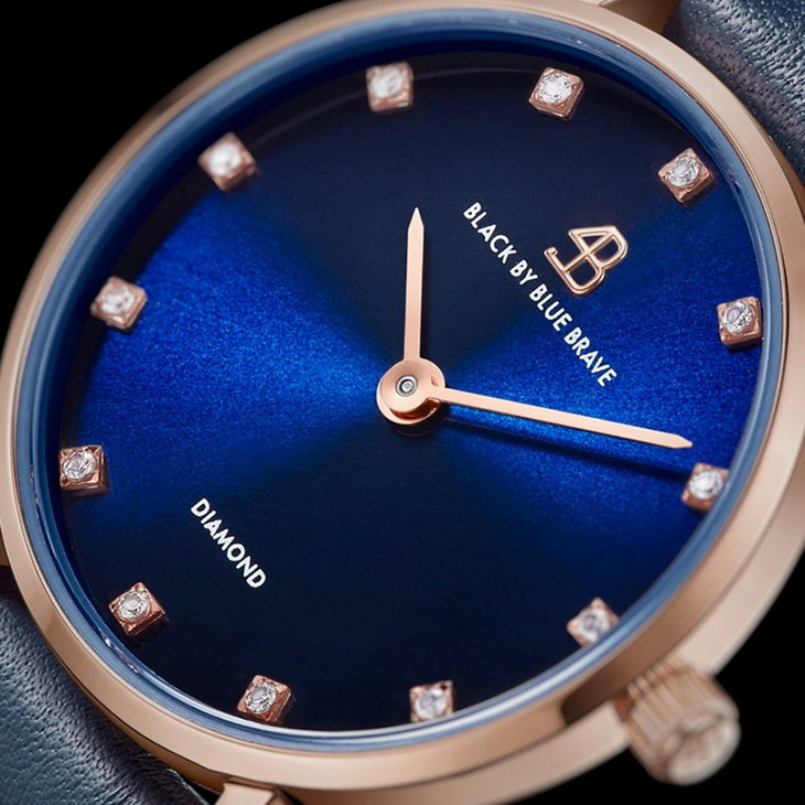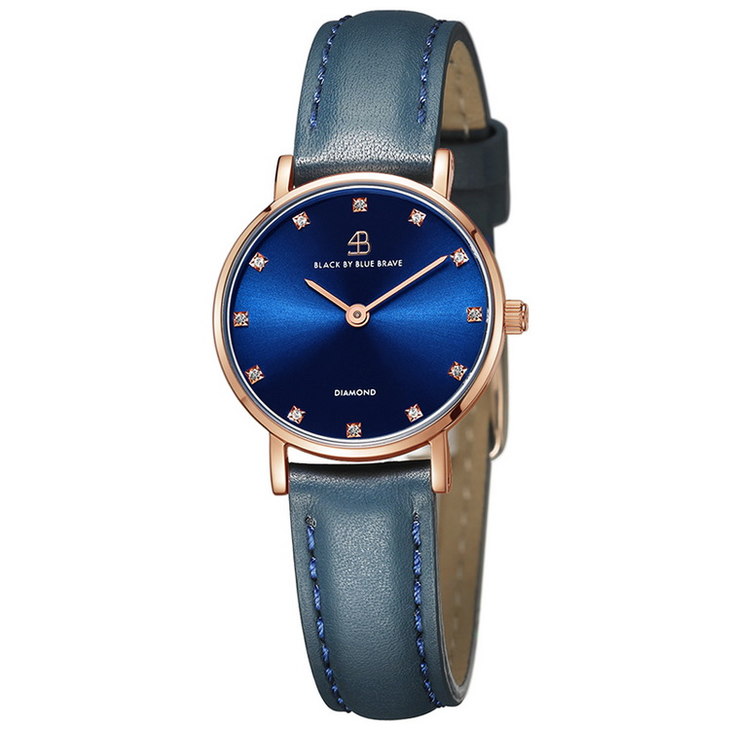 【一般贸易】4B(BLACK BY BLUE BRAVE)手表 女石英表镶钻蓝盘简约防水商务女士腕表-4B0908-玫瑰金色