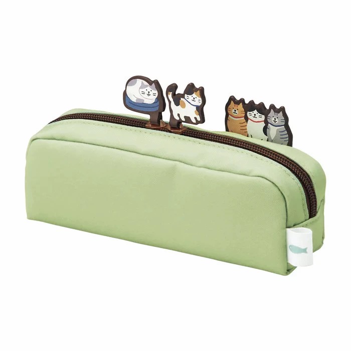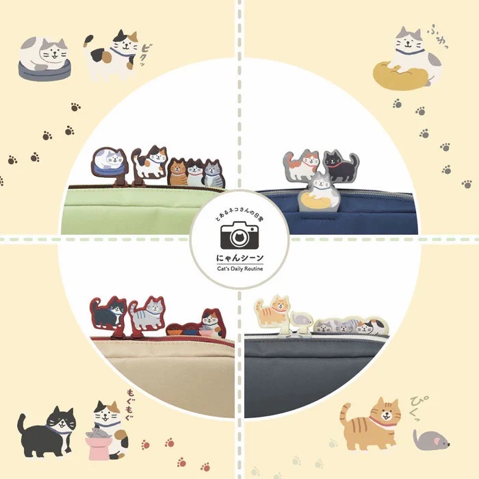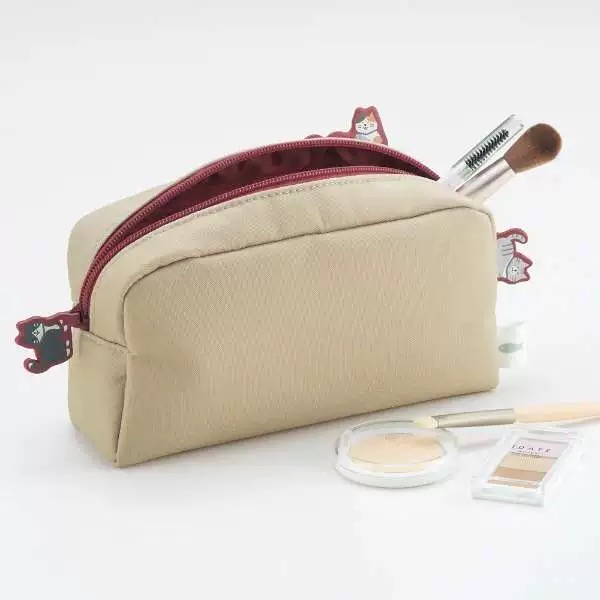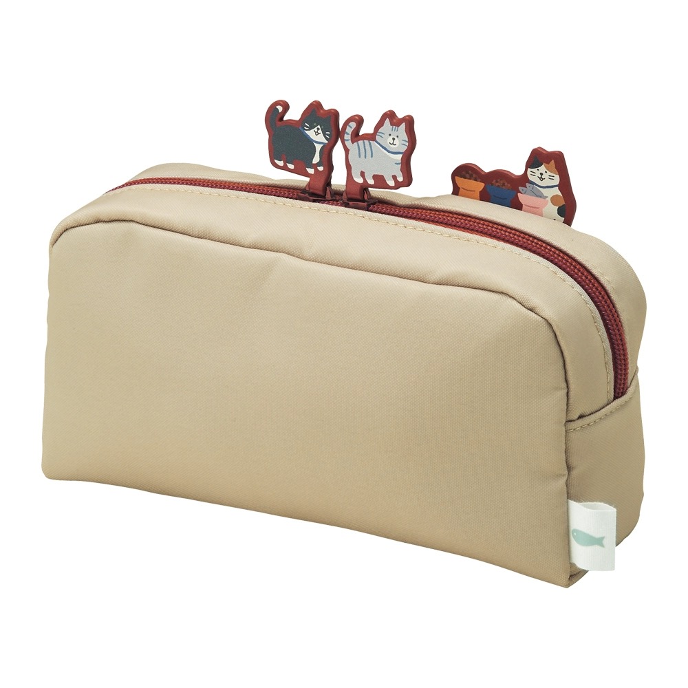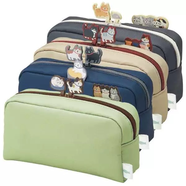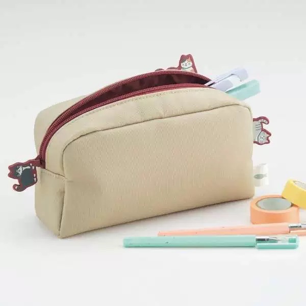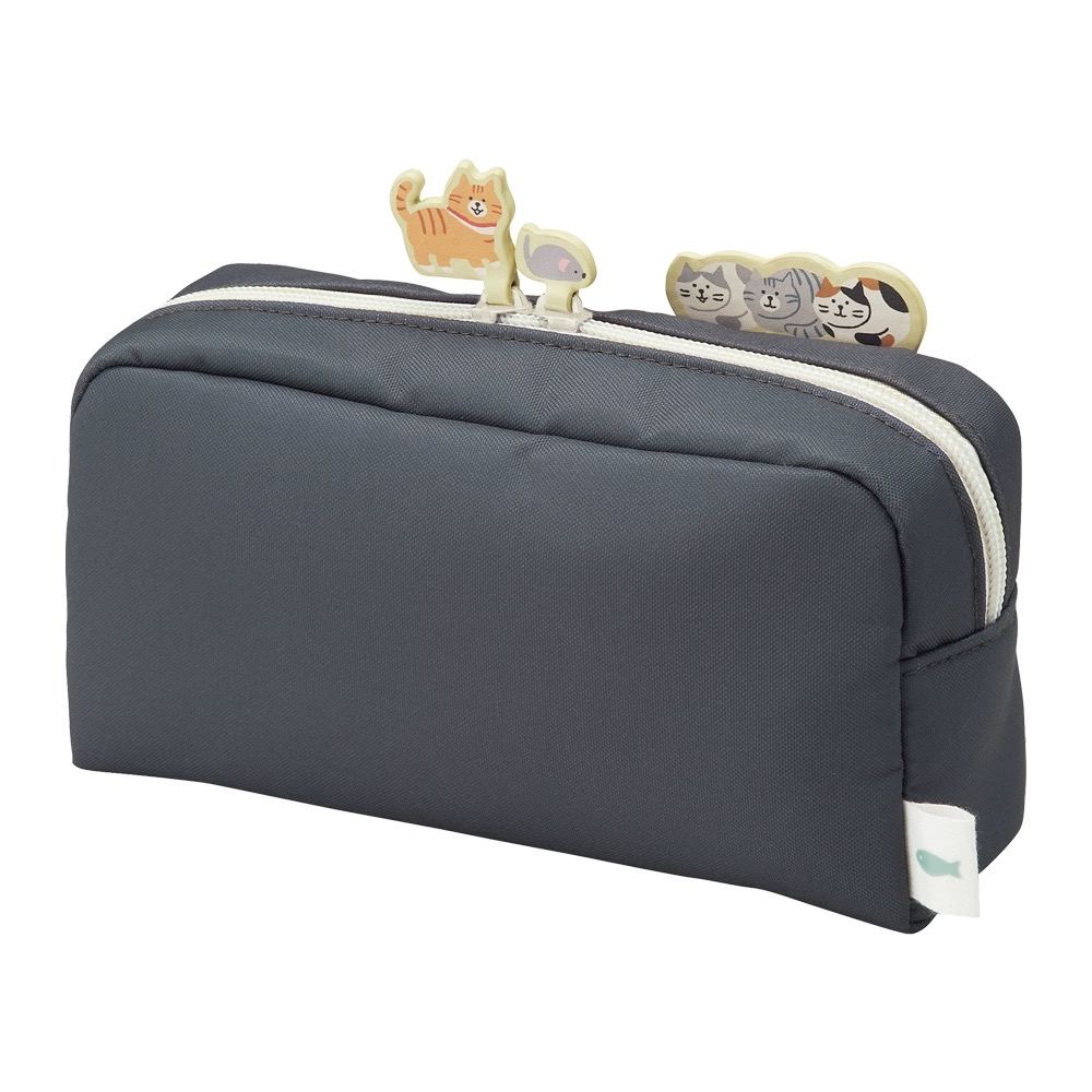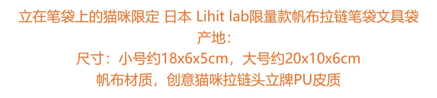 日本LIHIT LAB喜利限量款帆布拉链笔袋立在笔袋上的猫咪限定