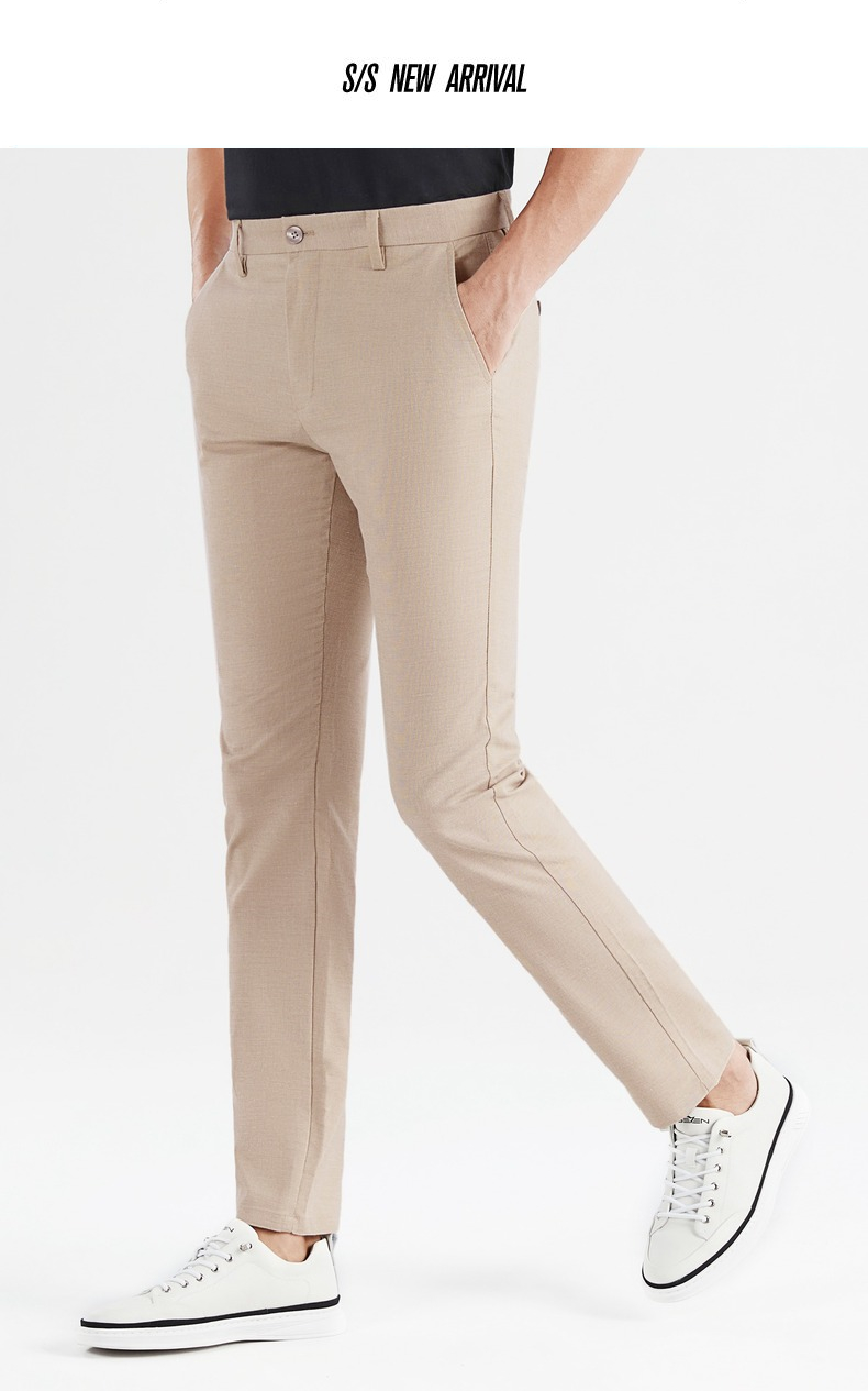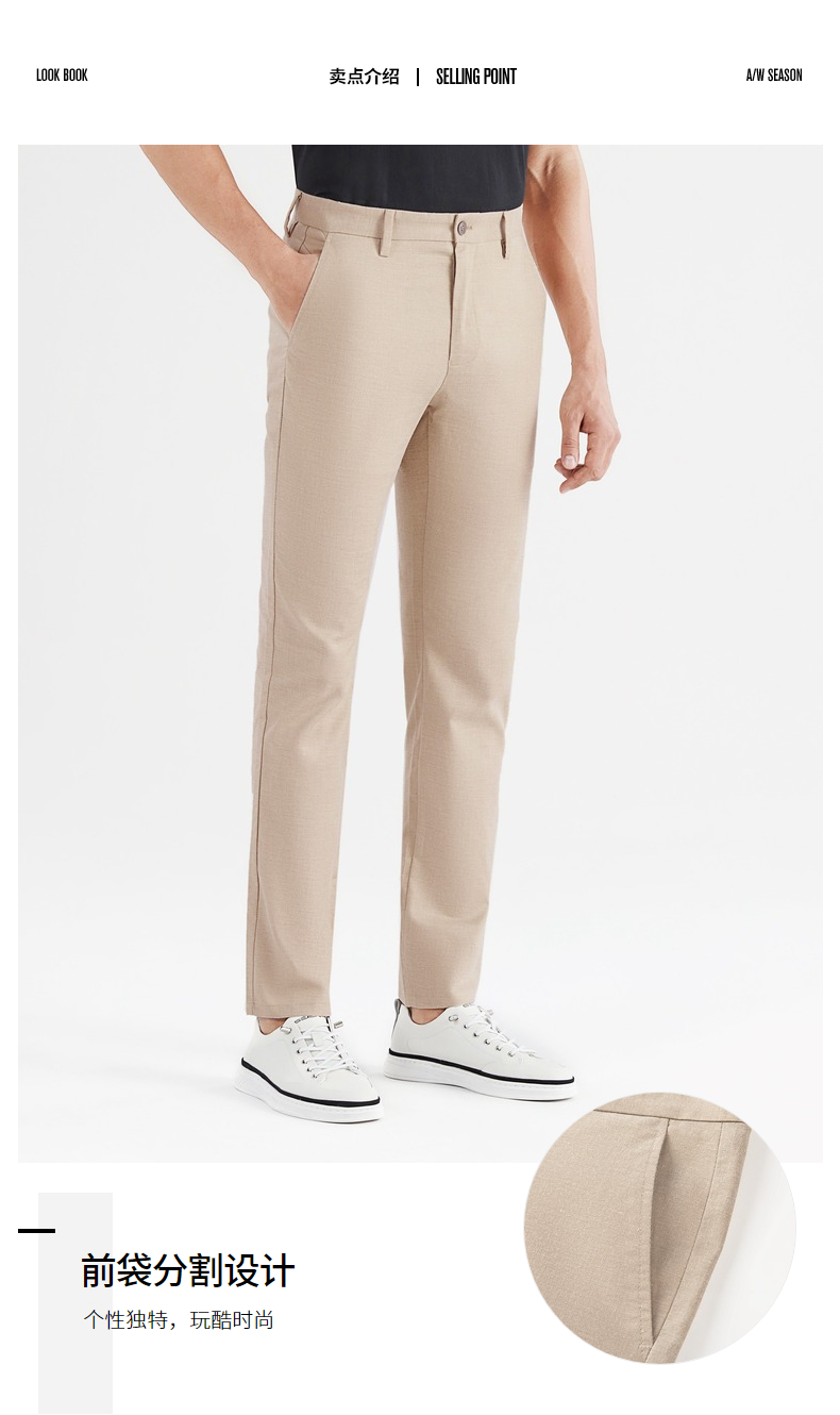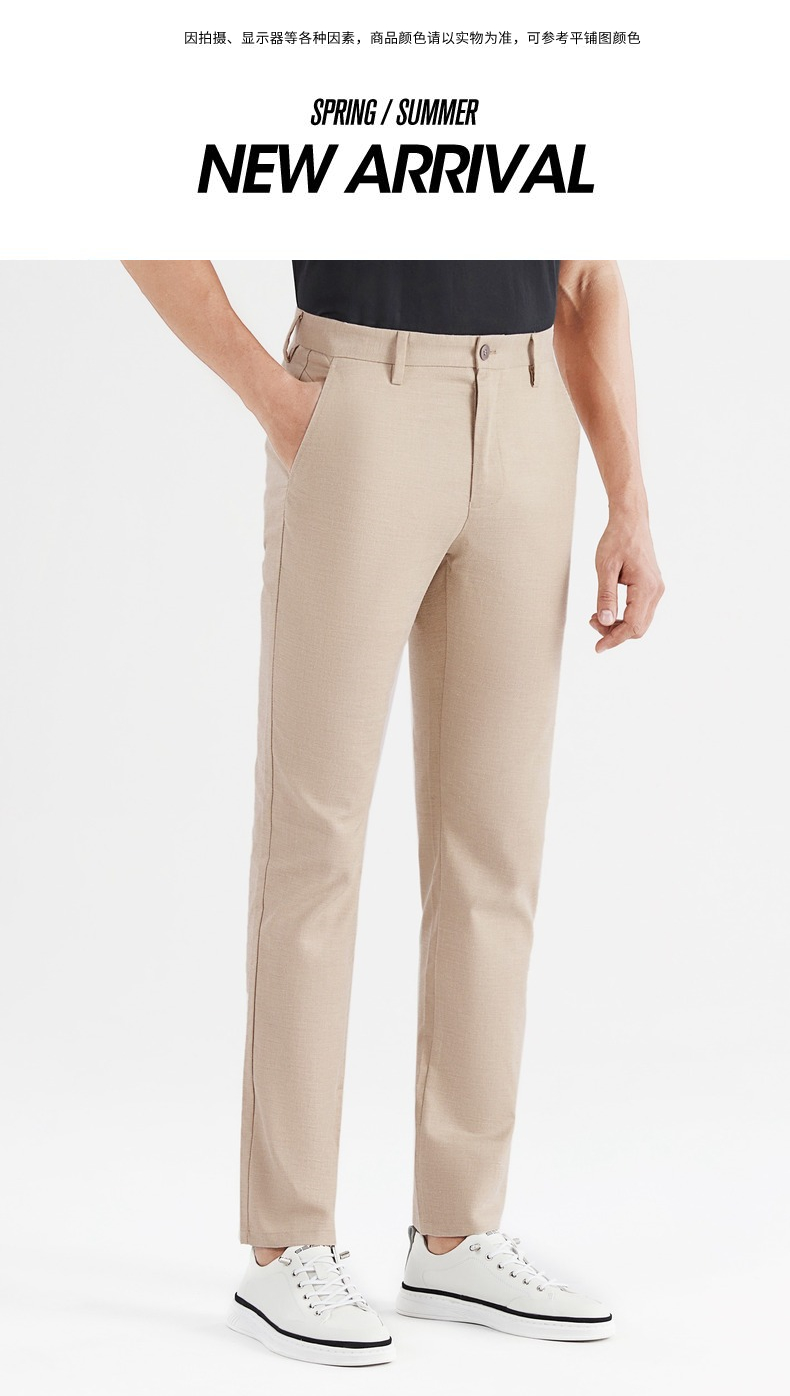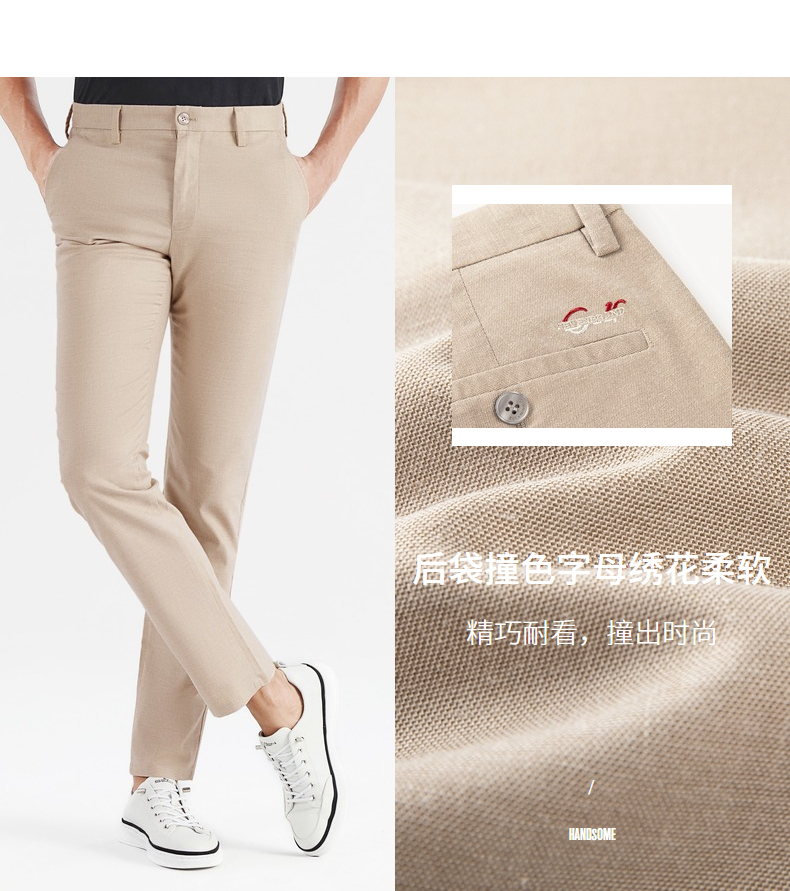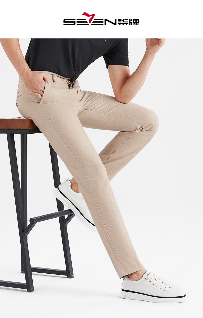 【特价】【含亚麻】柒牌裤子男商务休闲梭织长裤字母绣花修身直筒男裤 122H70530