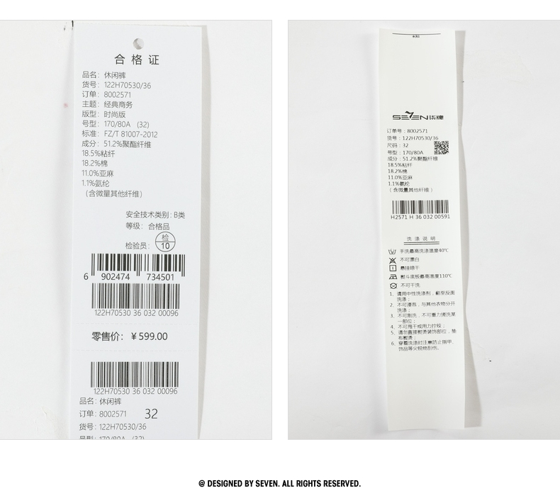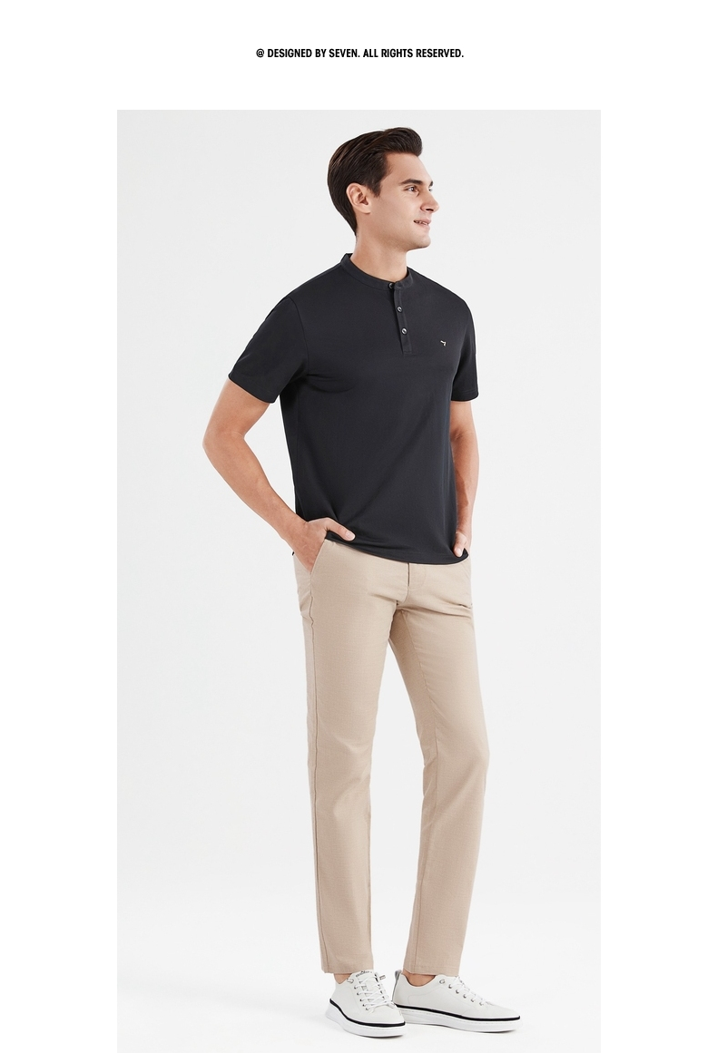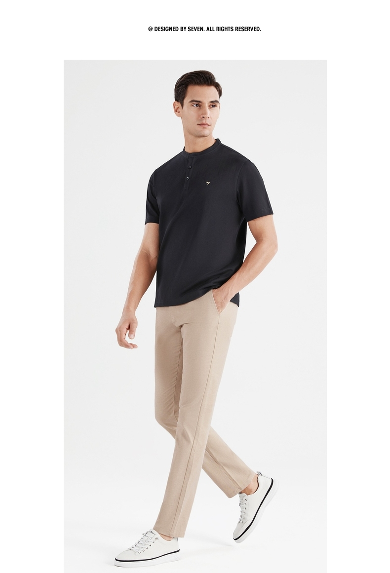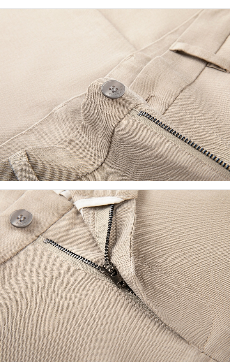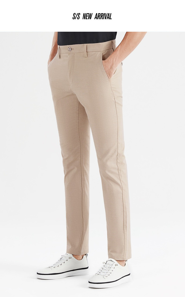 【特价】【含亚麻】柒牌裤子男商务休闲梭织长裤字母绣花修身直筒男裤 122H70530