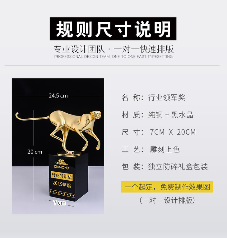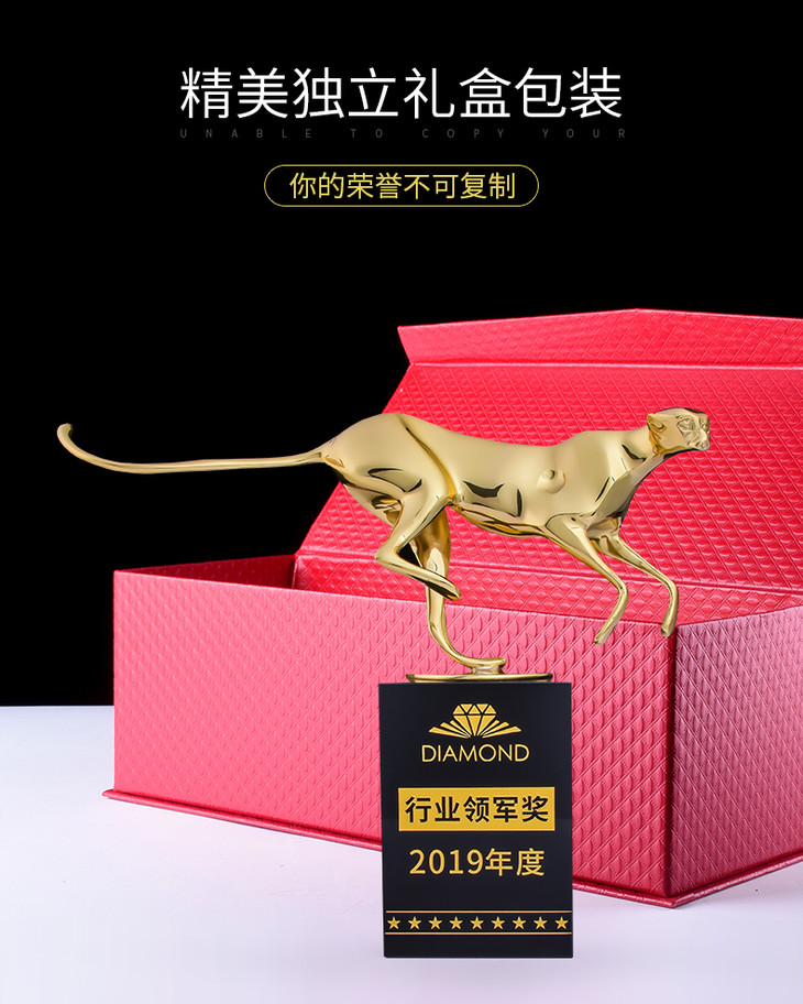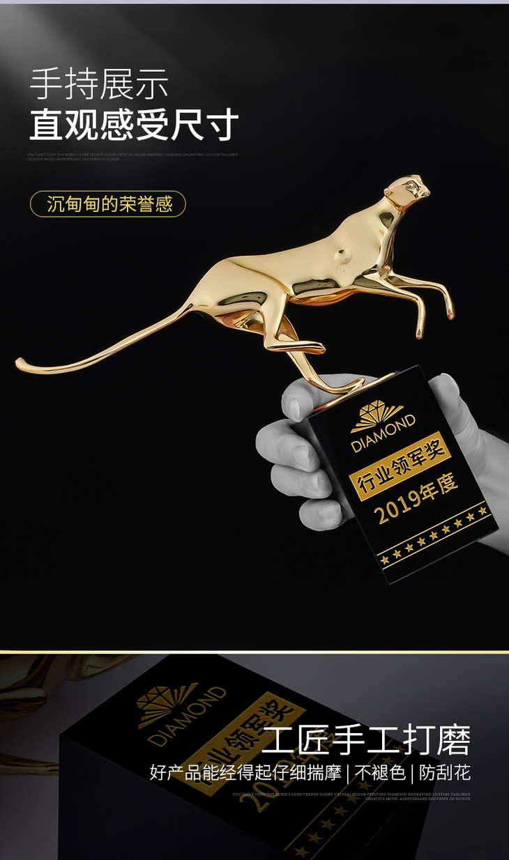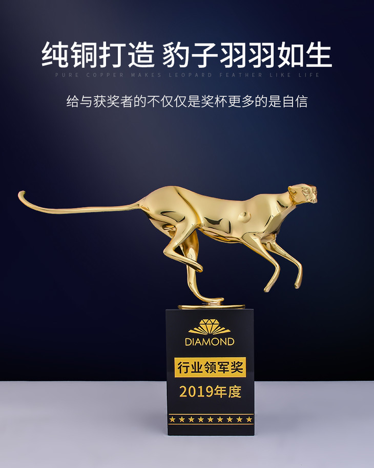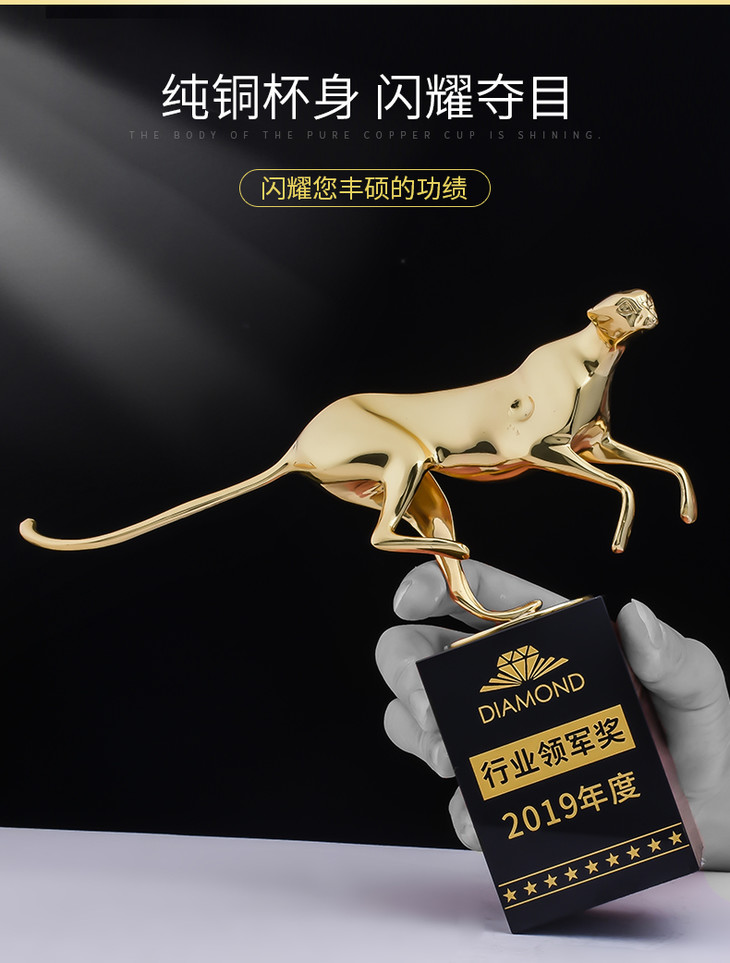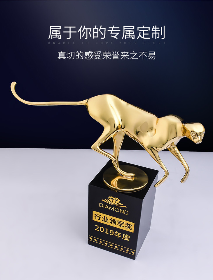 纯铜豹子奖杯定制定做创意刻字高档优秀员工颁奖金属水晶奖牌制作