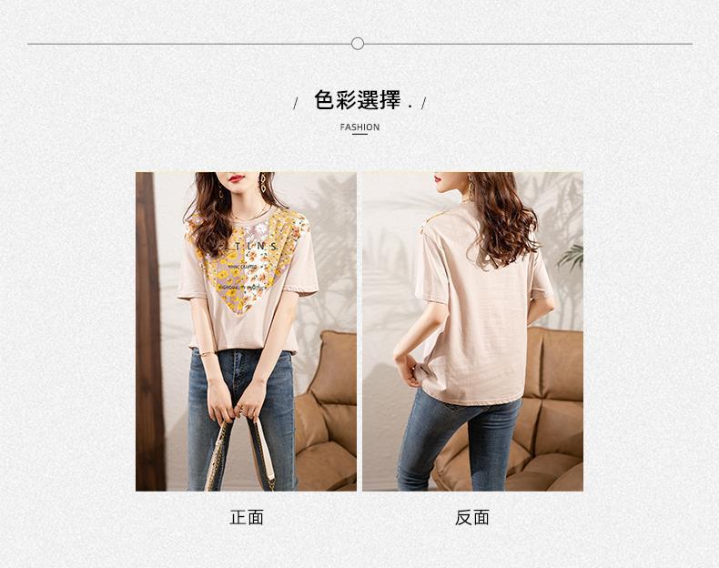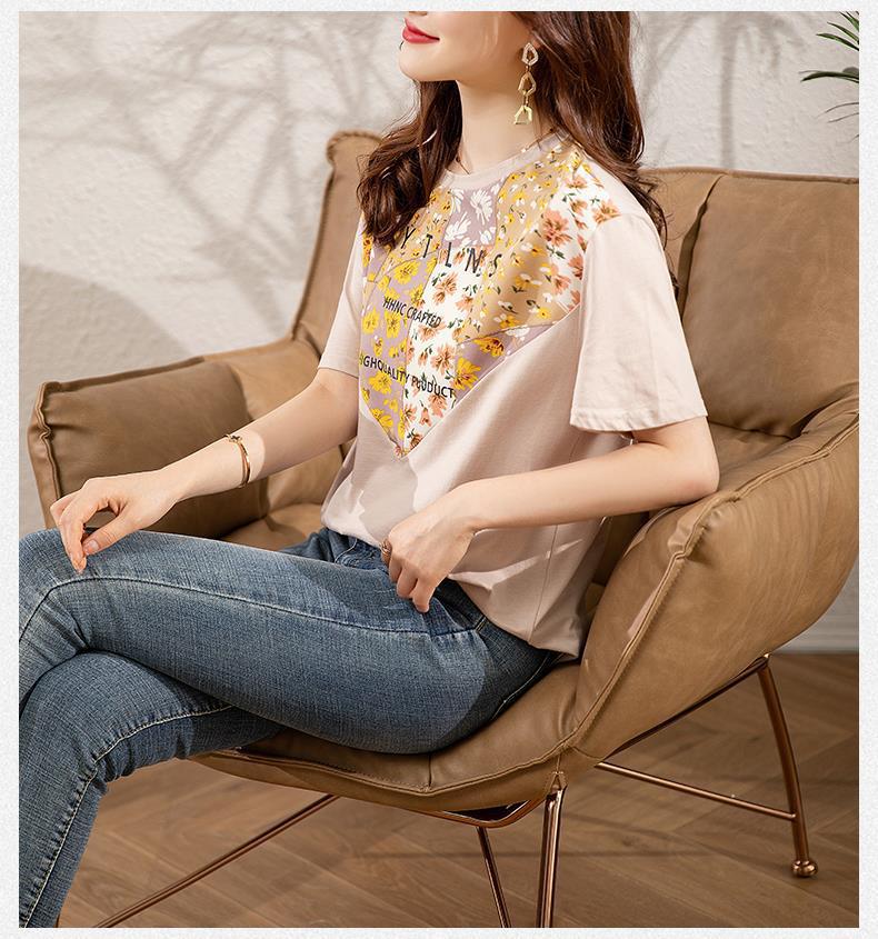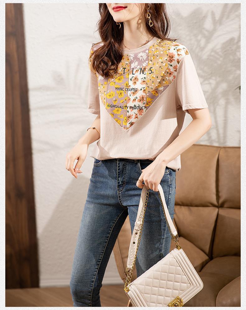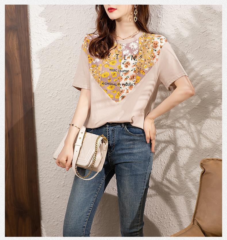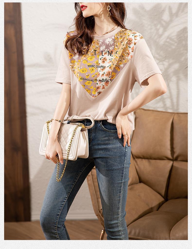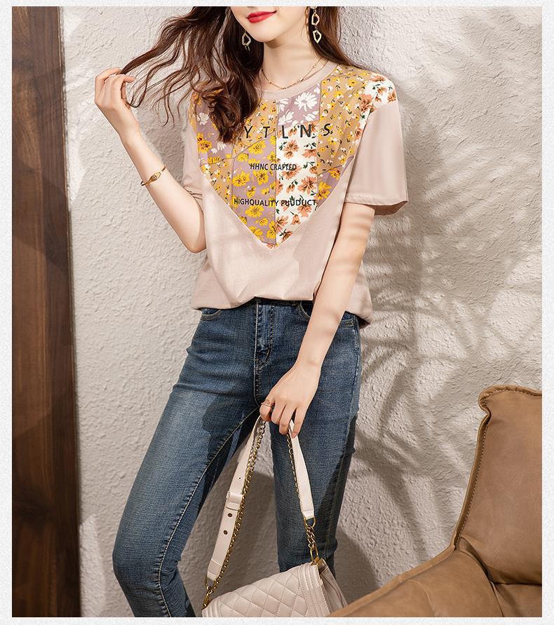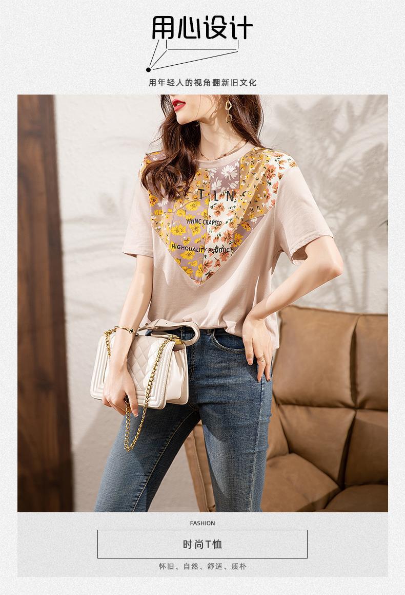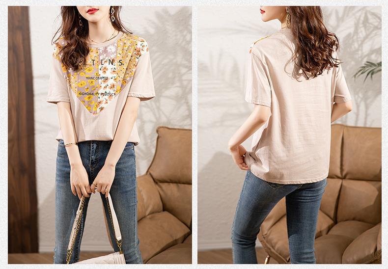 夏季新款,短袖T恤女宽松心形印花拼接显瘦洋气上衣KQL-B11N1657