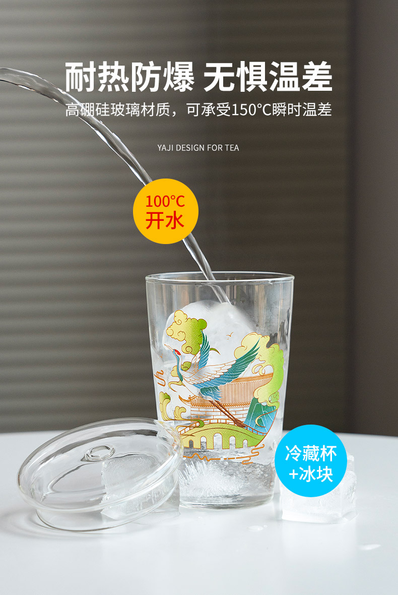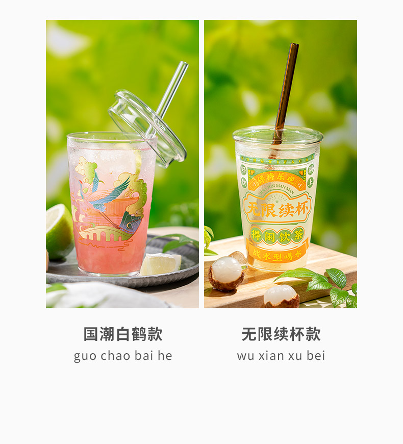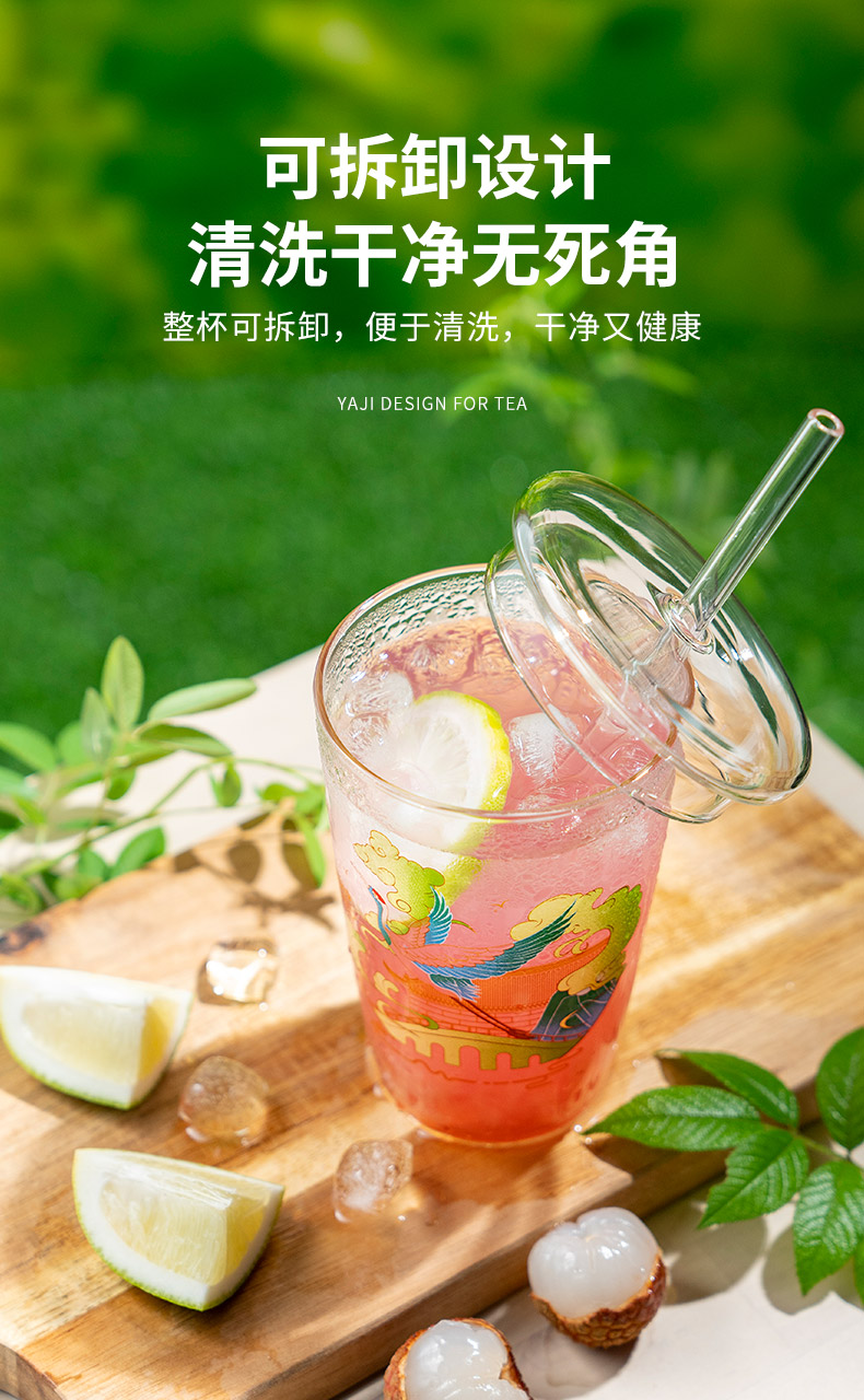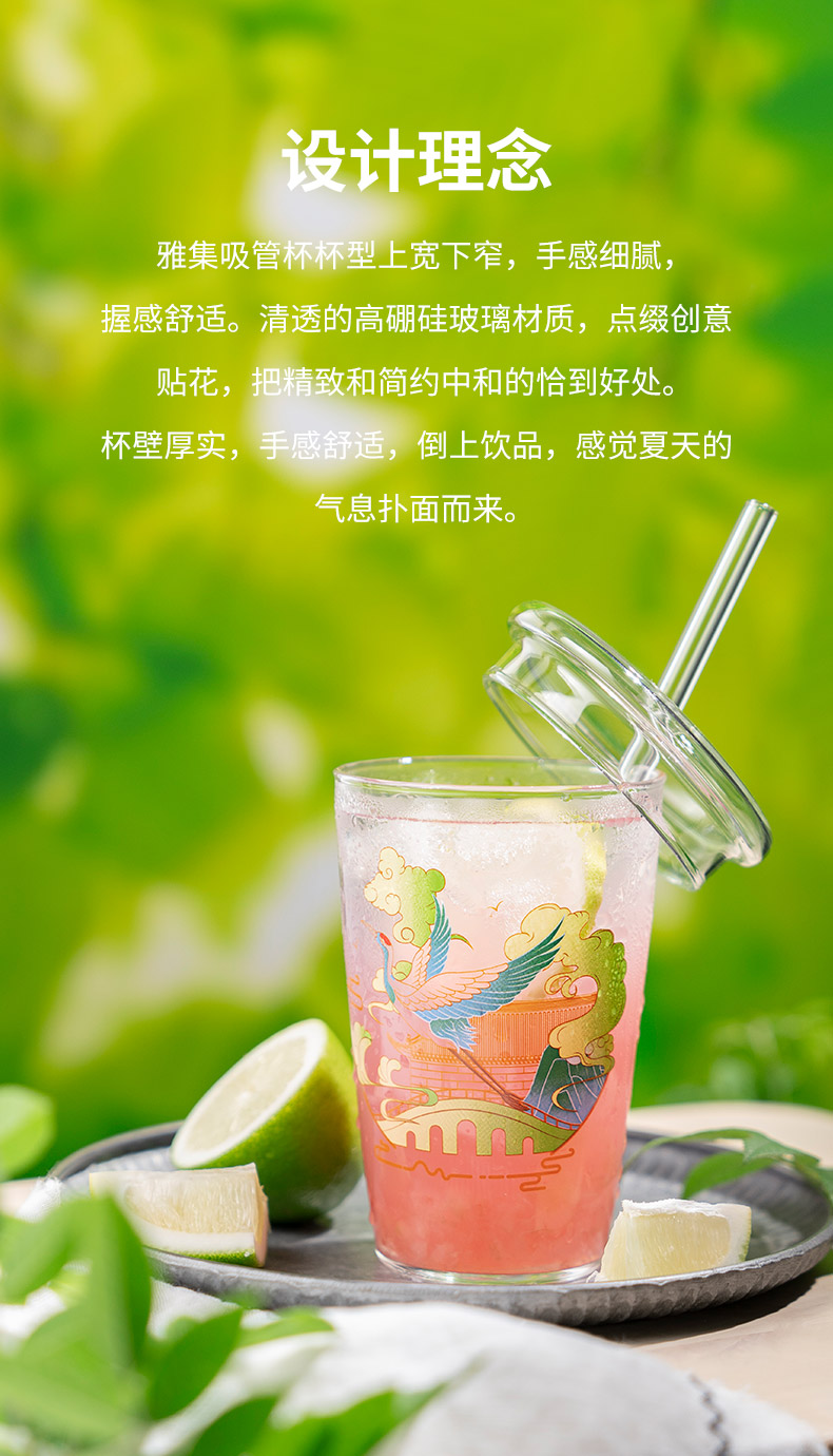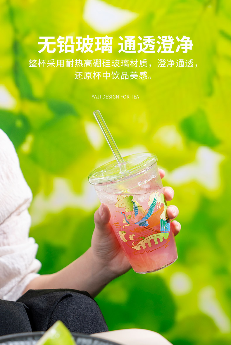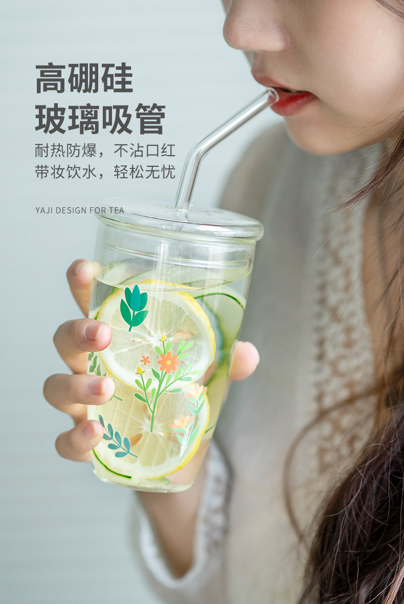 雅集玻璃杯吸管杯380ml贴花(元气满满)