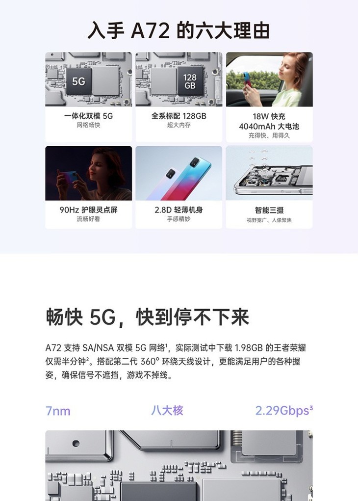 OPPO A72 5G 8+128GB 90Hz全面屏 7.9mm超轻薄机身 18W快充 后置三摄AI智慧美颜拍照视频手机
