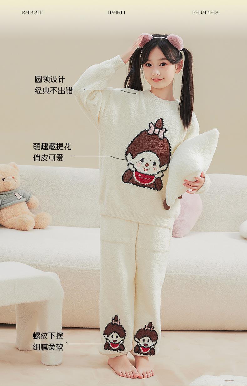 男童法兰绒珊瑚绒软卡通萌甜美家居服可外穿绵绵睡衣趣趣秋冬套装