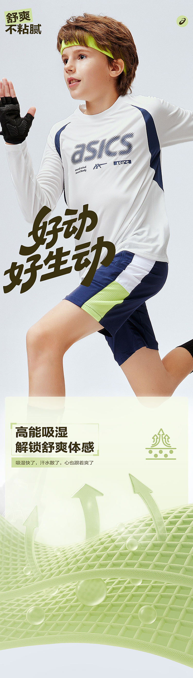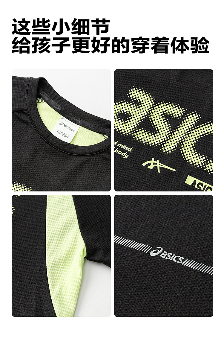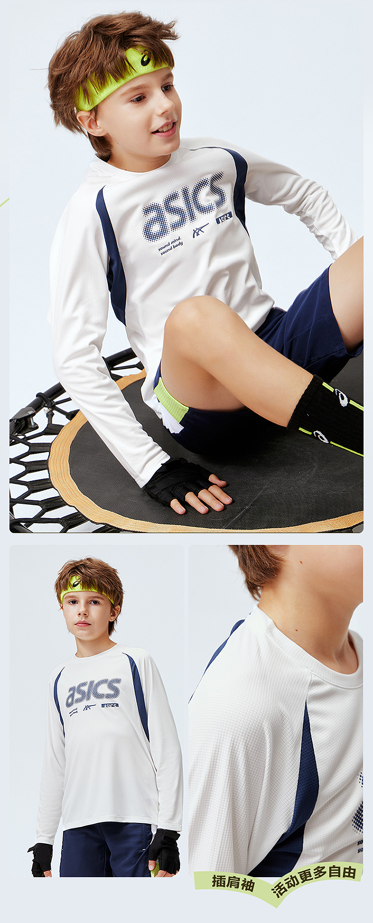 ASICS/亚瑟士儿童26年新款圆领网眼透气球衣风T恤插肩袖吸湿排汗
