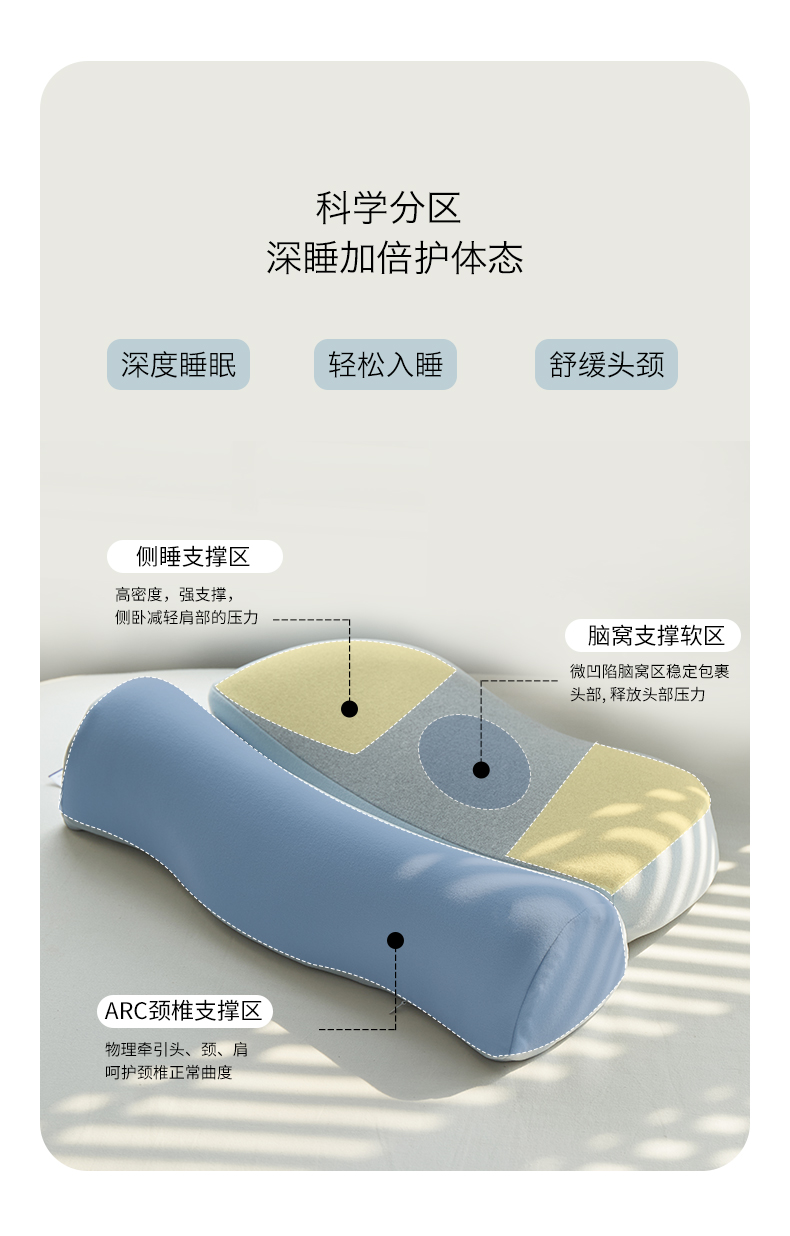 全新升级零压牵引深睡记忆枕芯 零压牵引护颈按摩枕