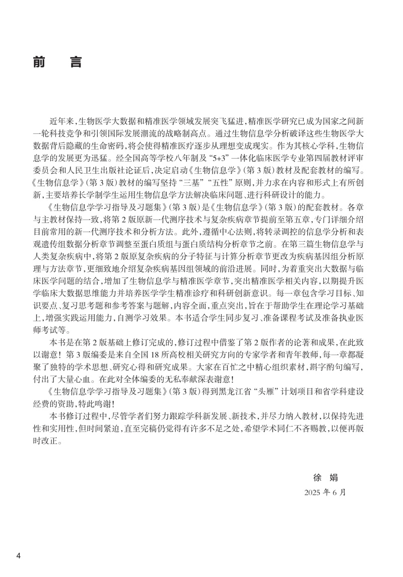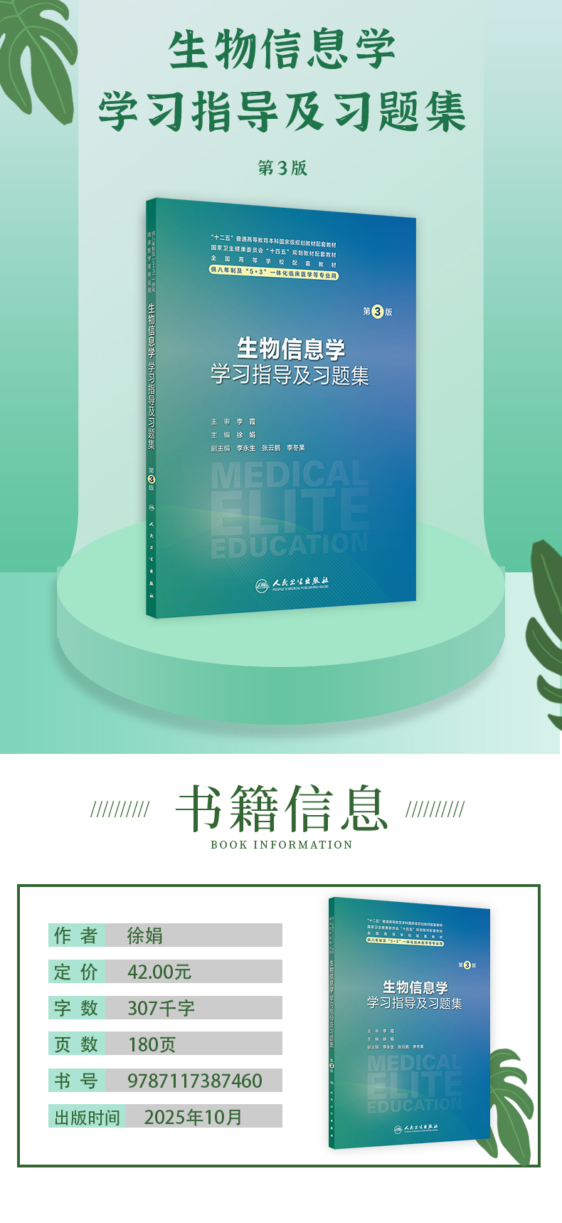 生物信息学学习指导及习题集 第3三版 十四五规划教材配套教材 全国高等学校配套教材 徐娟 主编 9787117387460 人民卫生出版社