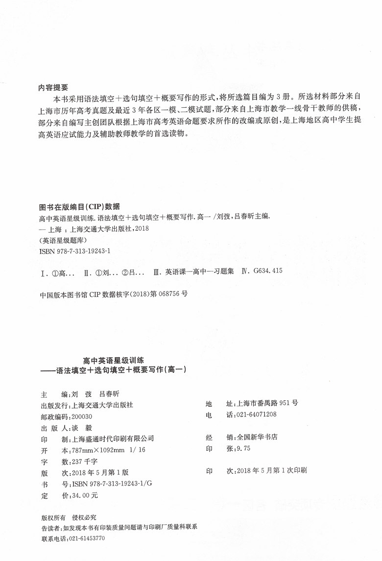 高中英语星级训练 语法填空+选句填空+概要写作 高一/高1 全一册 高考新题型 疑难题型专项突破 上海交通大学出版社