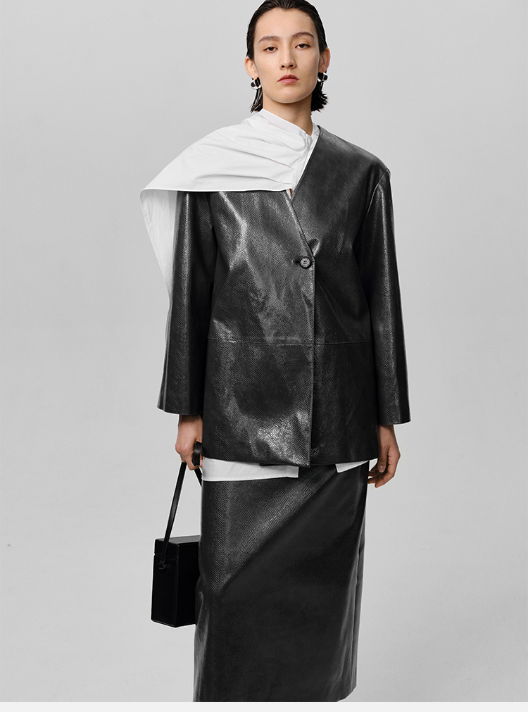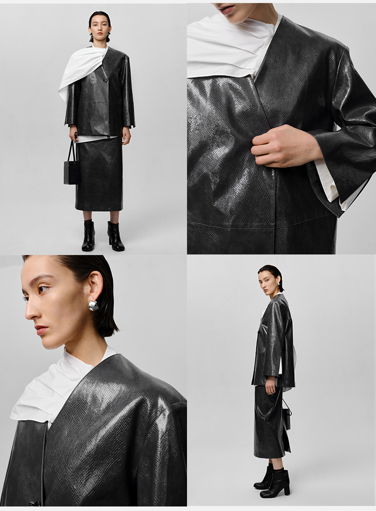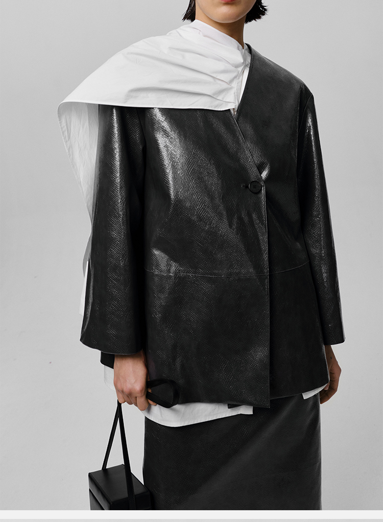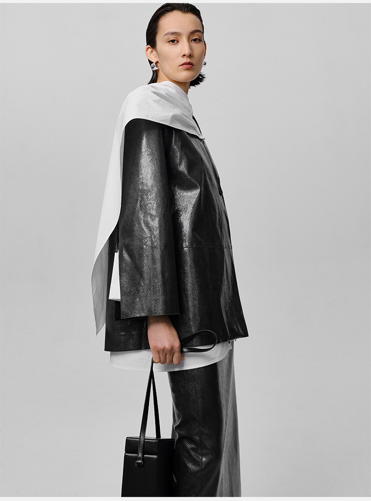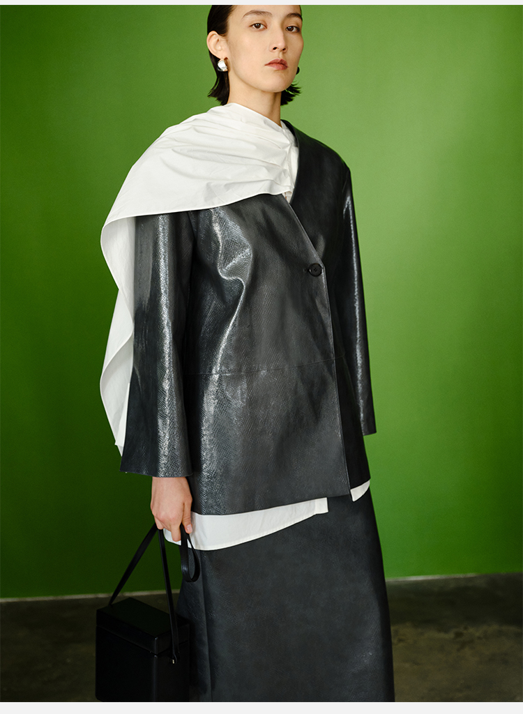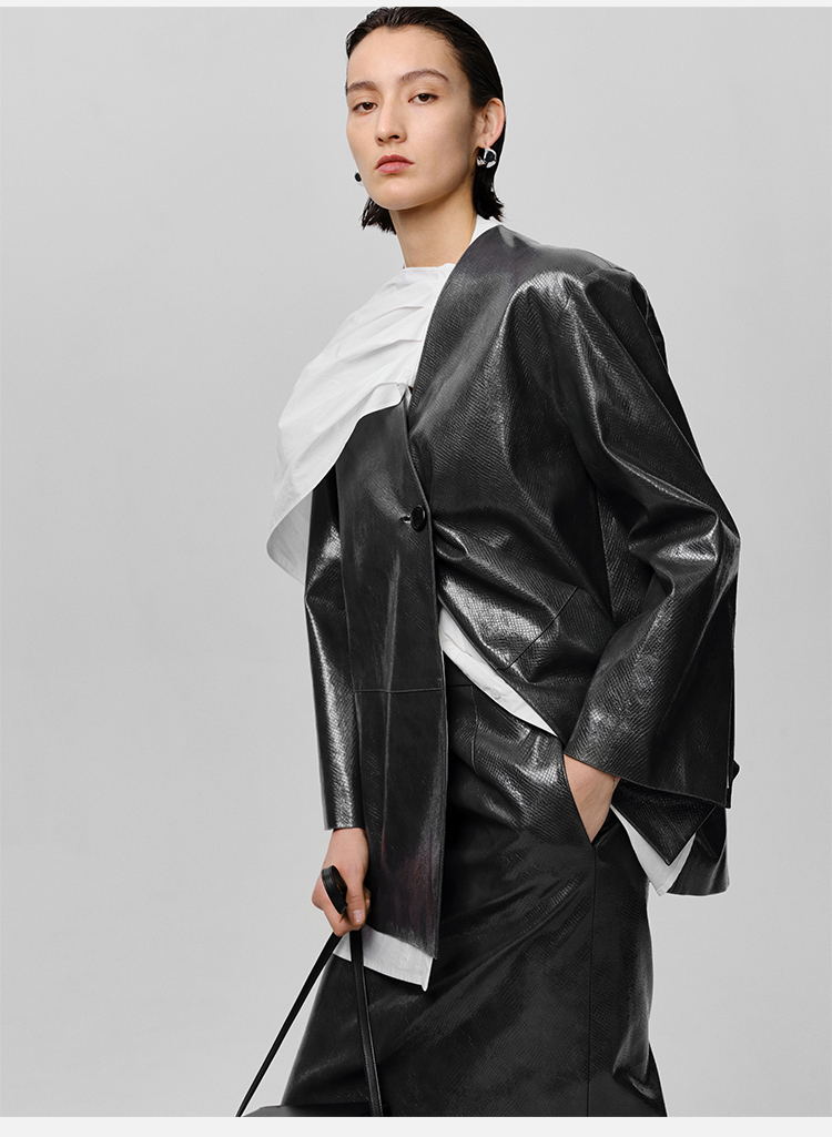 HIDEMI 特殊蜥蜴压纹V领宽肩大廓形极简西装