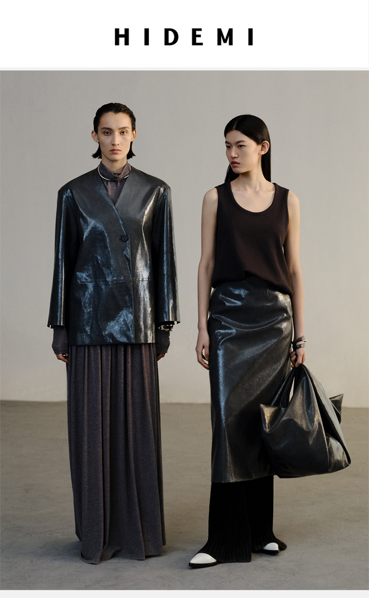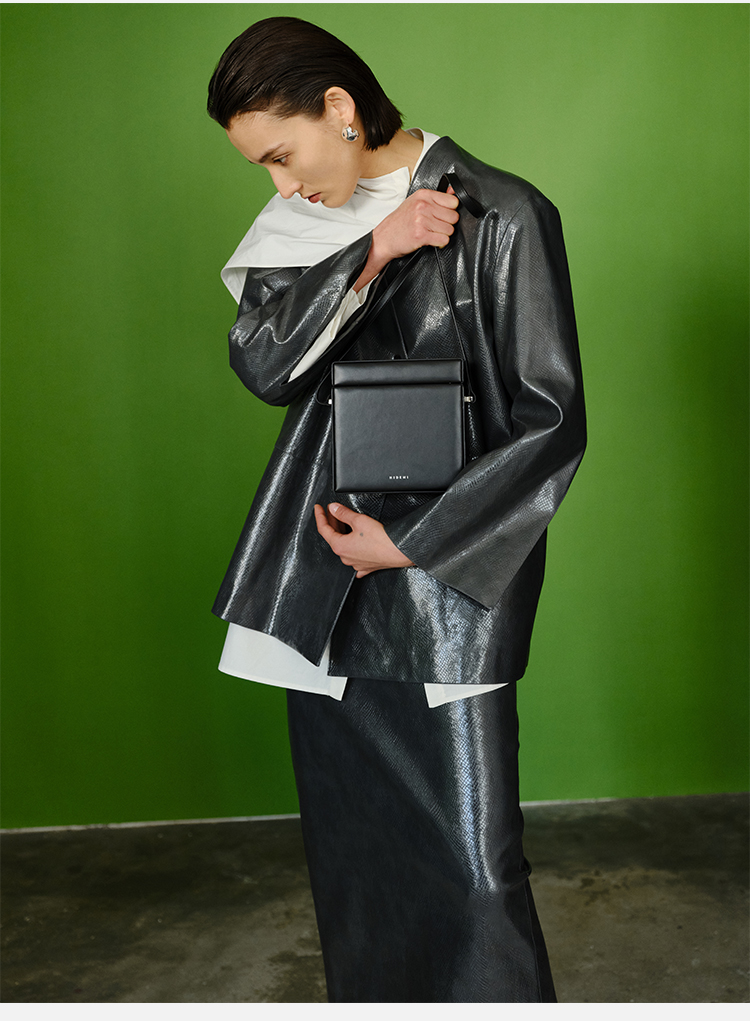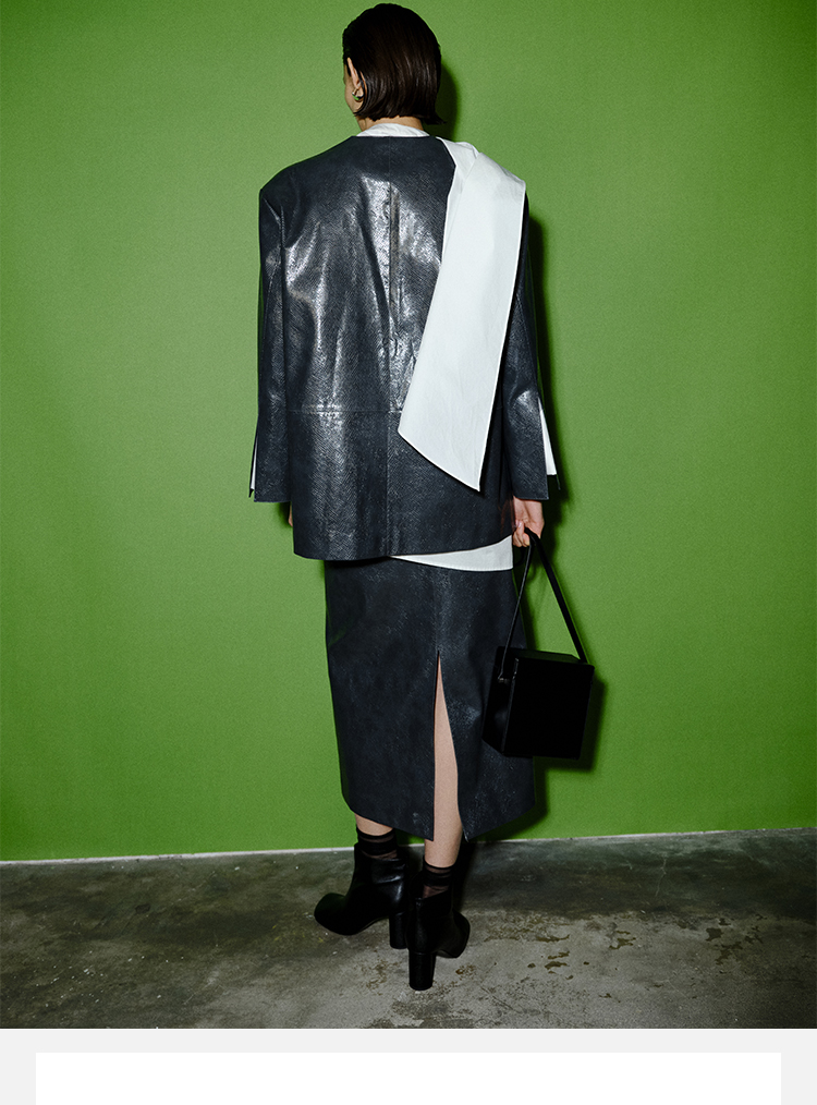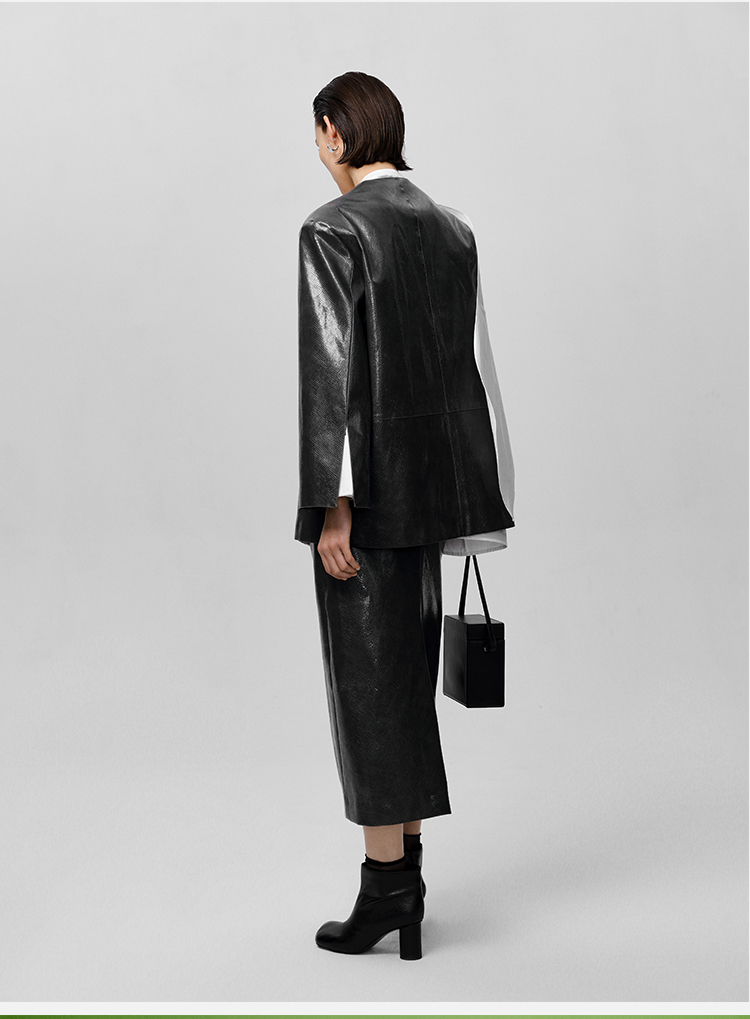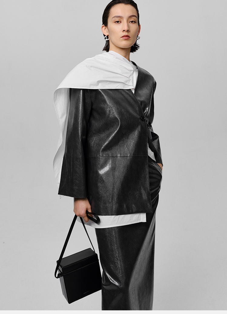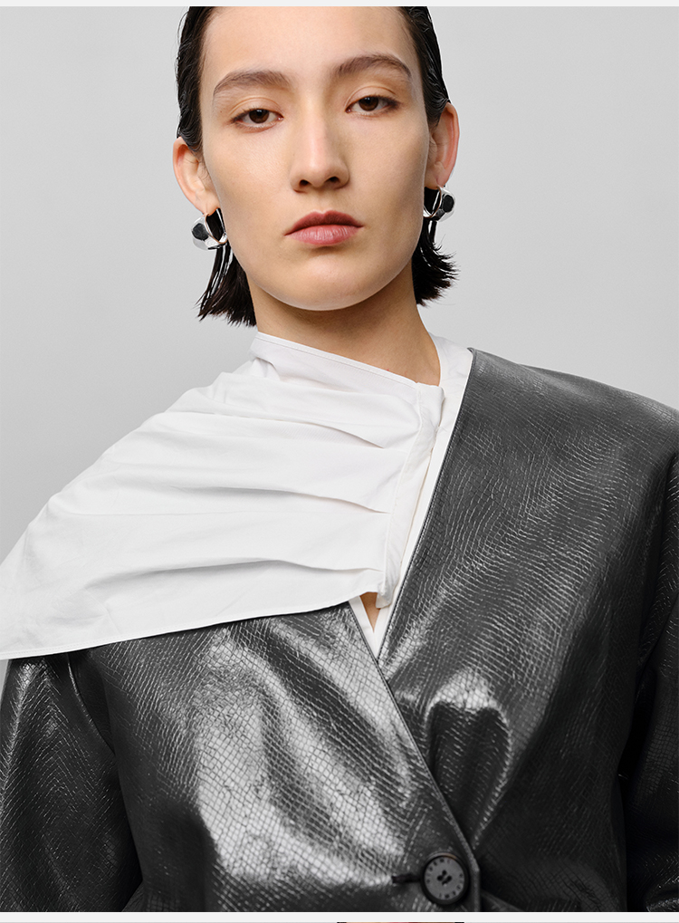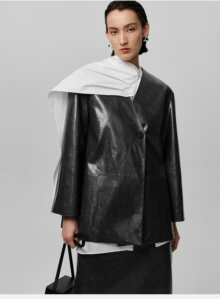 HIDEMI 特殊蜥蜴压纹V领宽肩大廓形极简西装