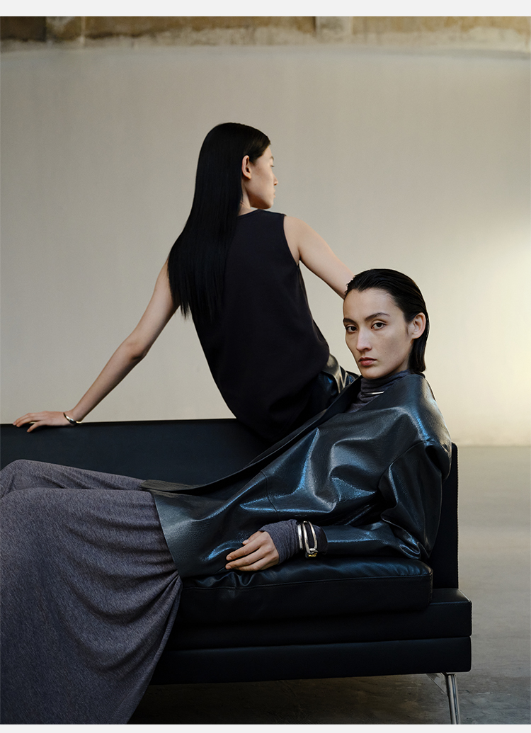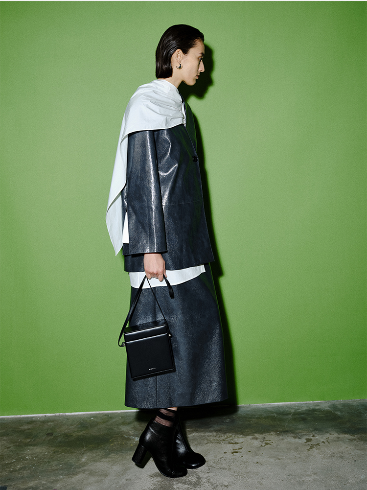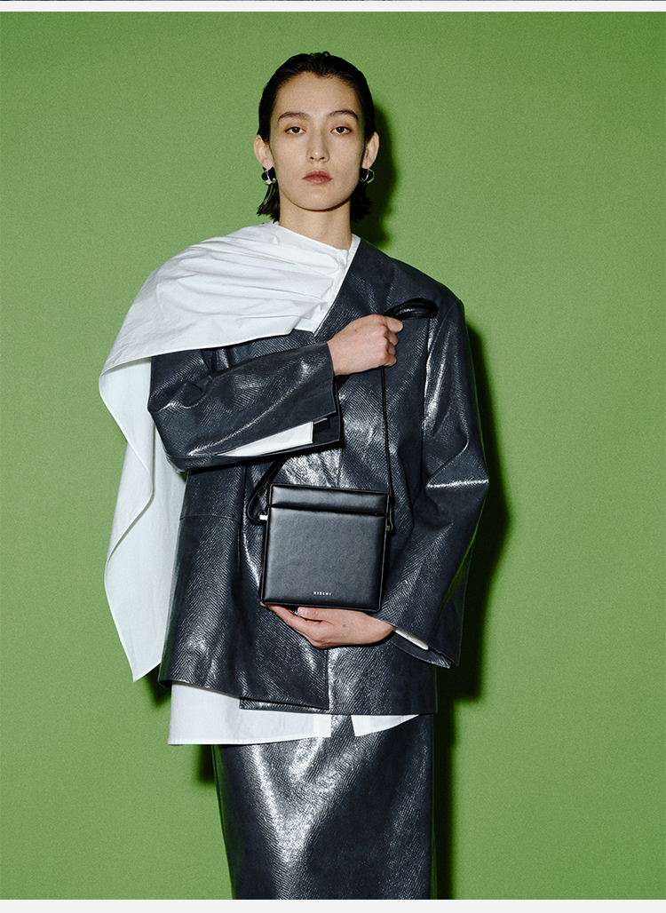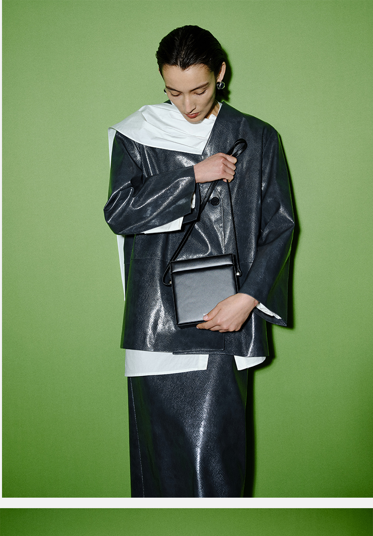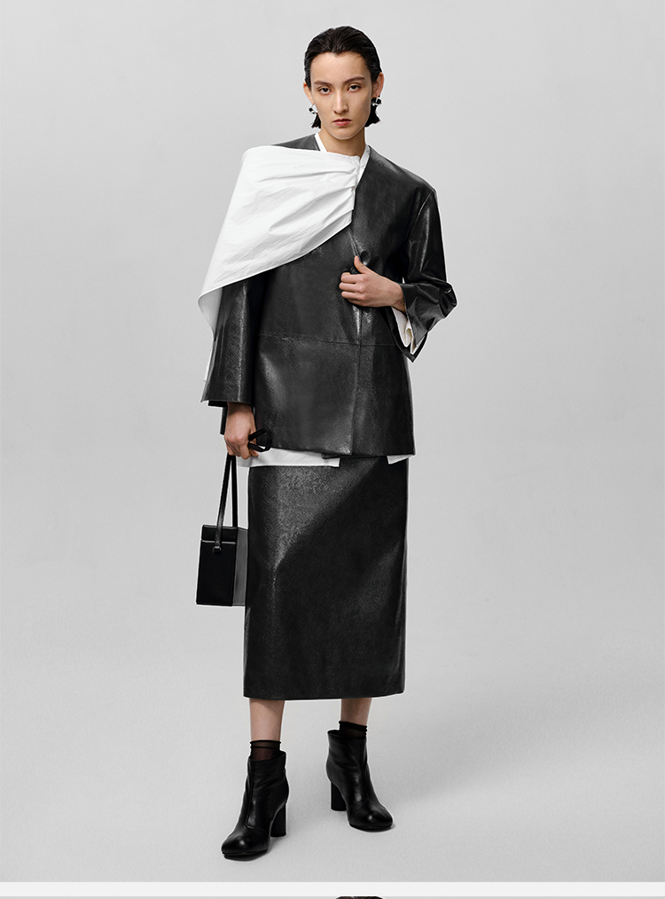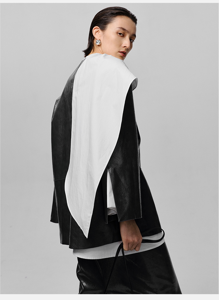 HIDEMI 特殊蜥蜴压纹V领宽肩大廓形极简西装
