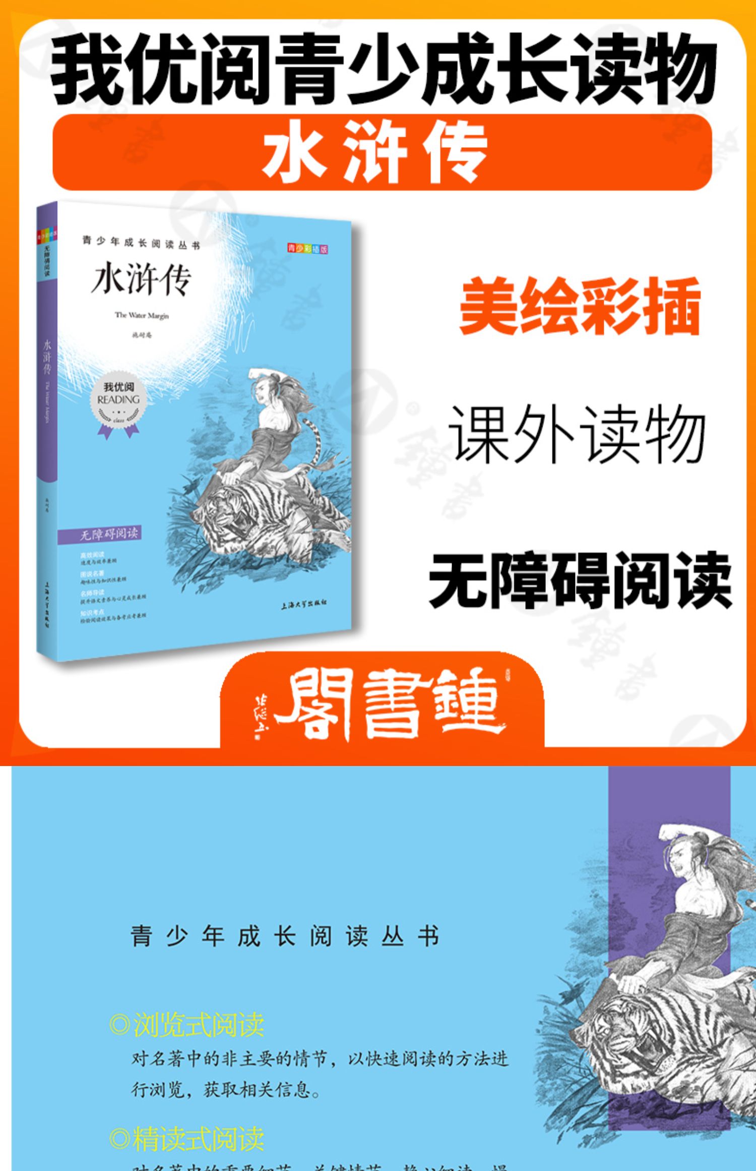 四大名著水浒传 钟书正品正版书籍 我优阅青少彩插版无障碍课外阅读 小学生三年级四五六年级3456年级课外文学儿童故事读物图书籍