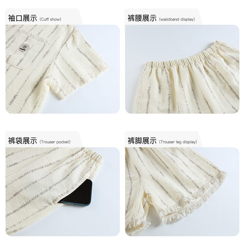 可人儿小众设计师新款泡泡绵夏季女士短袖睡衣时尚可外出家居服
