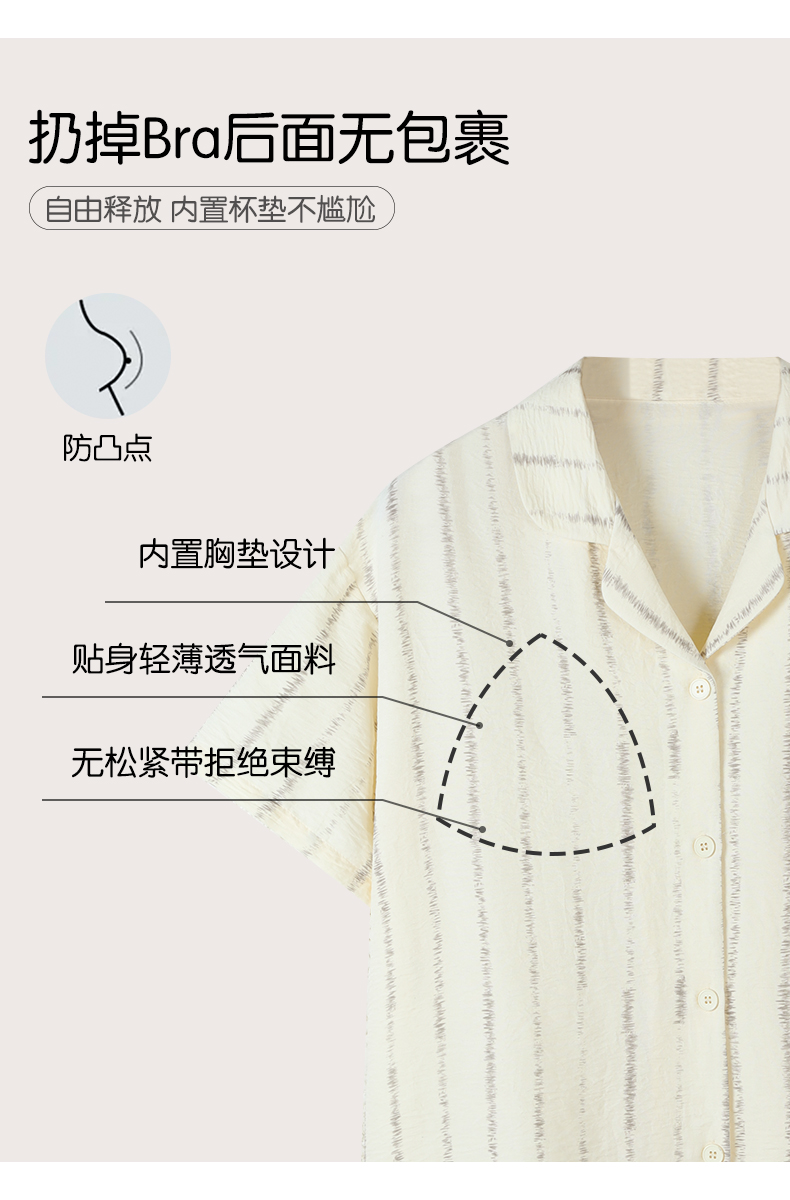 可人儿小众设计泡泡绵女士带胸垫睡衣夏季短袖可外出家居服三件套