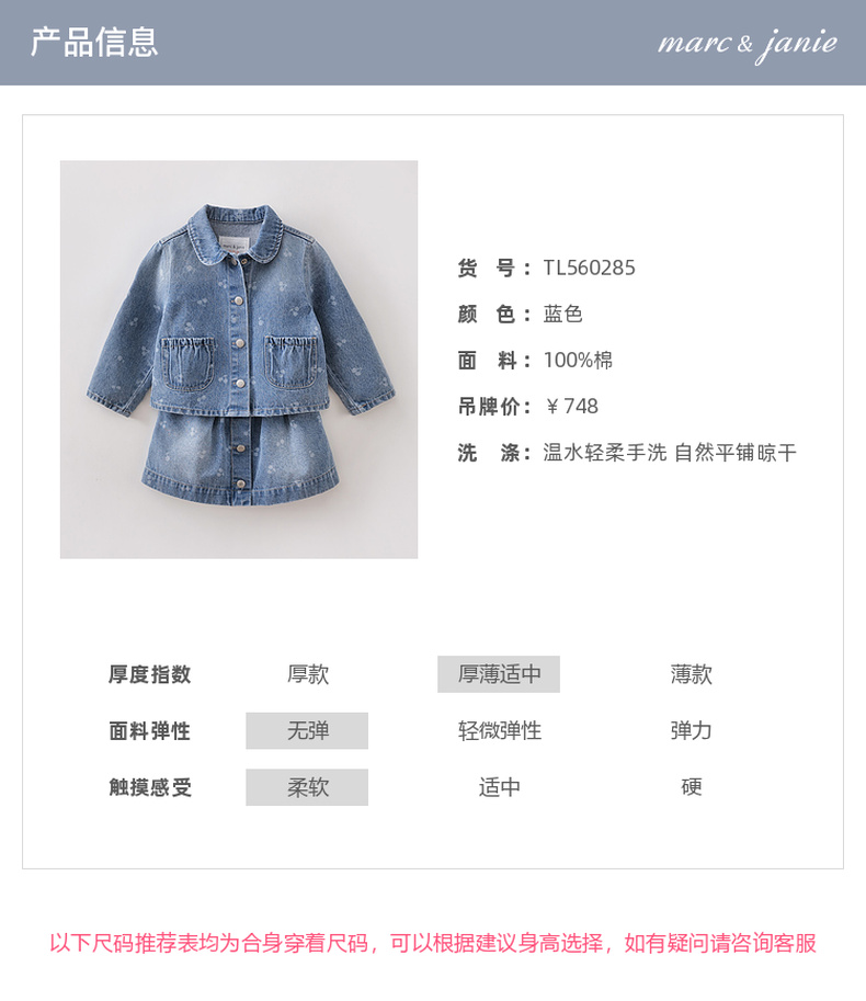 马克珍妮春日小樱桃女童纯棉牛仔套装2026年春装新款560285
