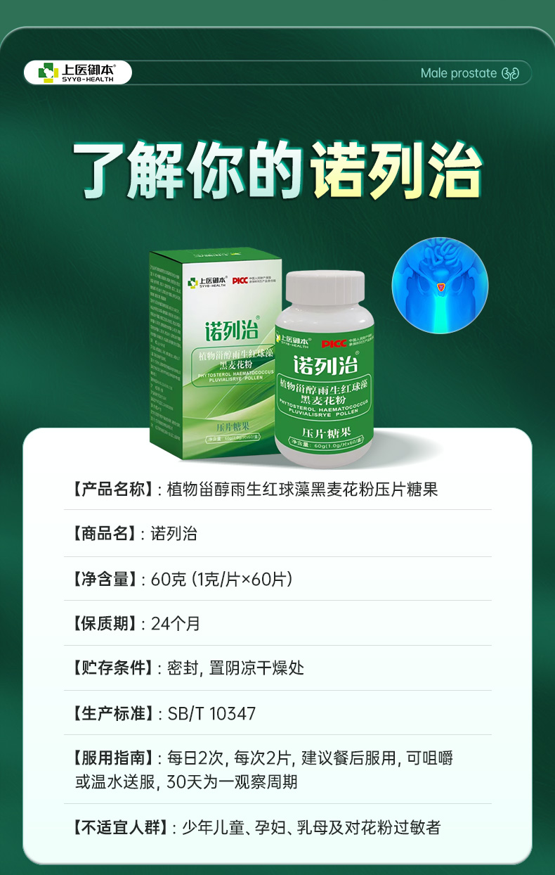 诺列治植物甾醇雨生红球藻黑麦花粉虾青素前列腺男性生殖增生肥大