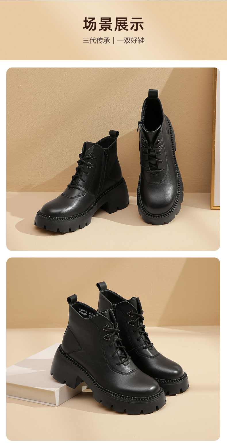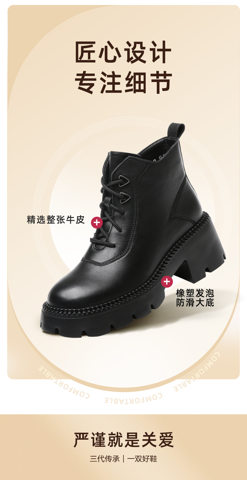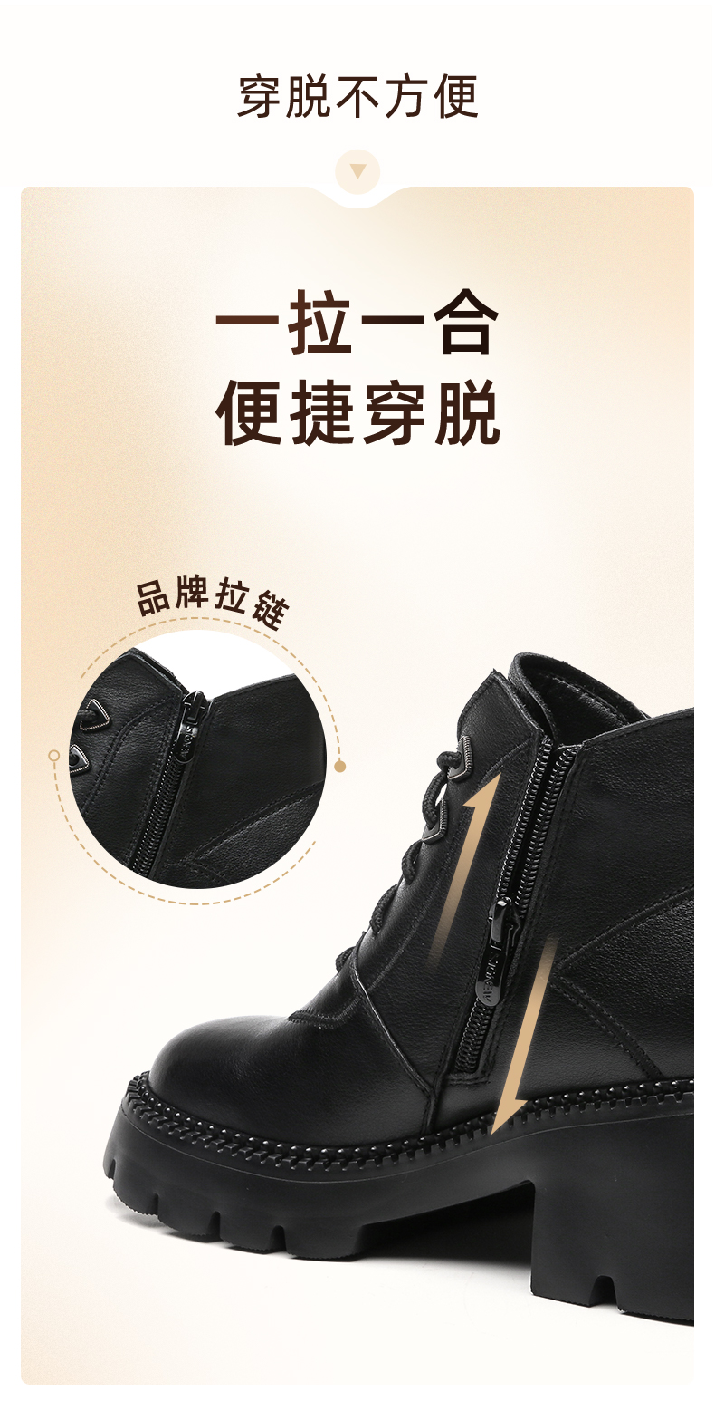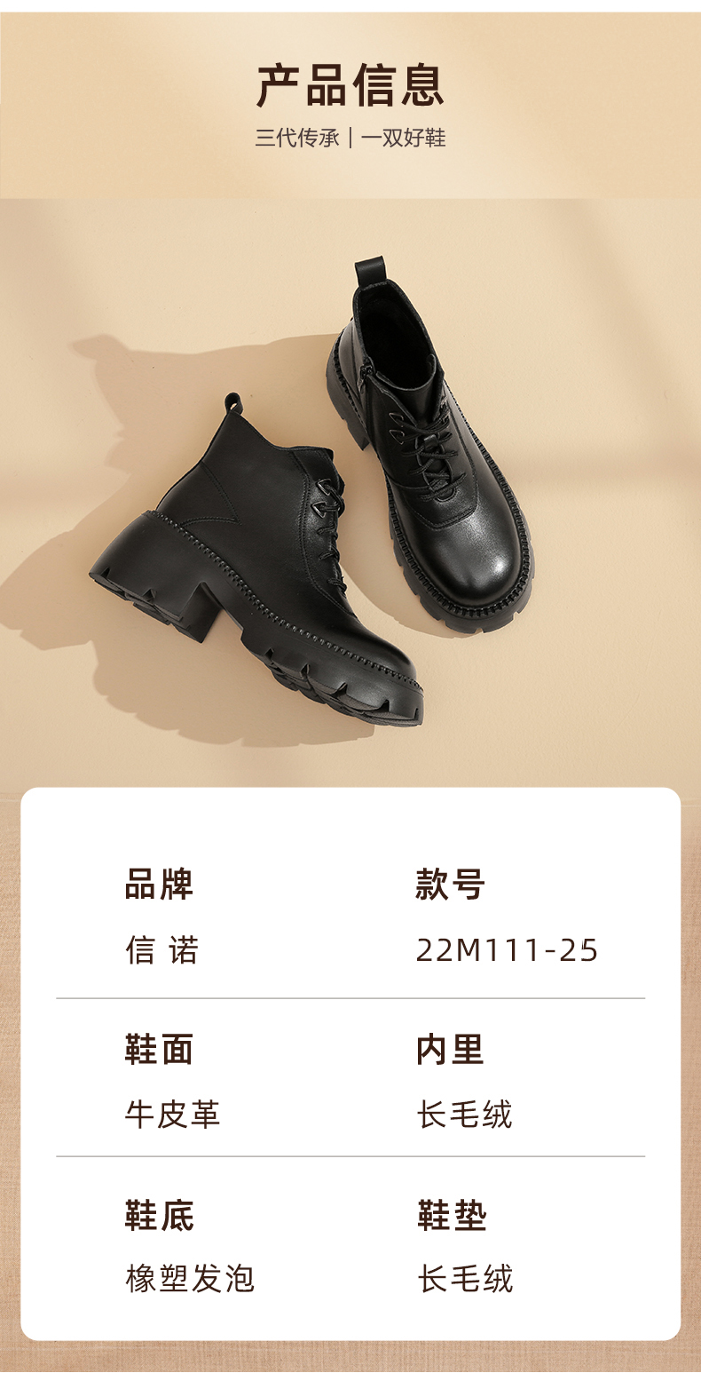信诺超轻厚底妈妈短靴女软底2022秋冬款真皮休闲粗跟加绒女马丁靴22M111-25