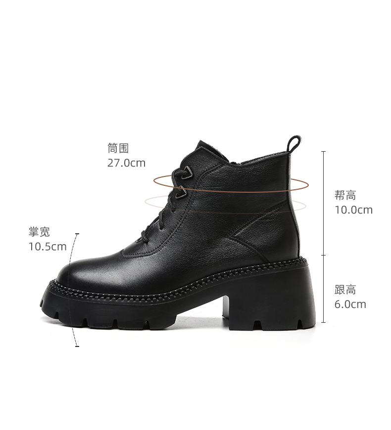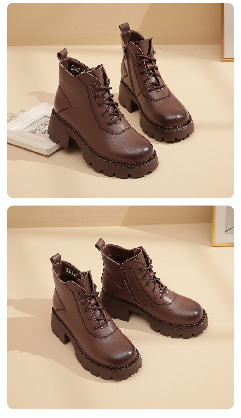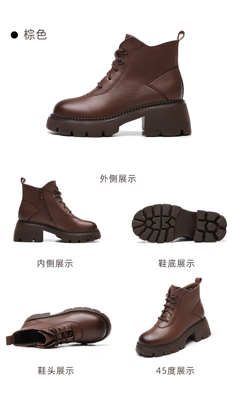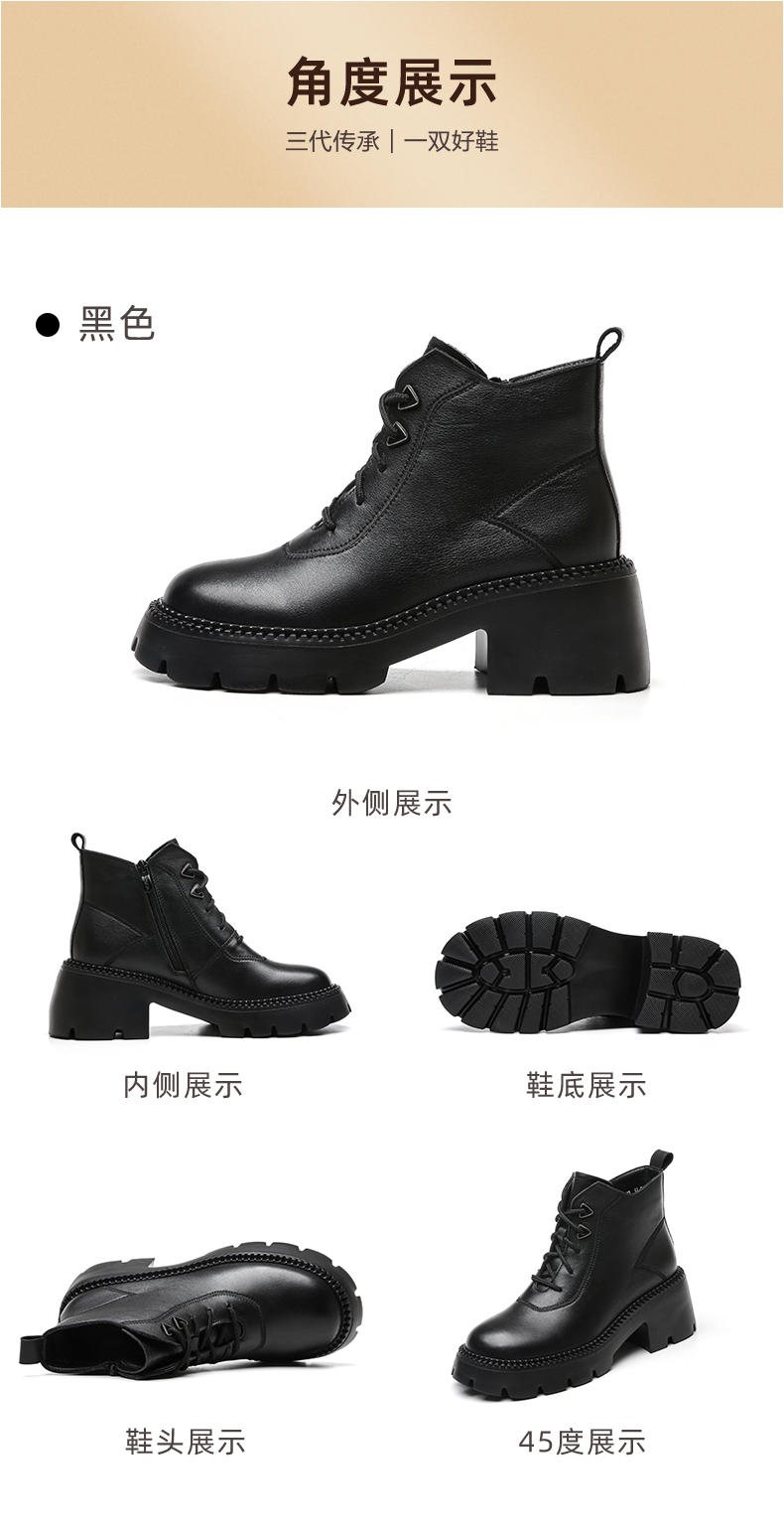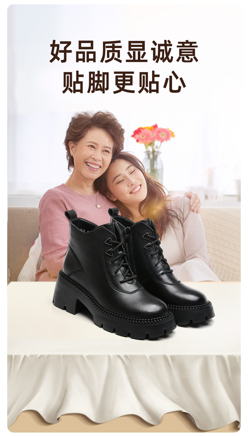 信诺超轻厚底妈妈短靴女软底2022秋冬款真皮休闲粗跟加绒女马丁靴22M111-25