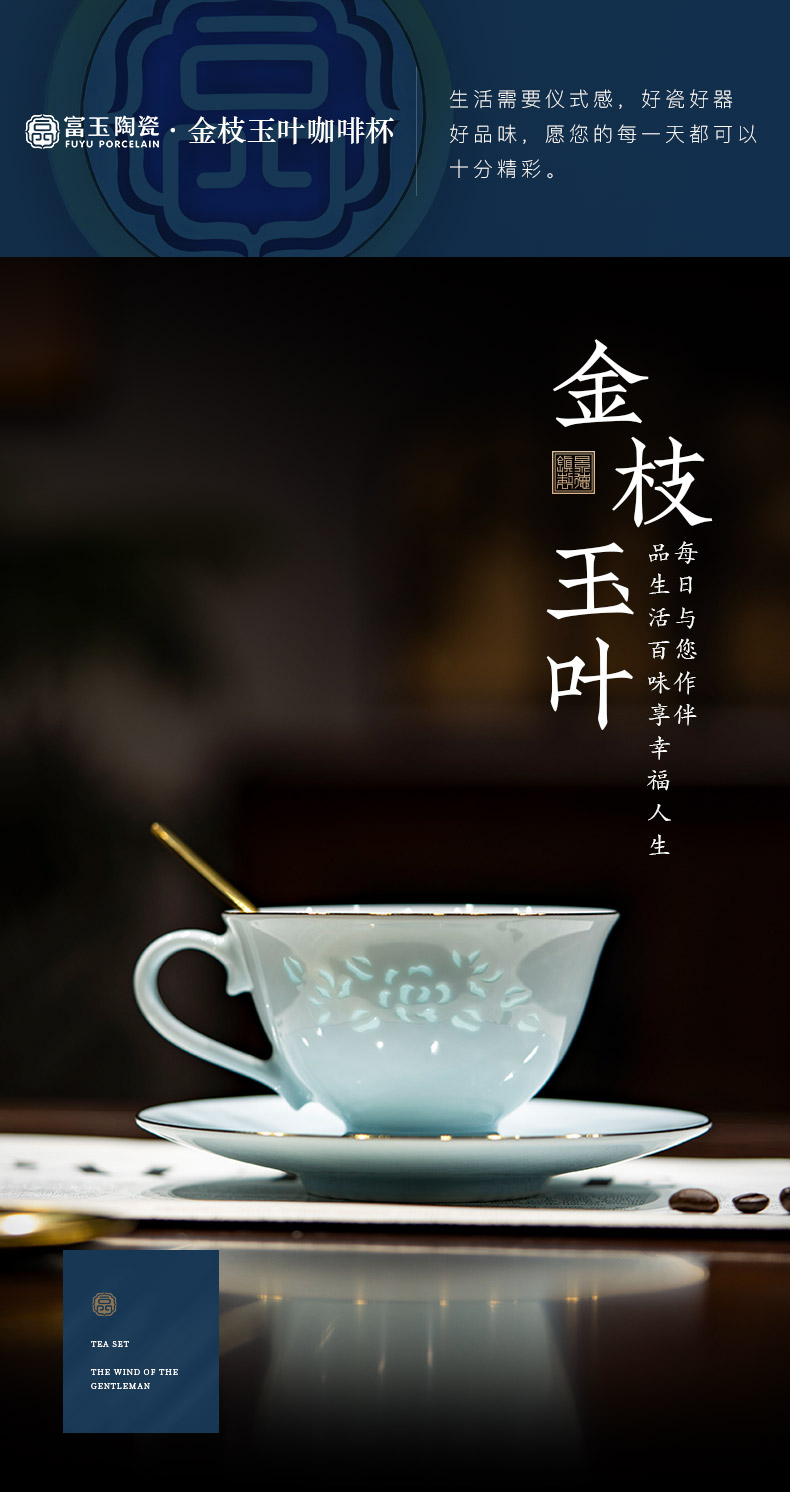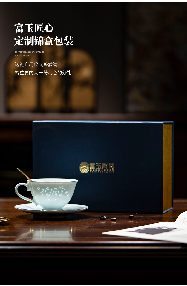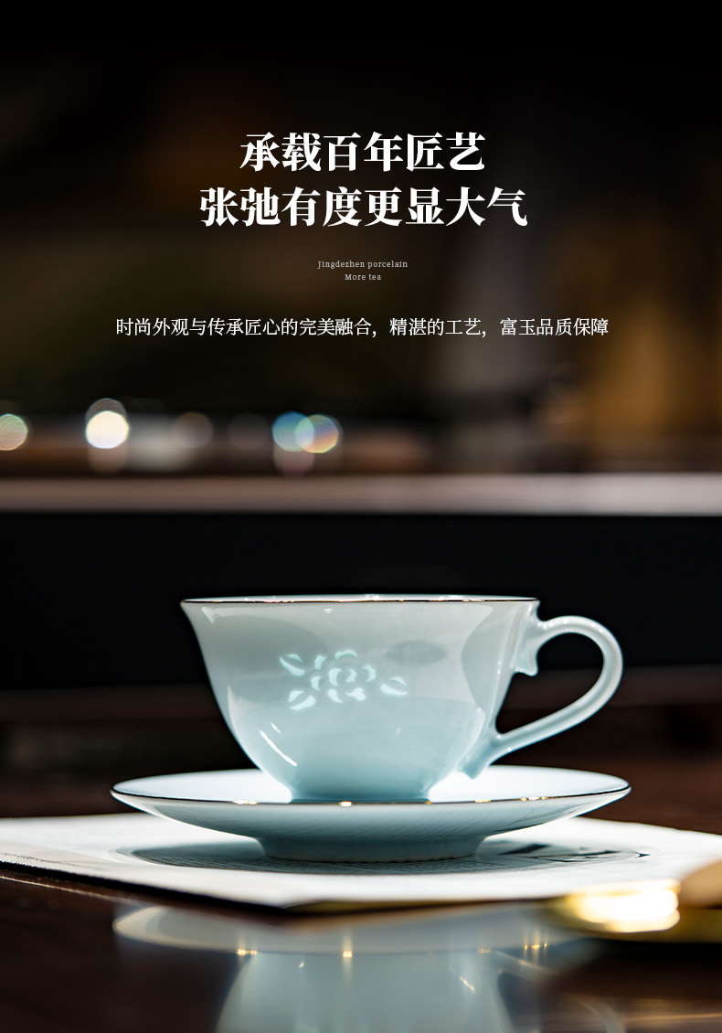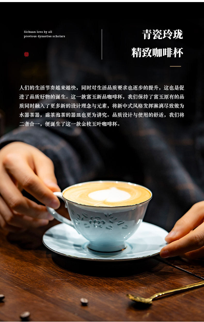 富玉 景德镇陶瓷金枝玉叶咖啡杯碟家用高档精致青瓷玲珑杯高级感轻奢高颜值