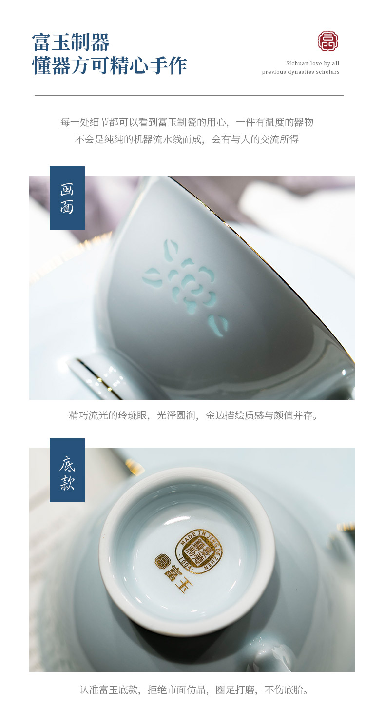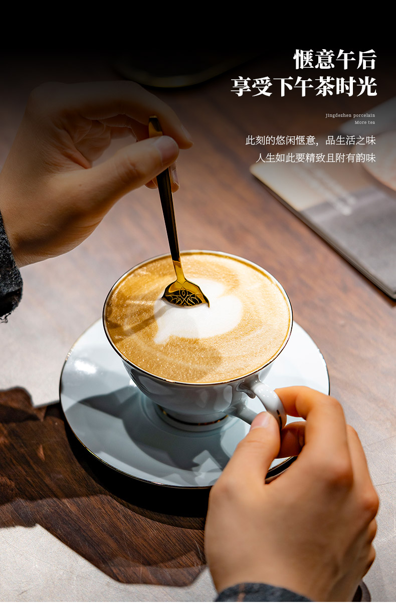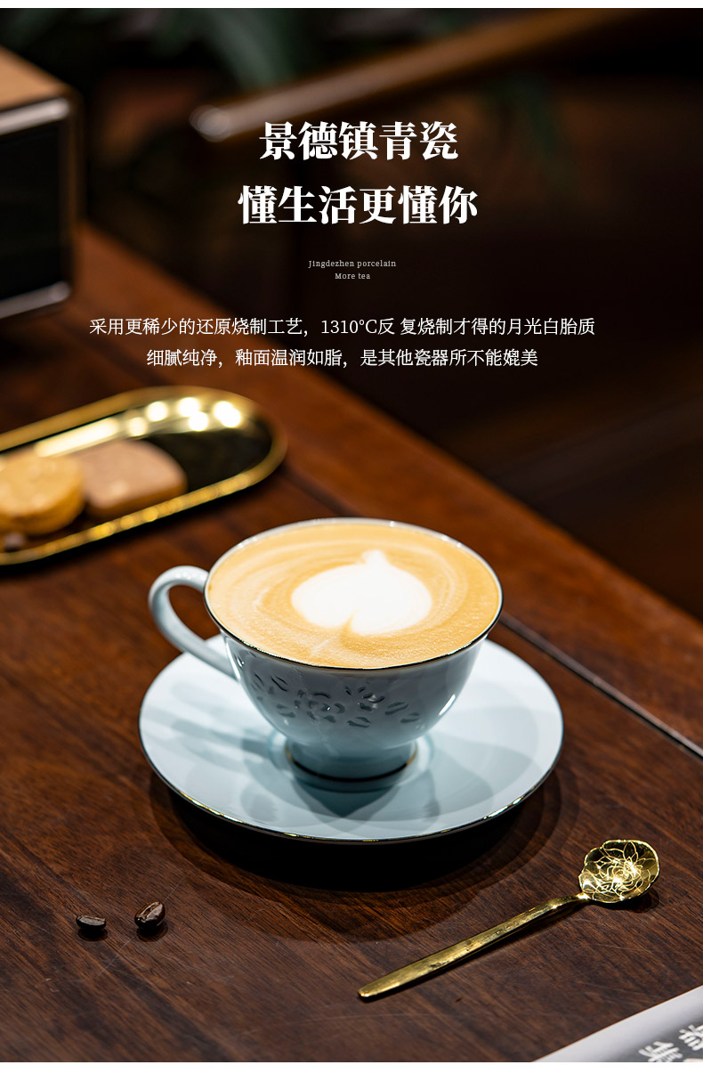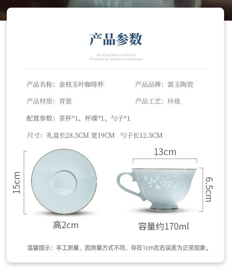 富玉 景德镇陶瓷金枝玉叶咖啡杯碟家用高档精致青瓷玲珑杯高级感轻奢高颜值