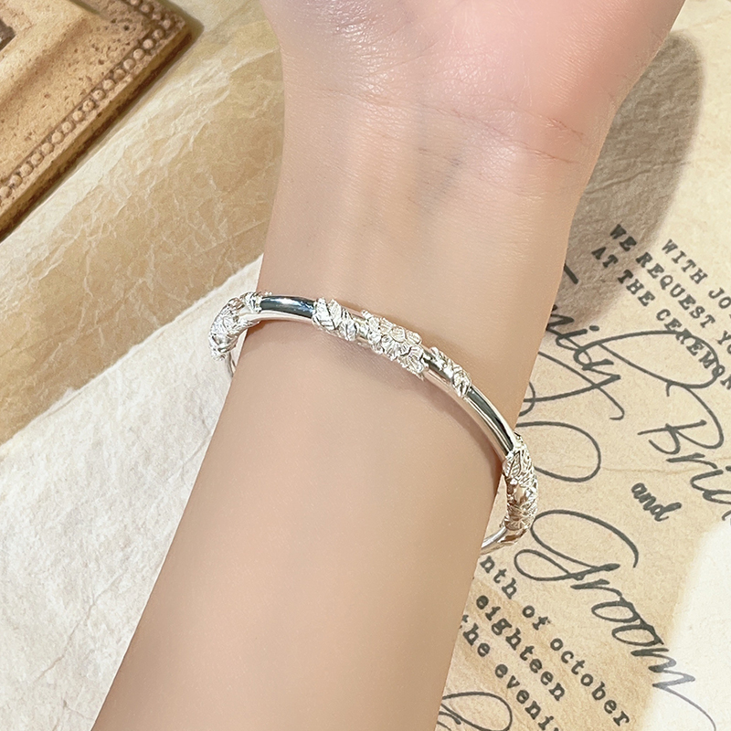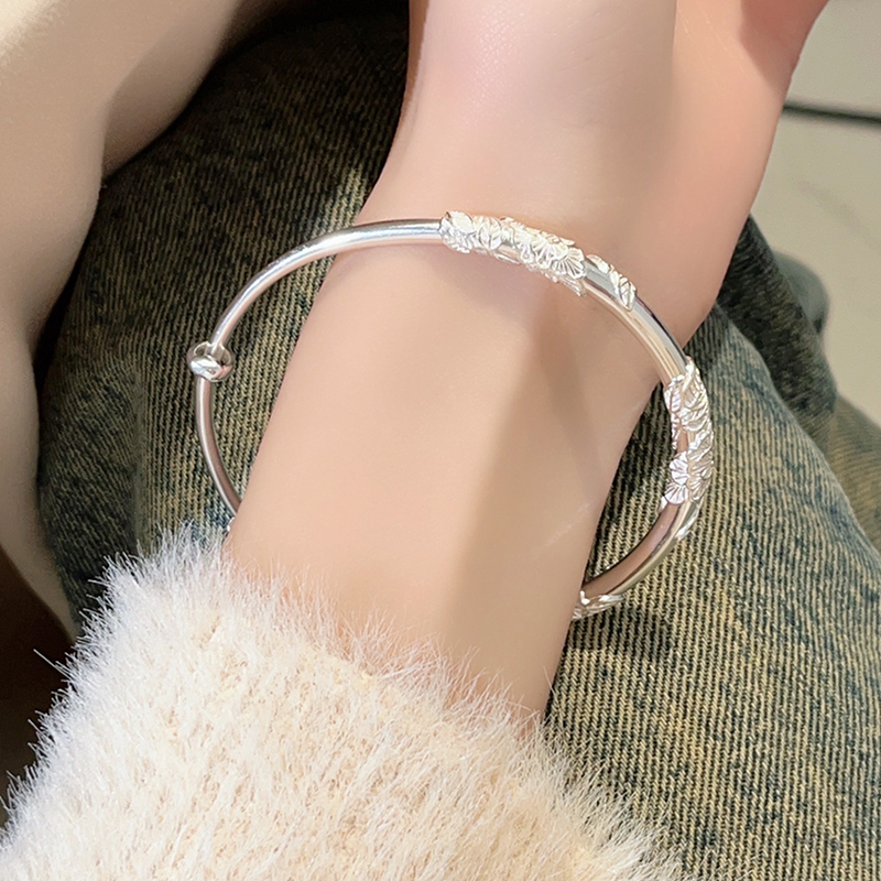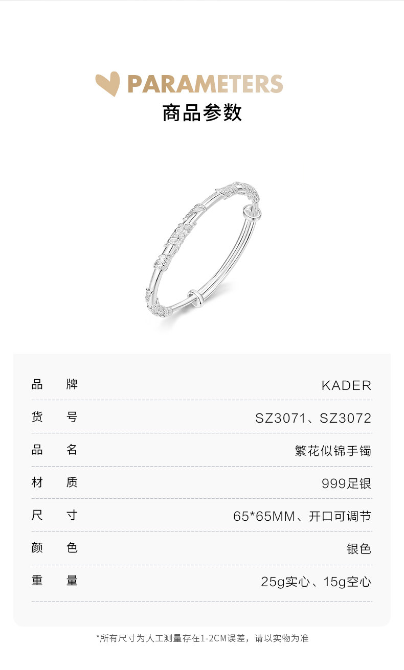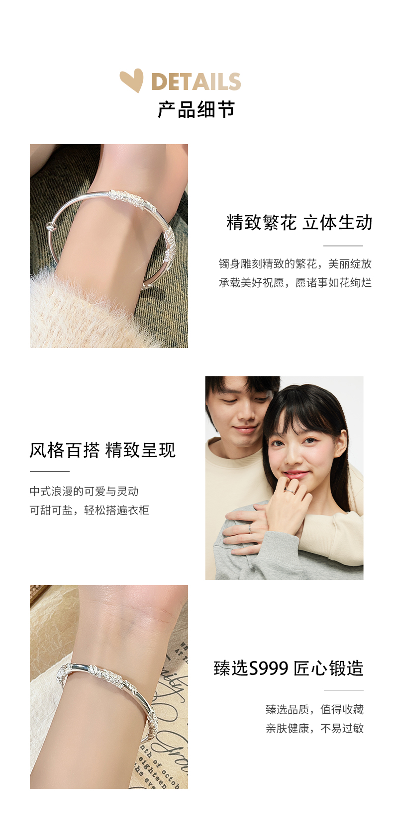 KADER卡蒂罗 繁花似锦系列 999足银新中式开口可调节素圈实心 立体精致国潮风银镯简约百搭 送女友礼物