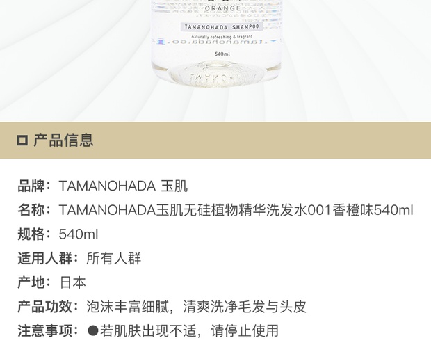 【奢华香氛,润泽秀发】TAMANOHADA 玉肌 无硅植物精华洗发水/护发素 540ml