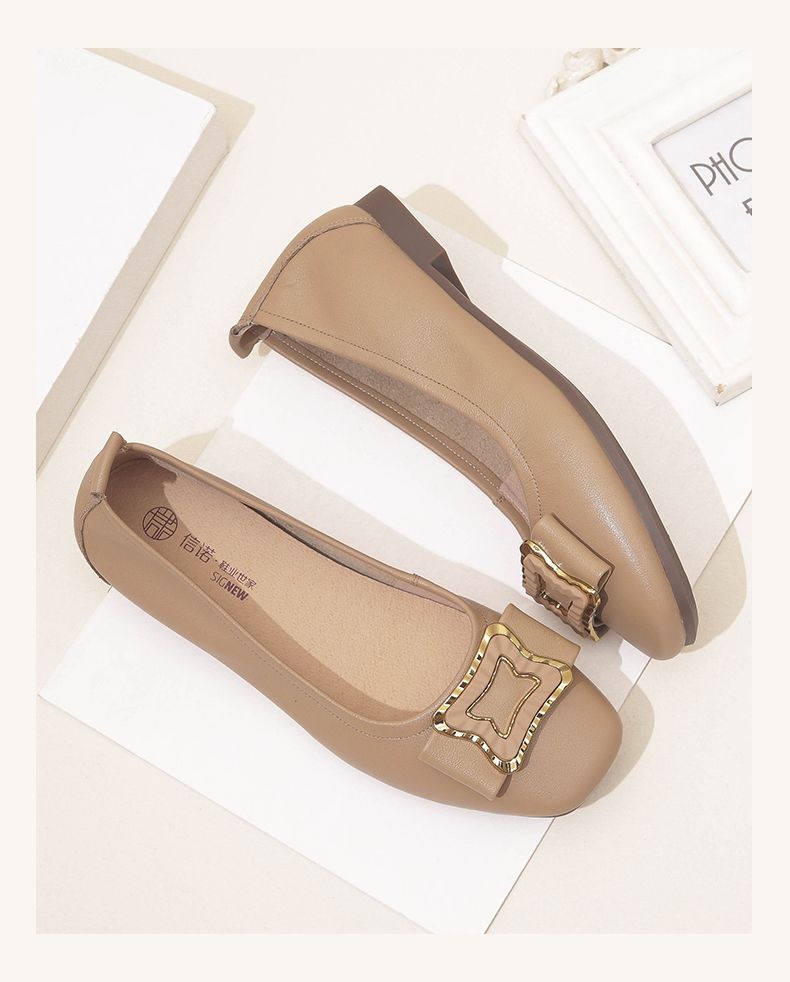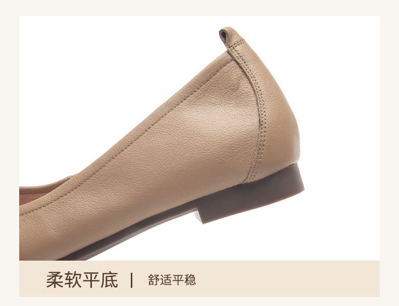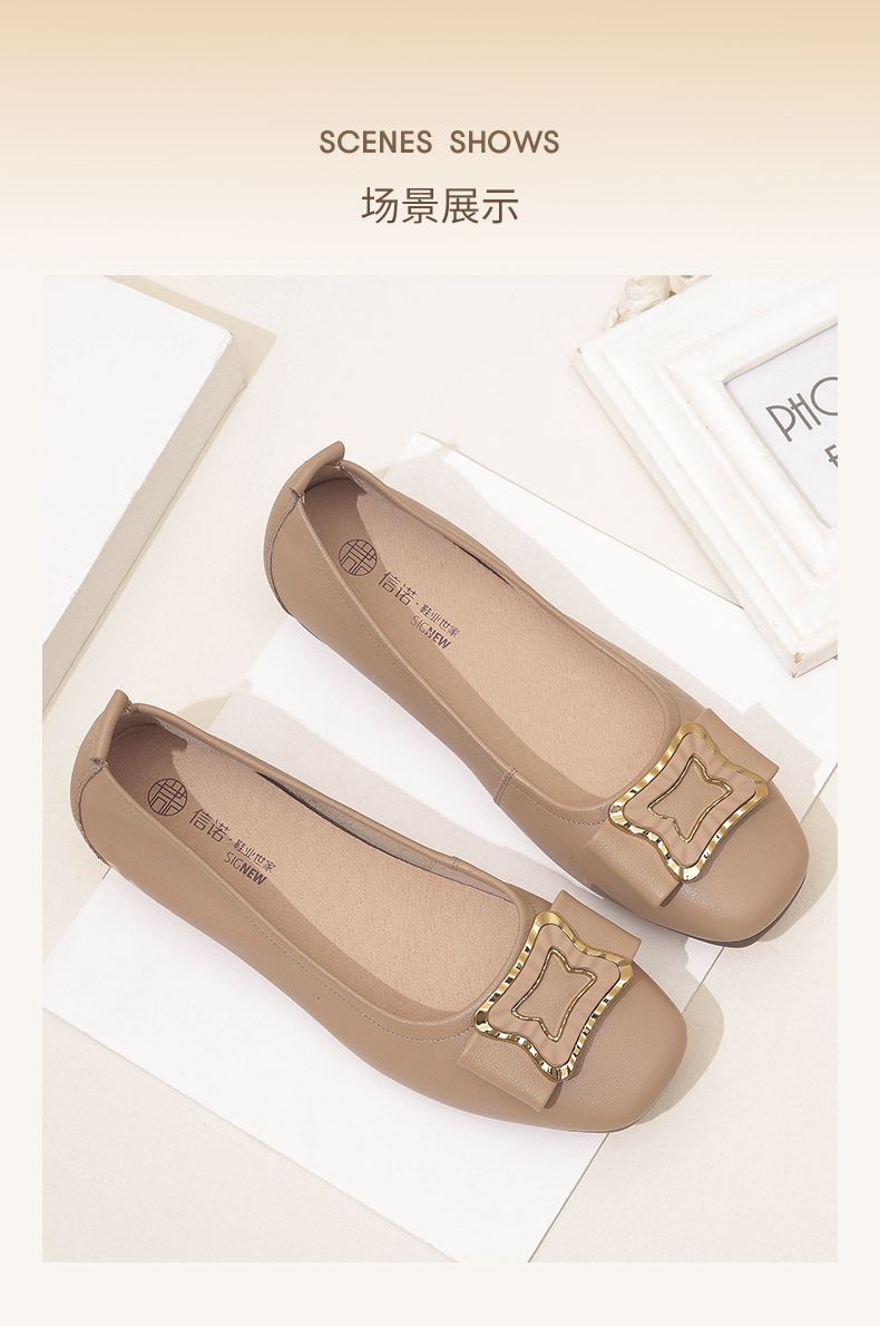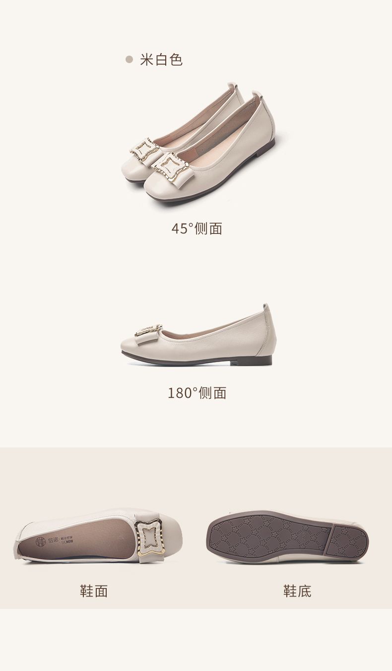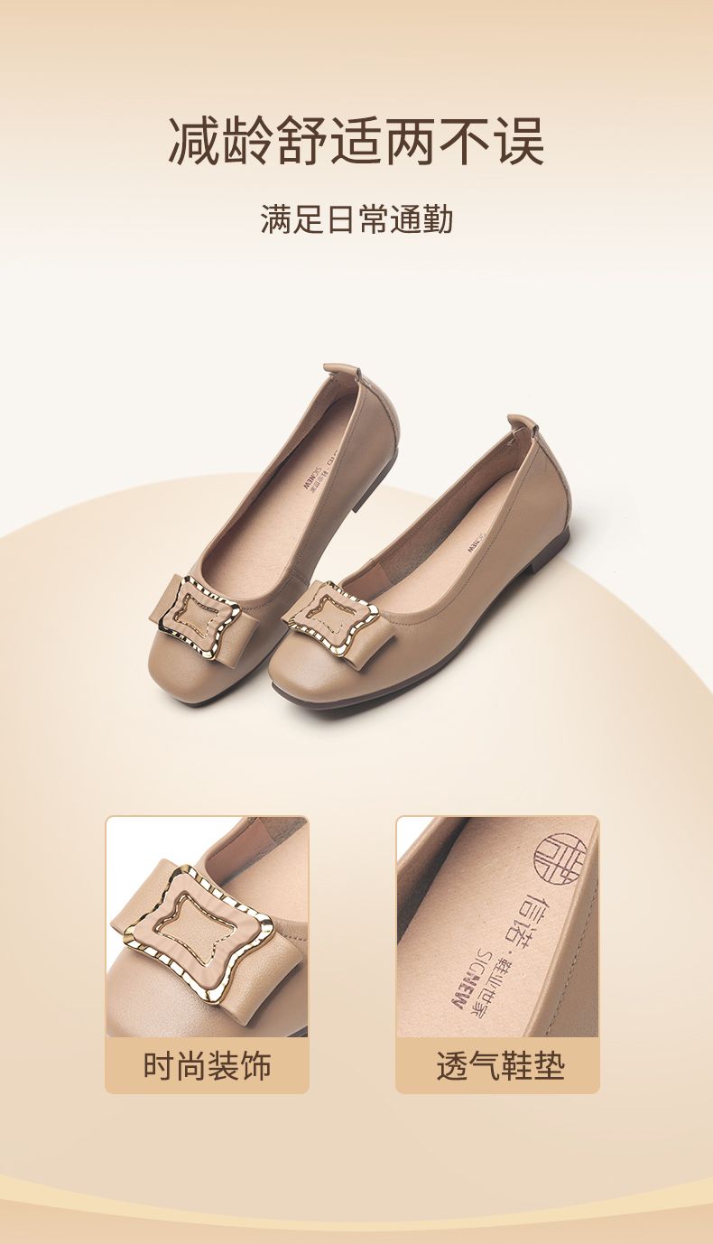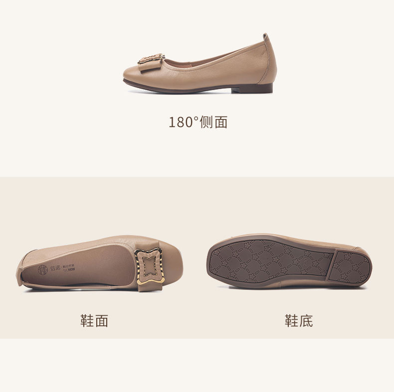 信诺平底单鞋女2023新款真皮一脚蹬豆豆鞋方头浅口软底奶奶女鞋23Q1629-9