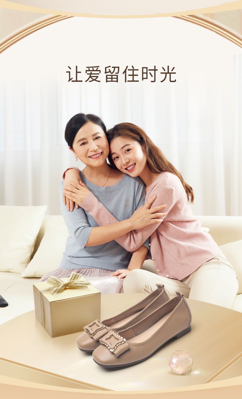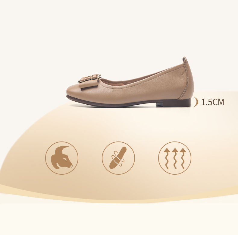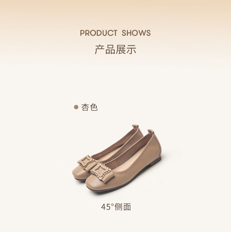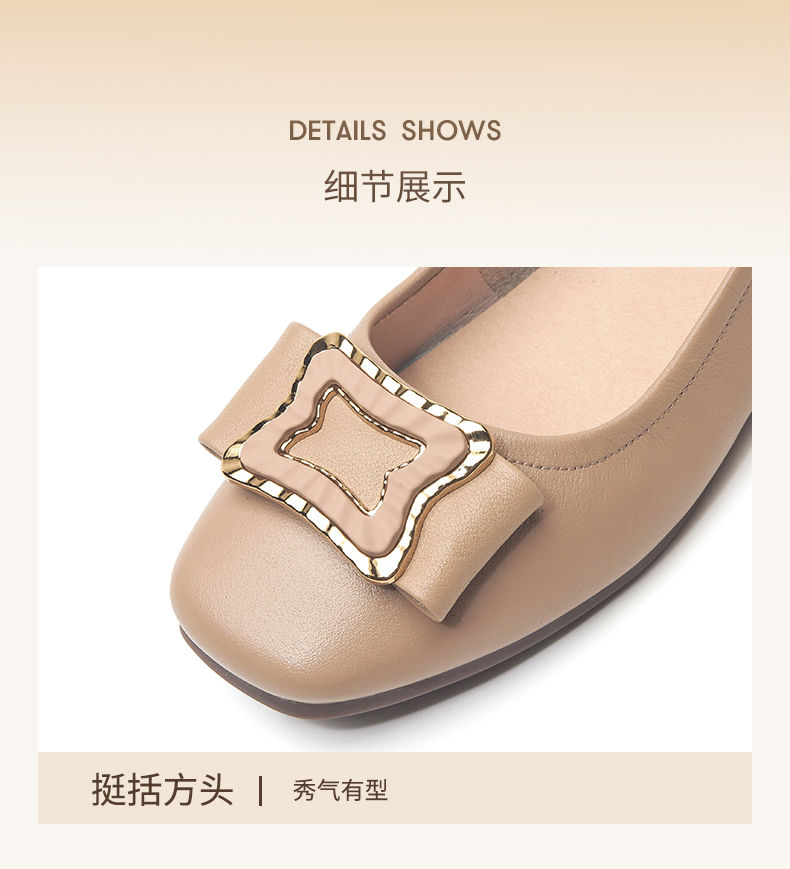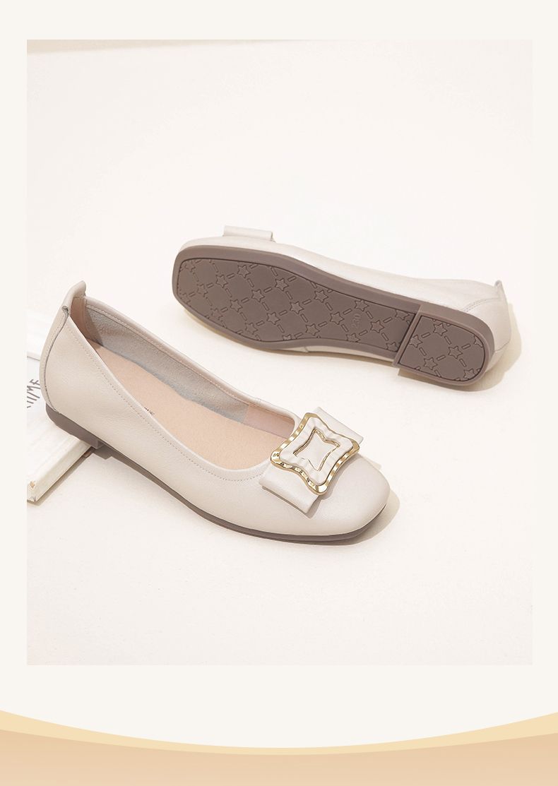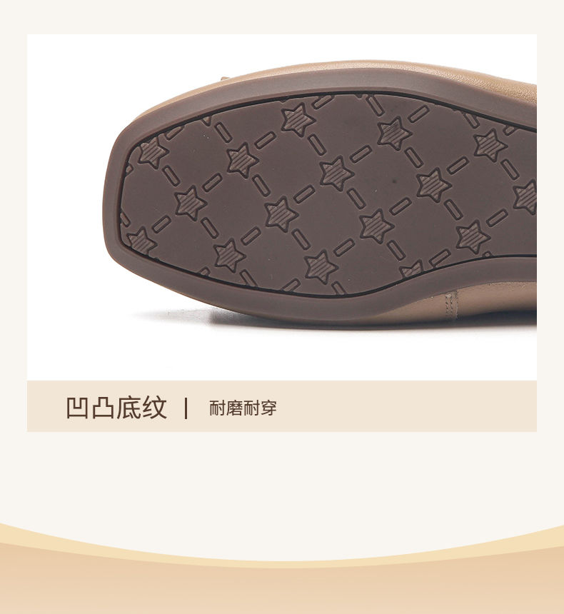 信诺平底单鞋女2023新款真皮一脚蹬豆豆鞋方头浅口软底奶奶女鞋23Q1629-9