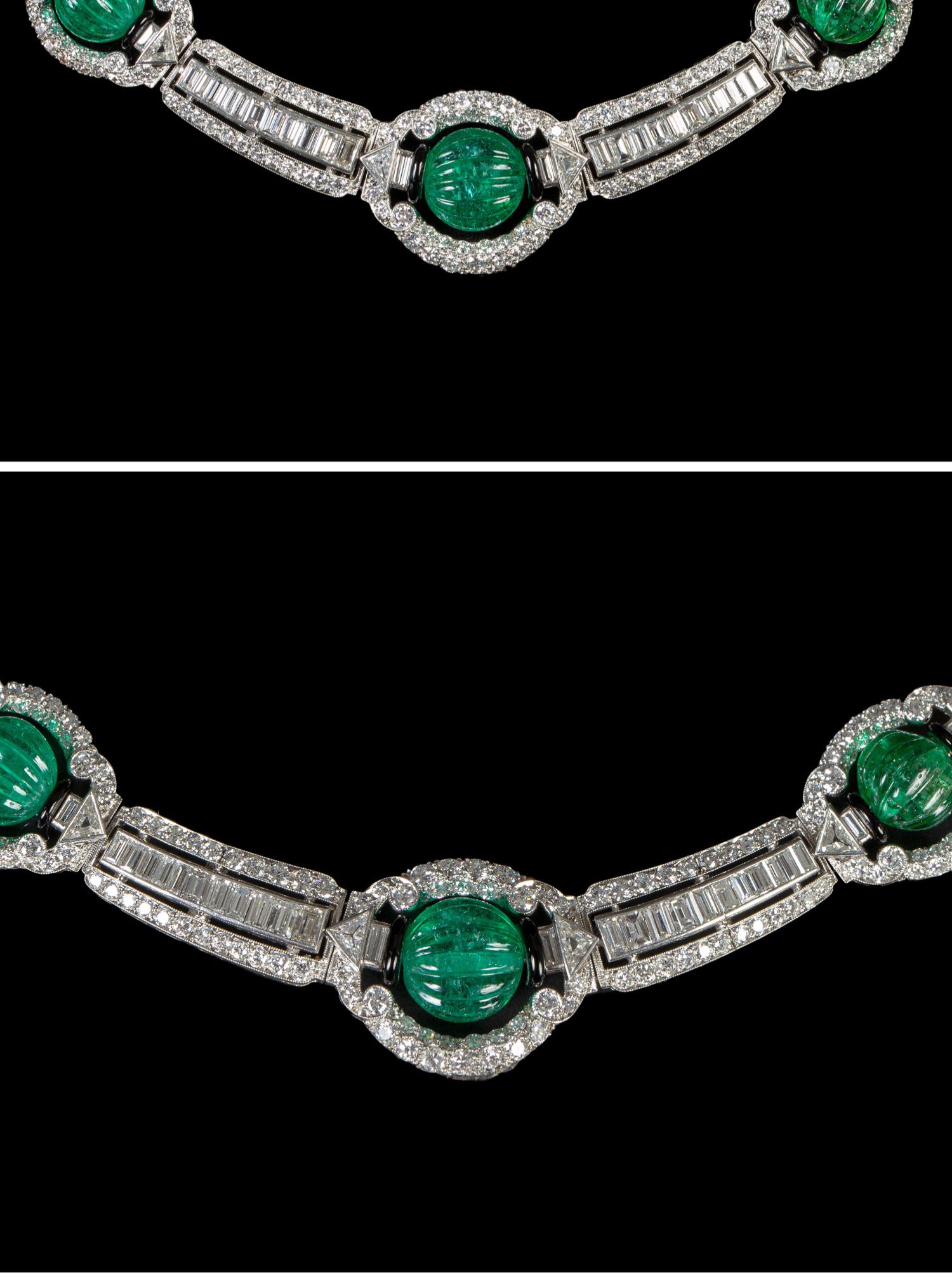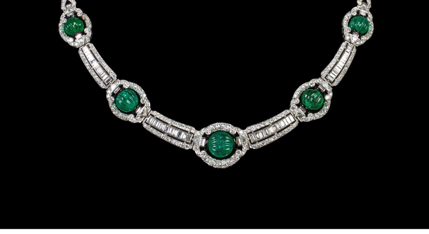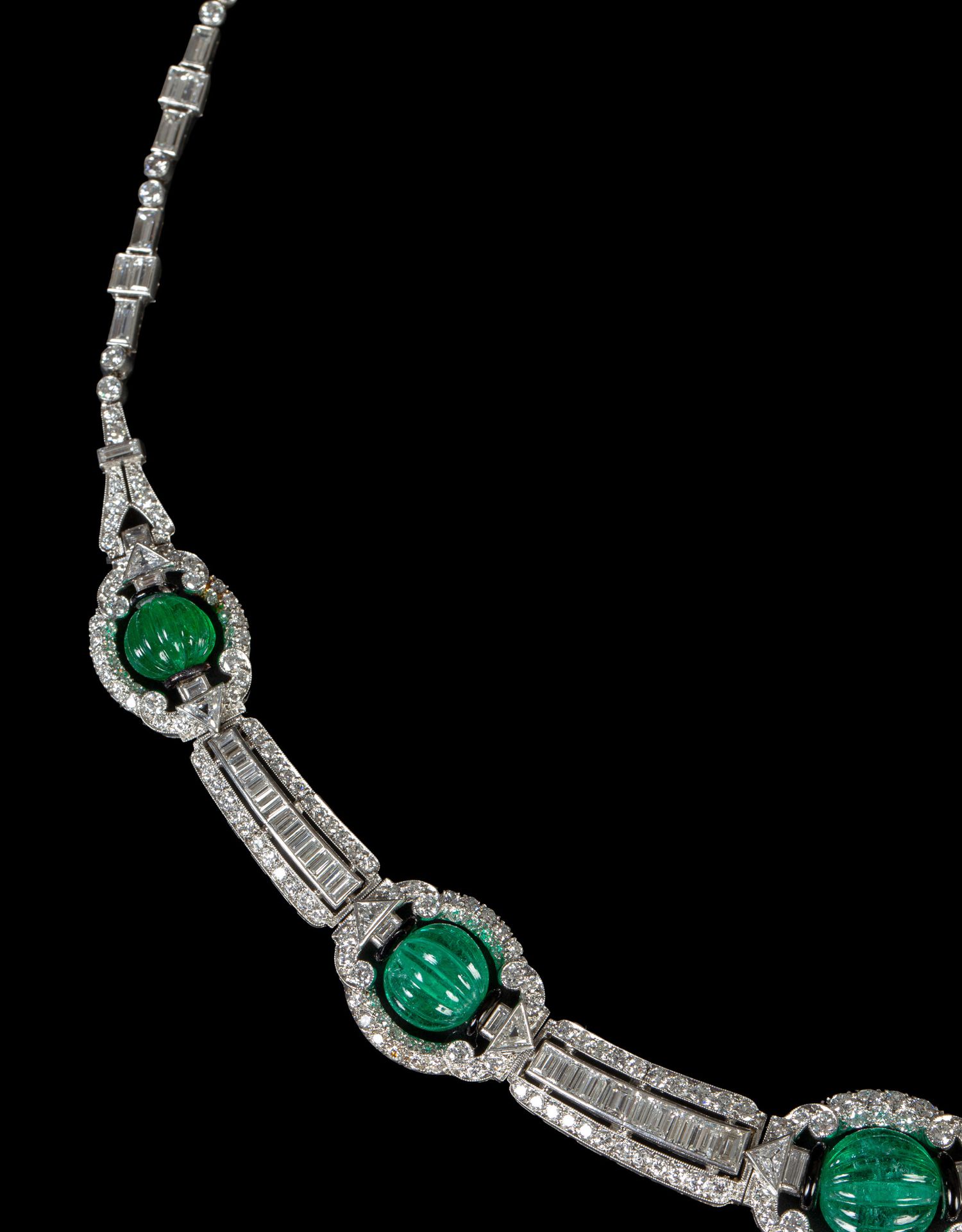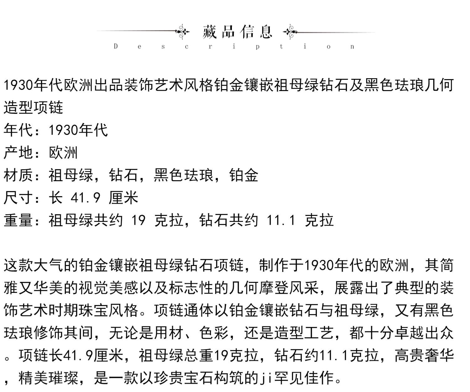 独角鹿西洋古董装饰艺术风格铂金镶祖母绿钻石珐琅几何造型项链