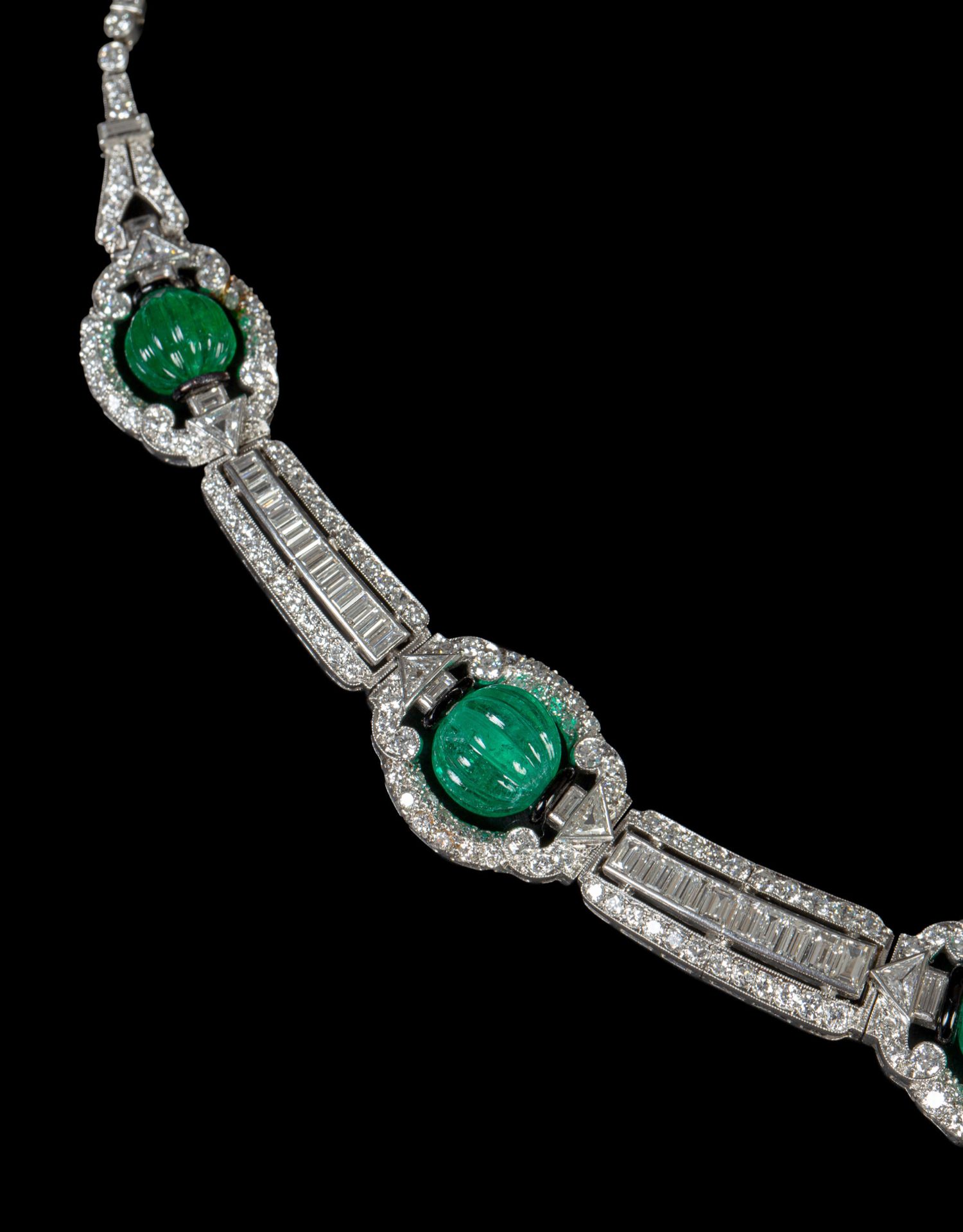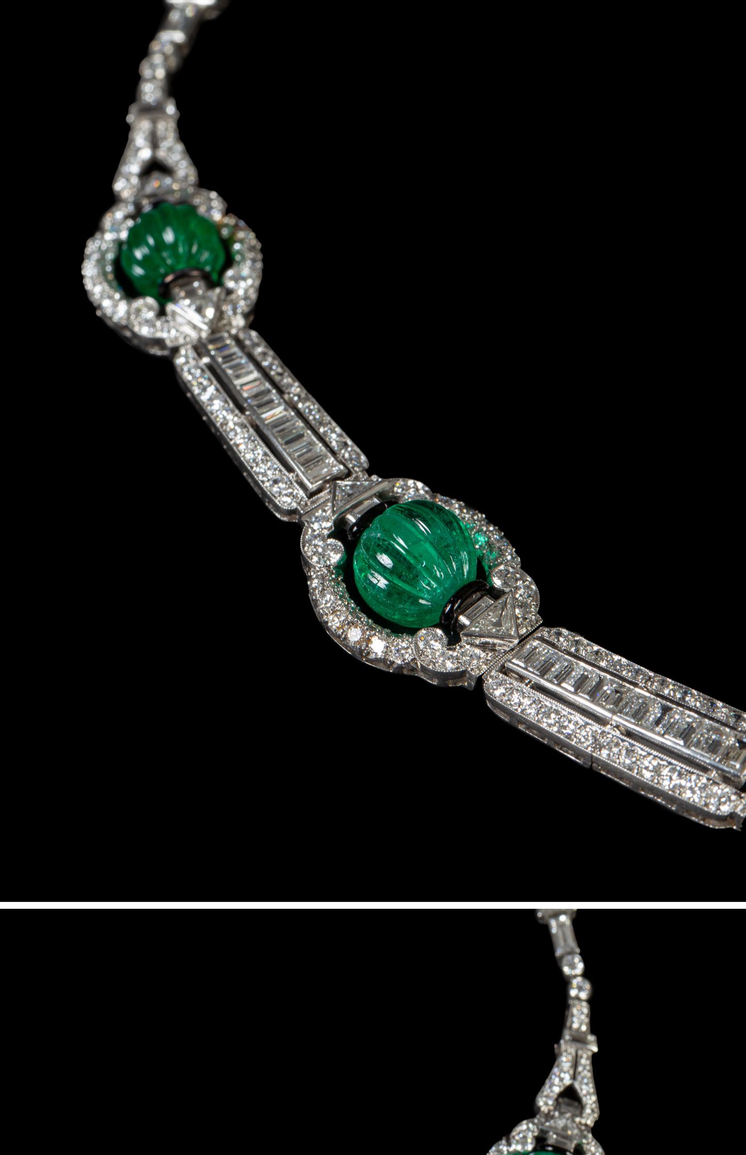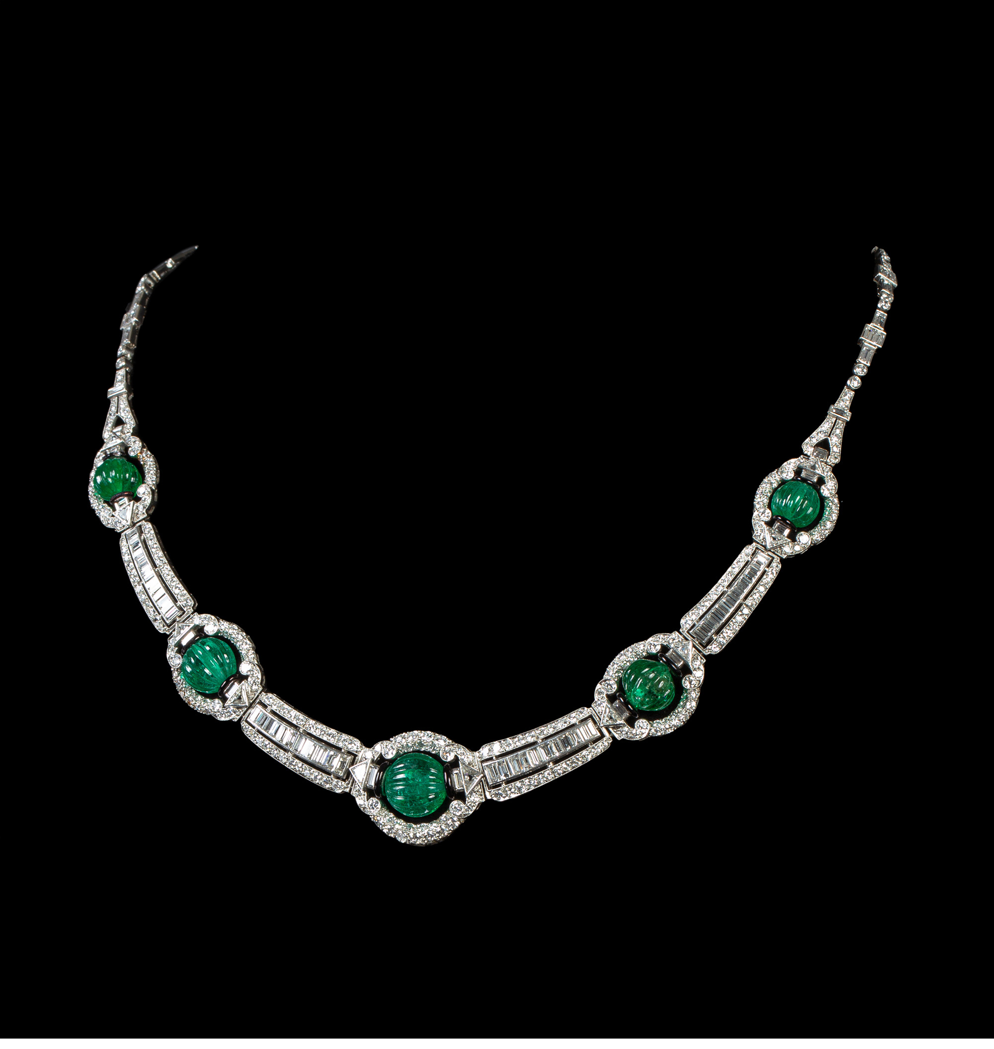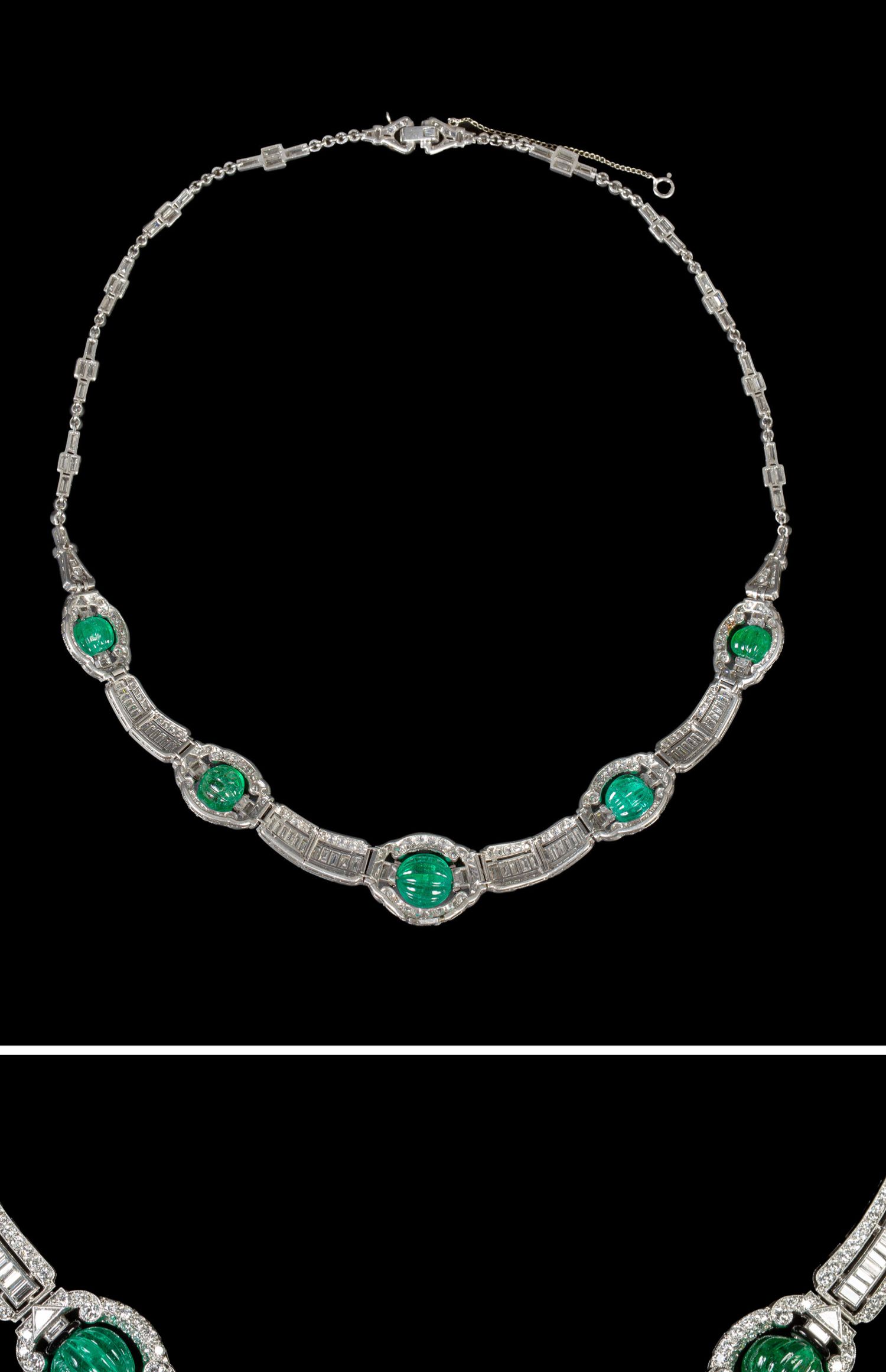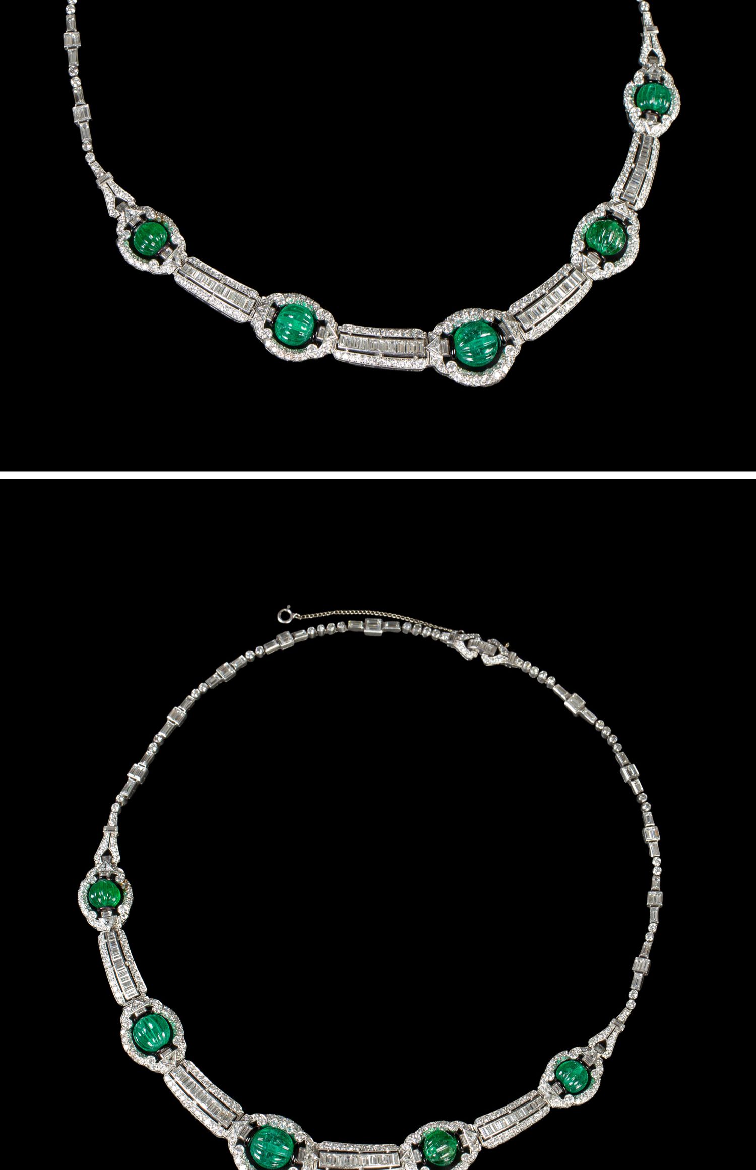 独角鹿西洋古董装饰艺术风格铂金镶祖母绿钻石珐琅几何造型项链