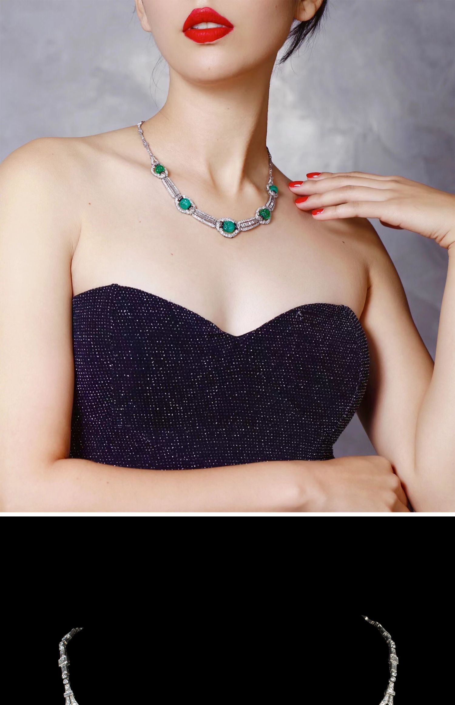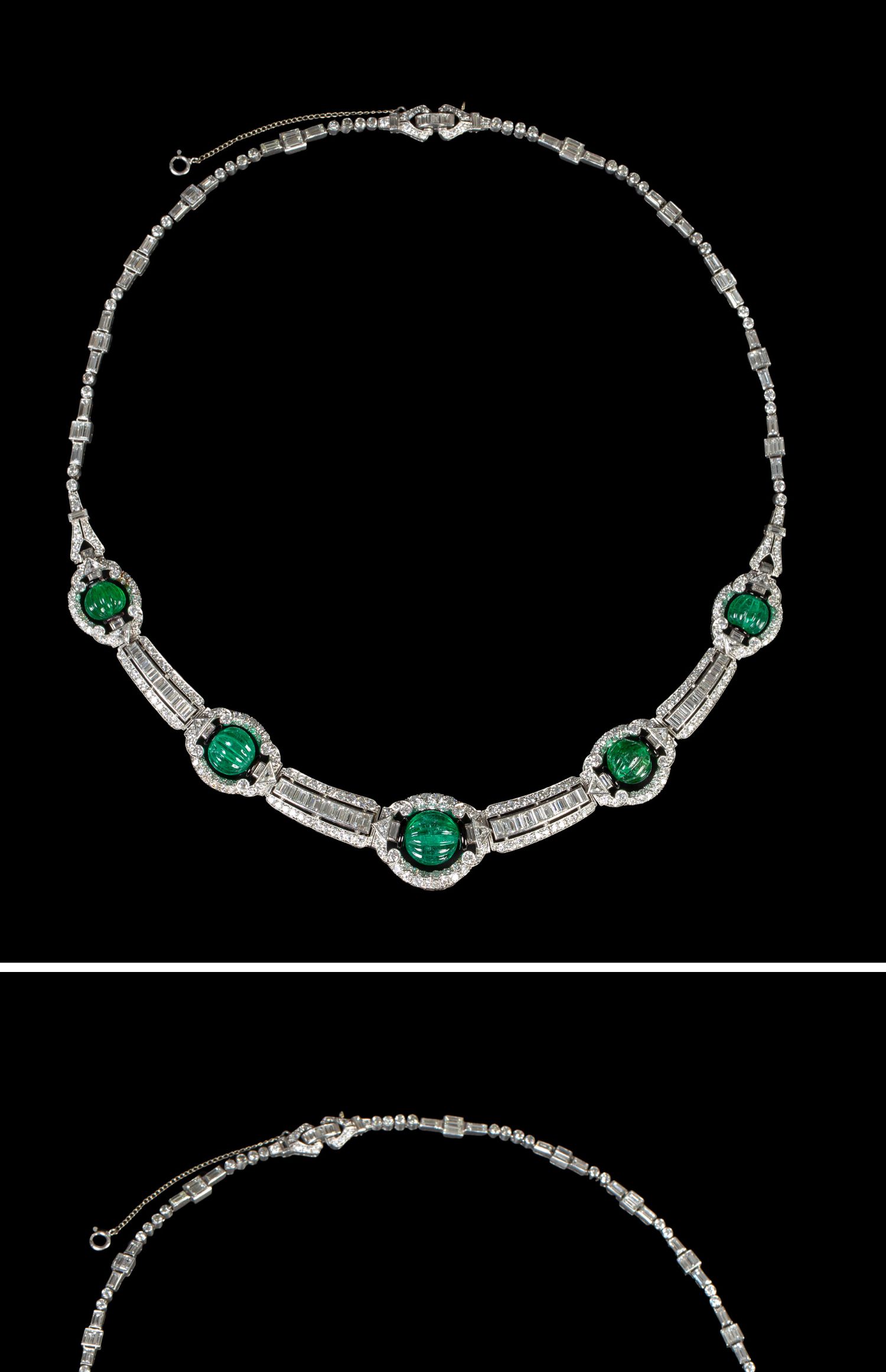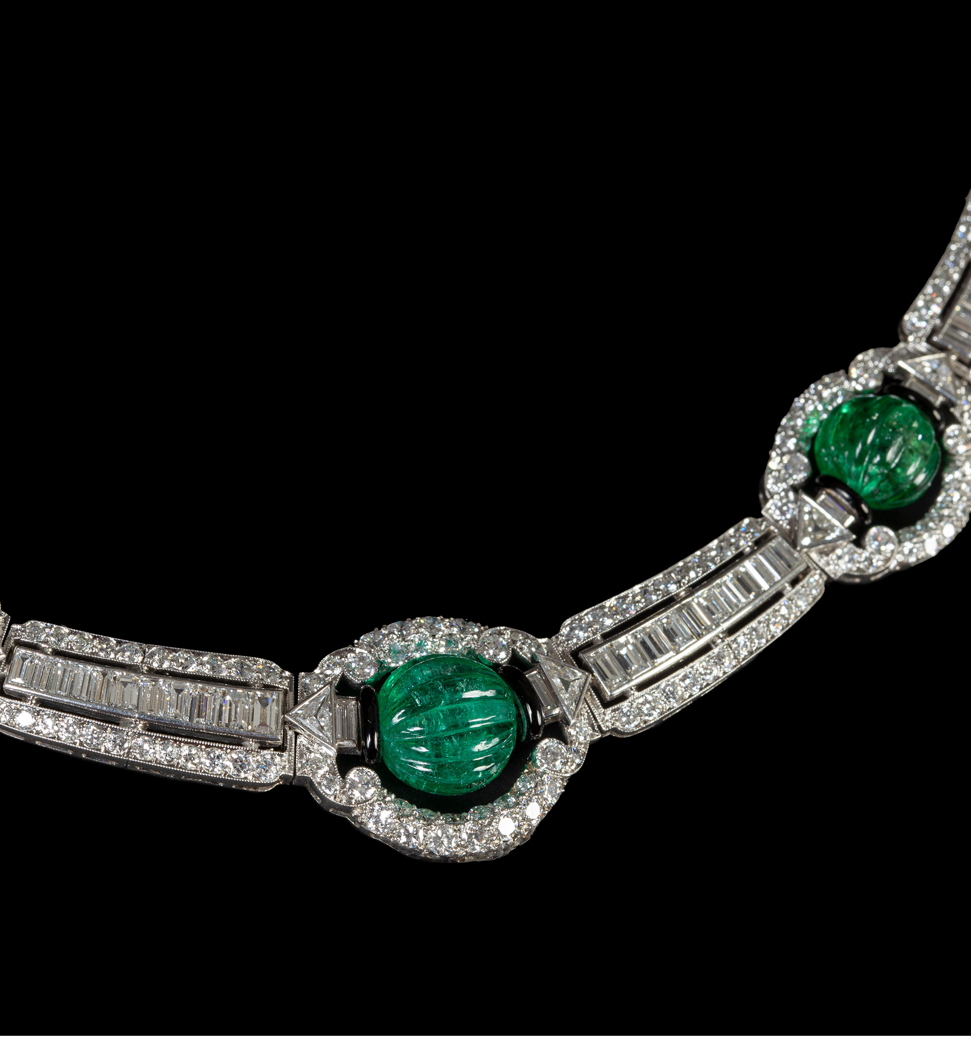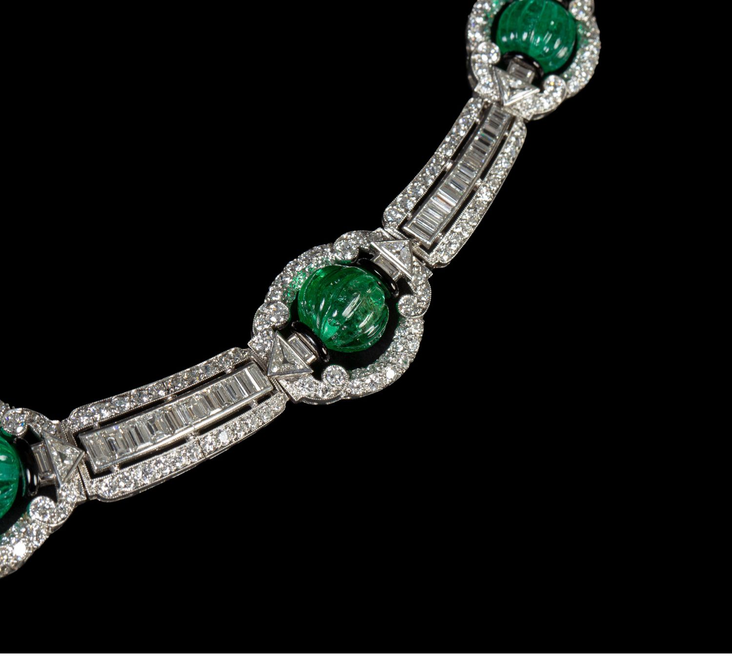独角鹿西洋古董装饰艺术风格铂金镶祖母绿钻石珐琅几何造型项链