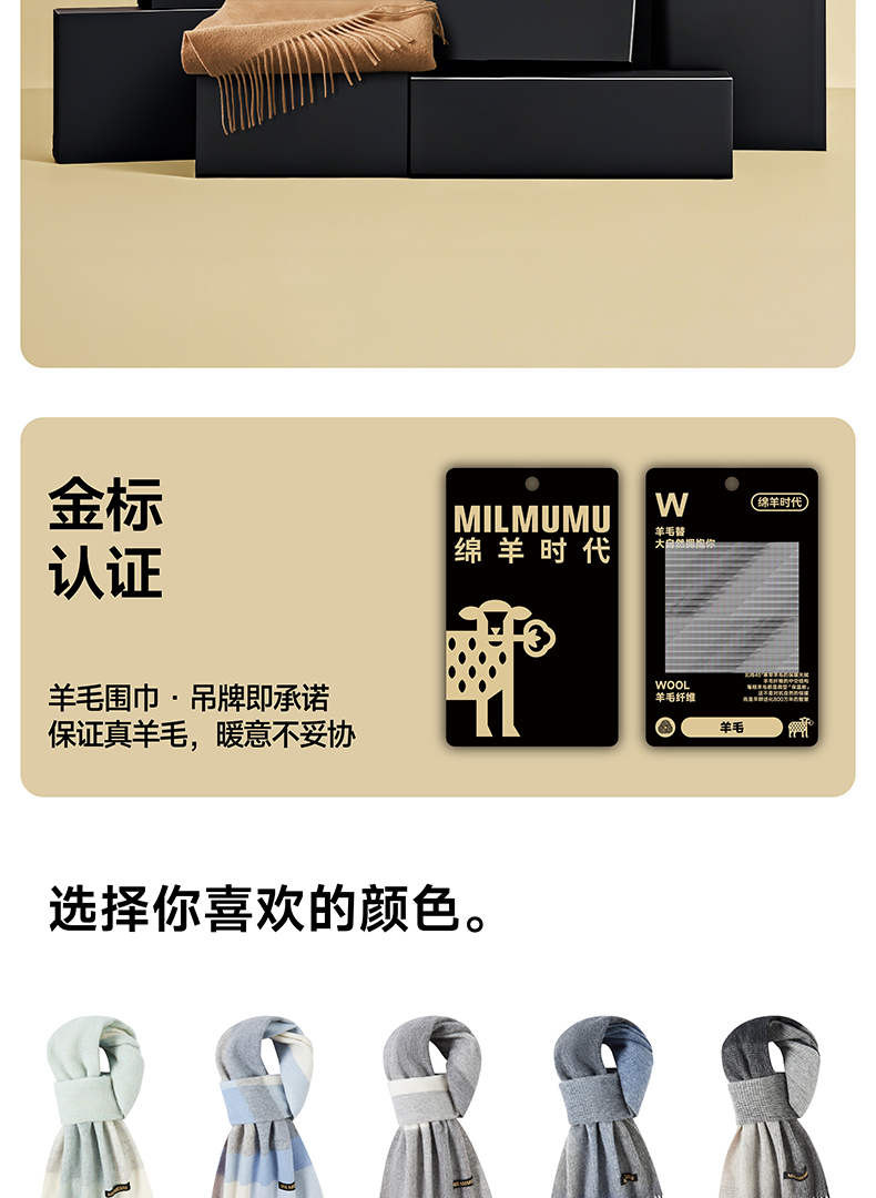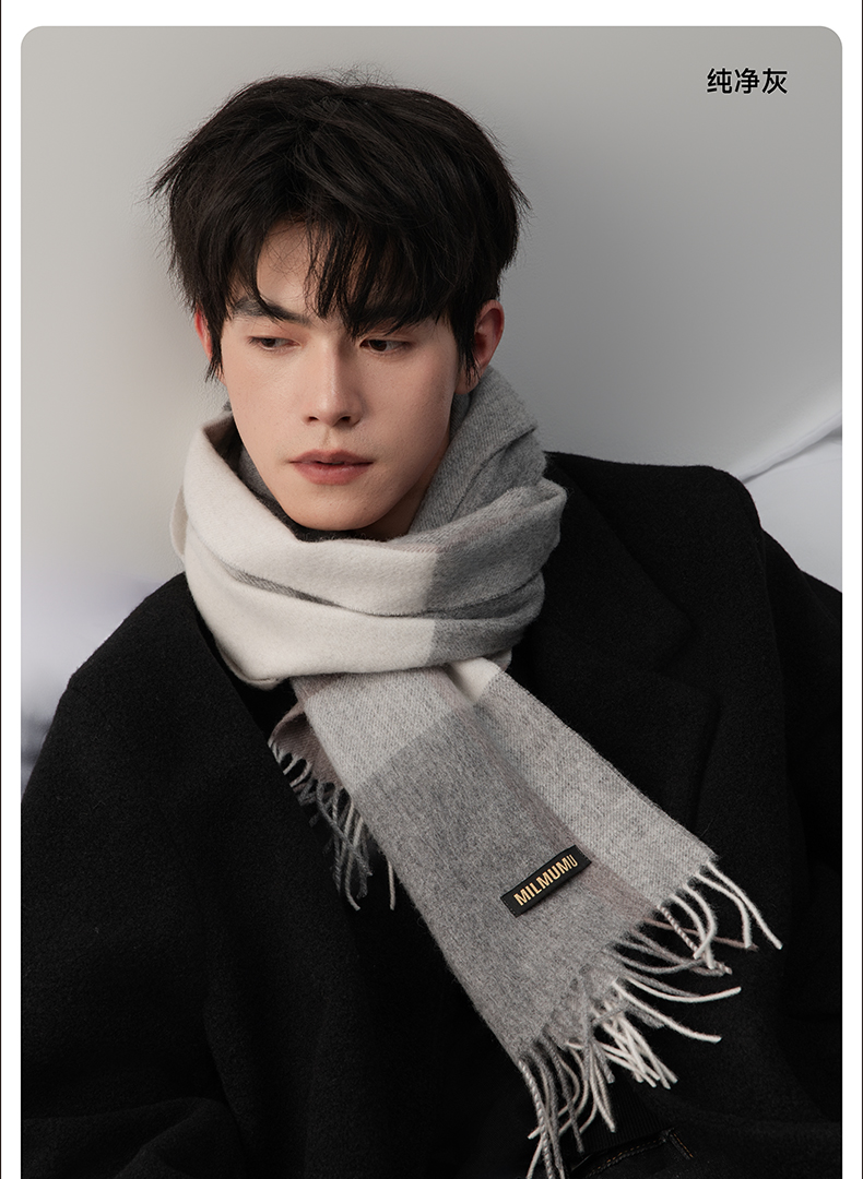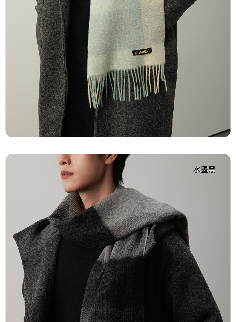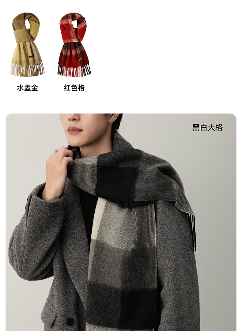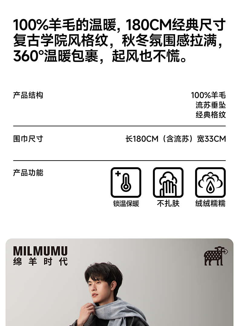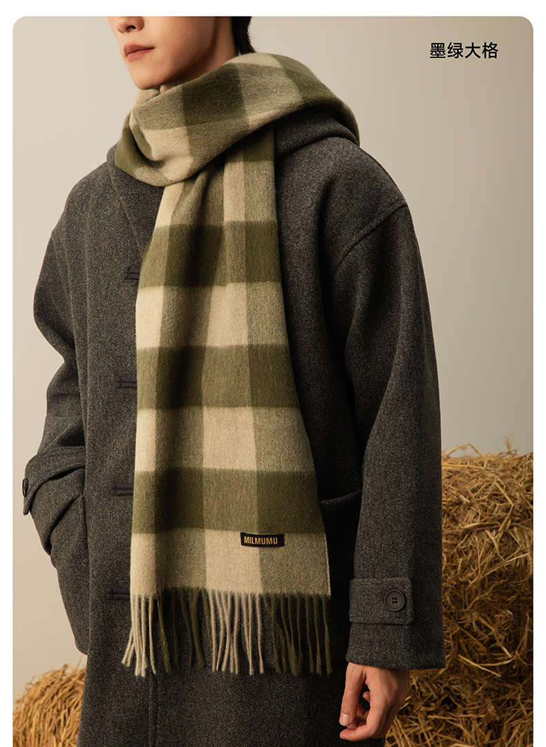 MILMUMU 经典格纹百分百羊毛围巾 男女同款礼盒装 180*33CM 经典格纹计,保暖同时,点缀你的秋冬穿搭,温度与时尚感并存