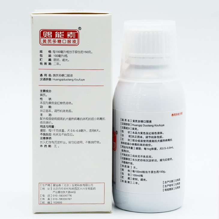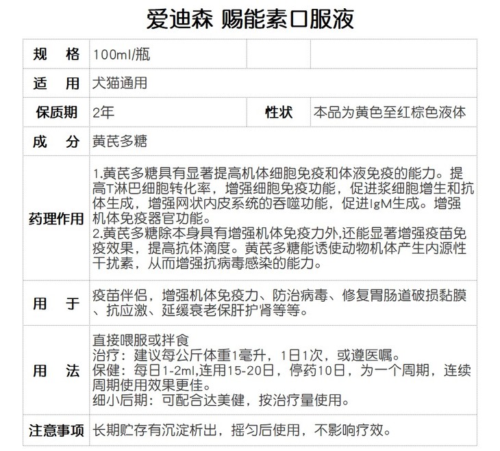 爱迪森 赐能素(黄氏多糖)100ml/瓶 ,2027年10月22号到期,1瓶,扶正固本,调节机体免疫。配合疫苗使用提高抗犬瘟抗体和抗细小抗体的效价