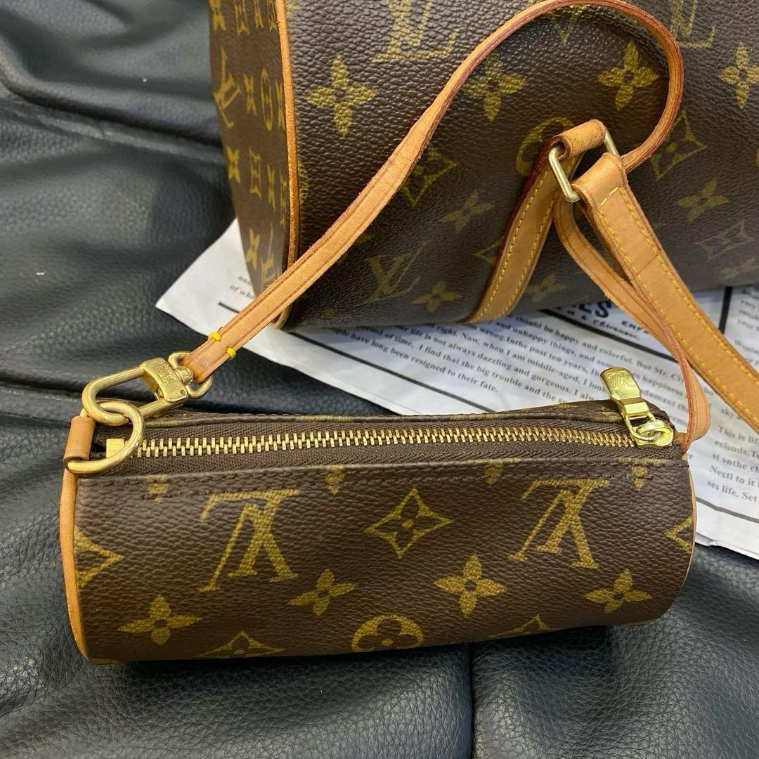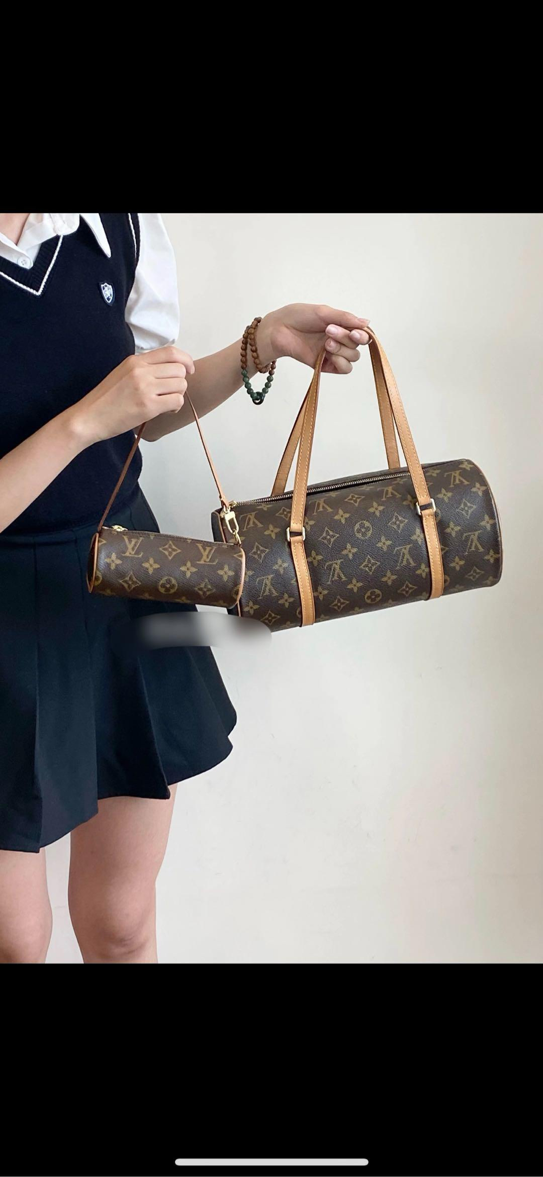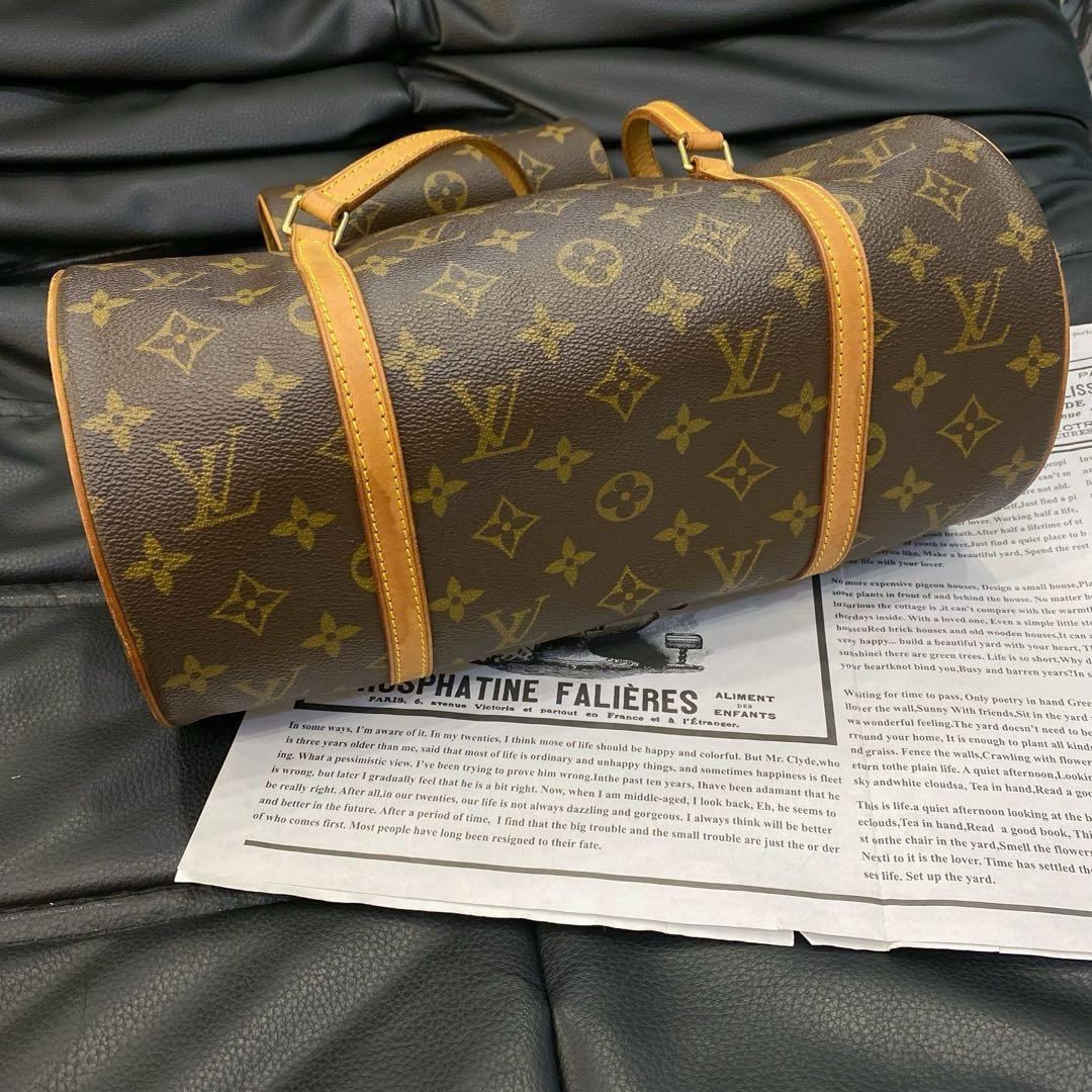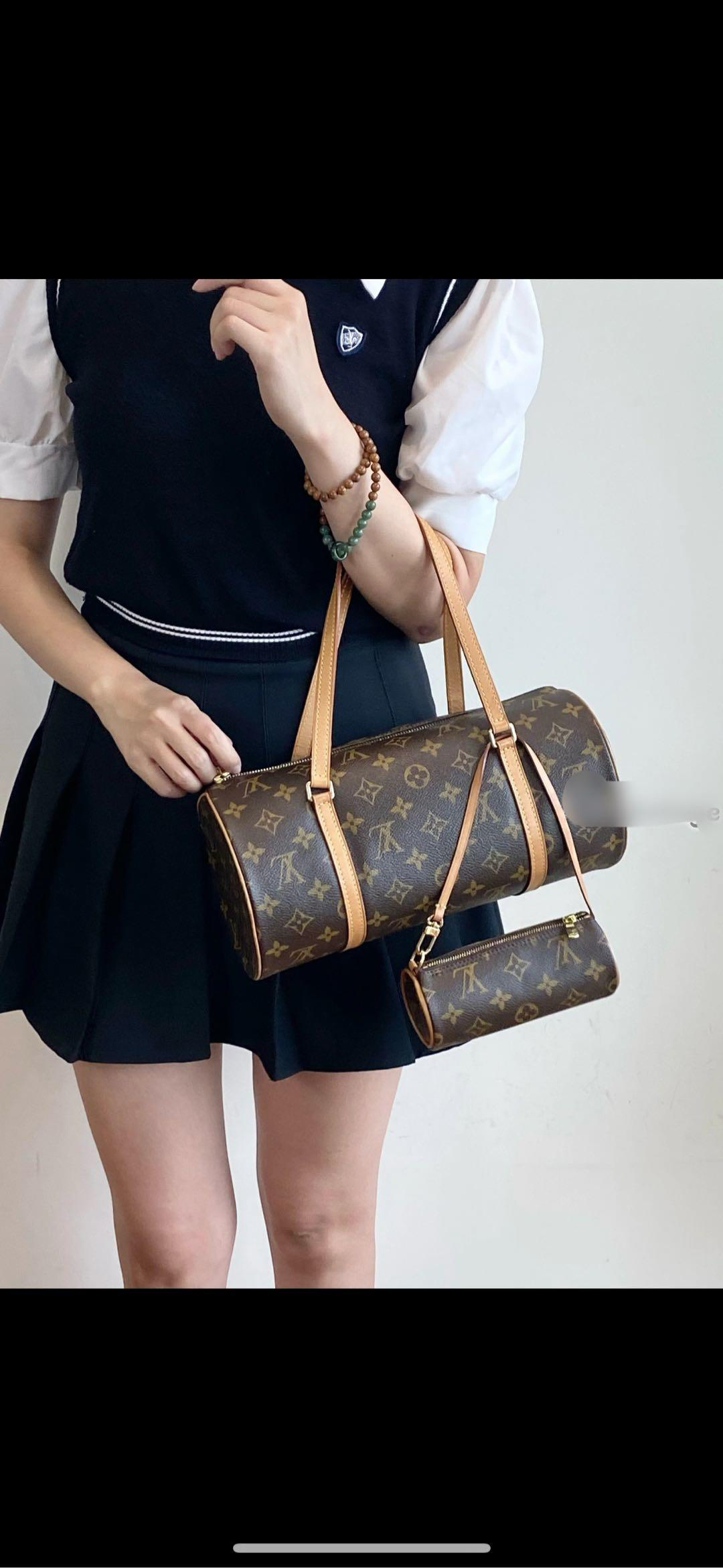 【商品詳情】正品二手 LV 中古 巴比龙 30 老花 圆筒包👜93新 30*15 配件:子袋。植绒革深棕色。个性时尚复古。