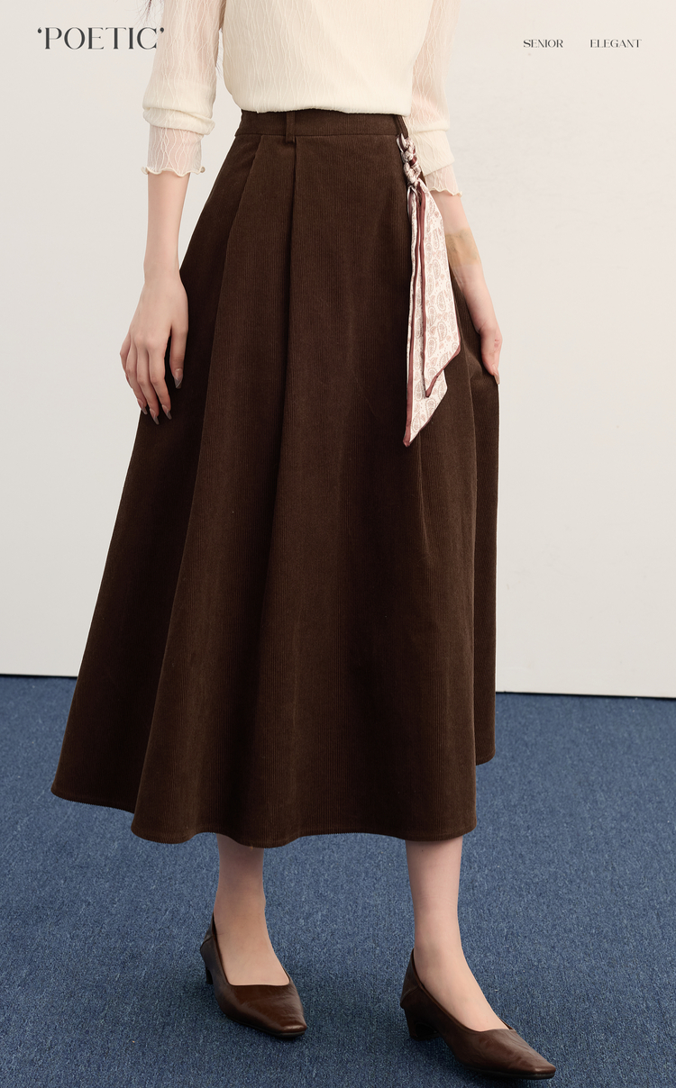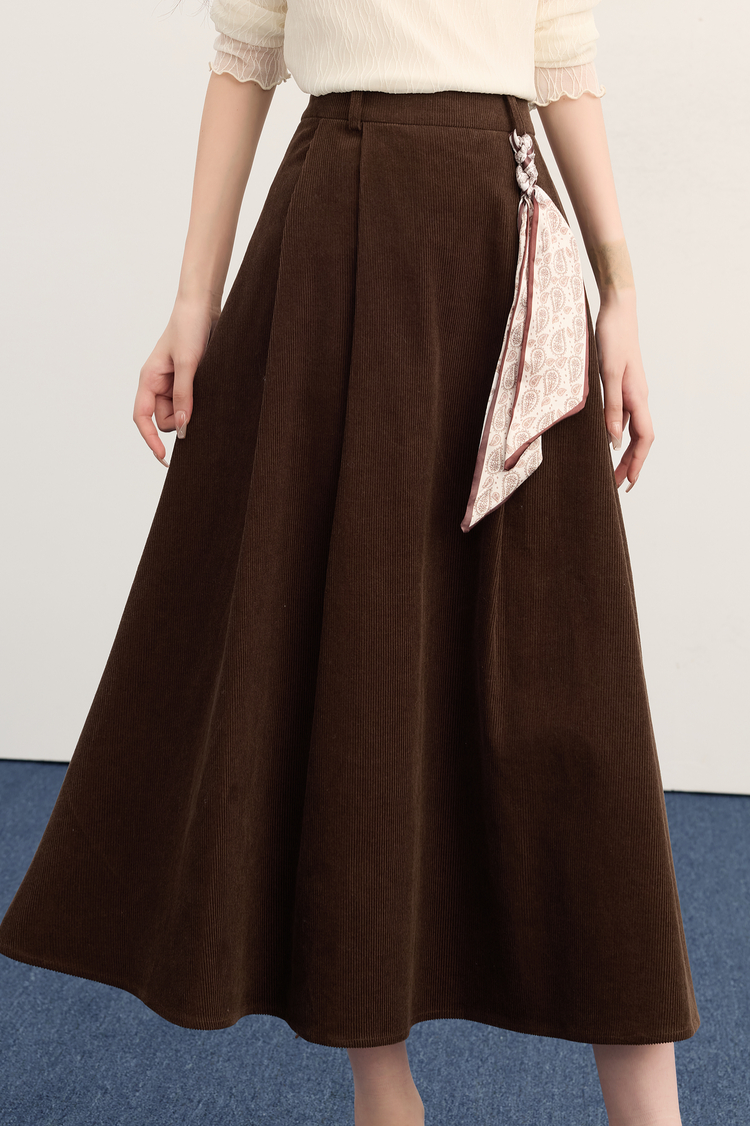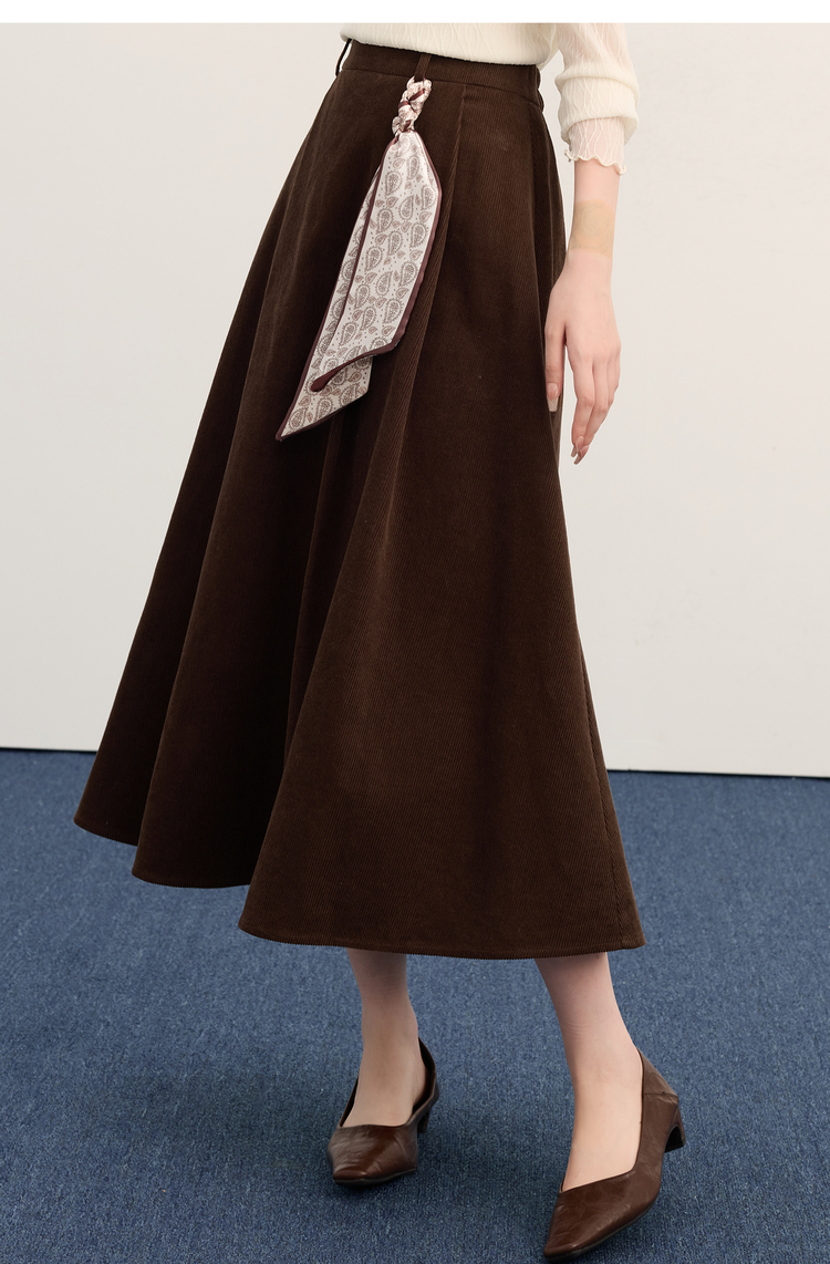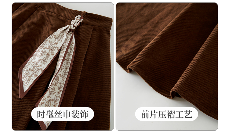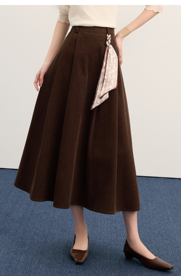 【11/5新品】熙世界琥珀流光风灯芯绒半身裙女秋冬设计感丝巾复古咖色a字伞裙