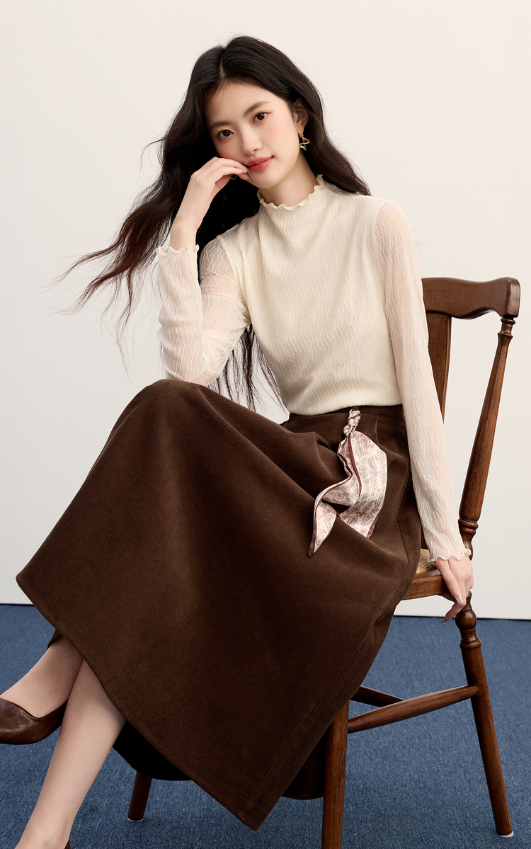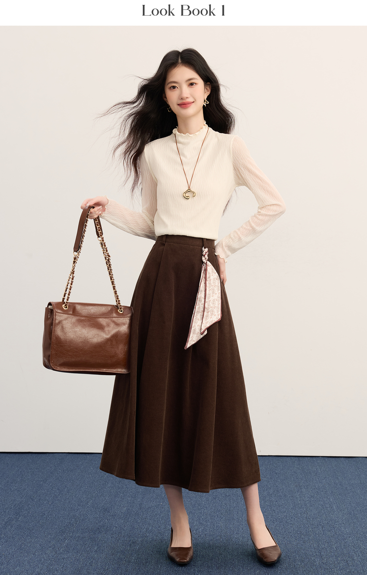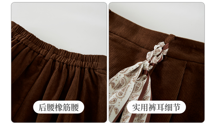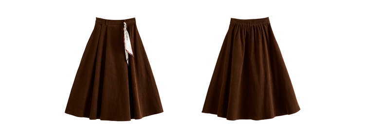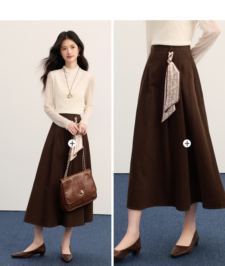 【11/5新品】熙世界琥珀流光风灯芯绒半身裙女秋冬设计感丝巾复古咖色a字伞裙