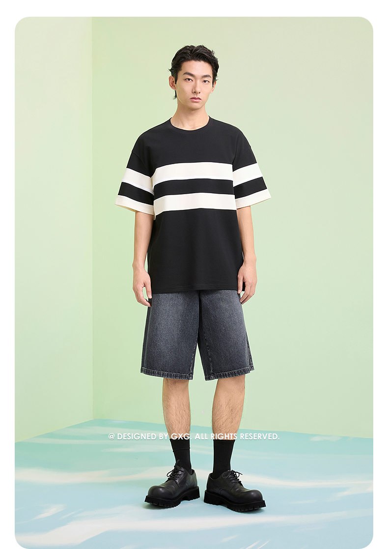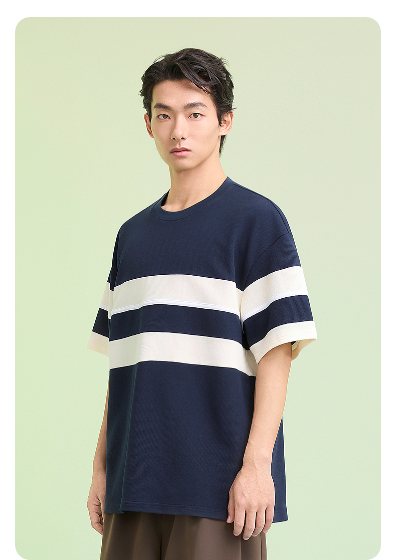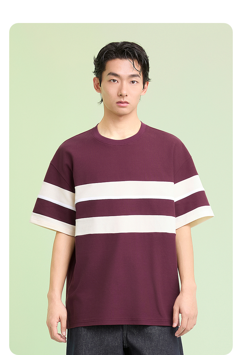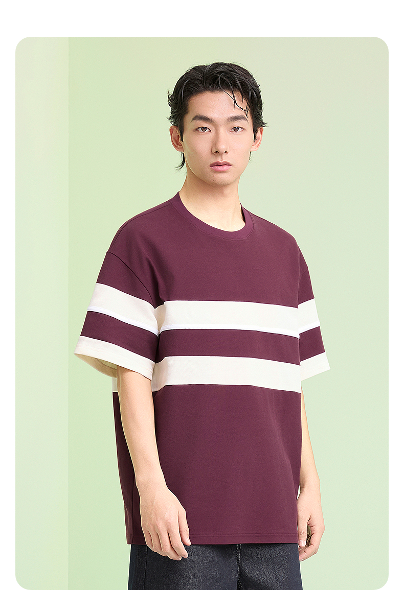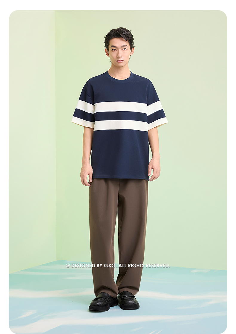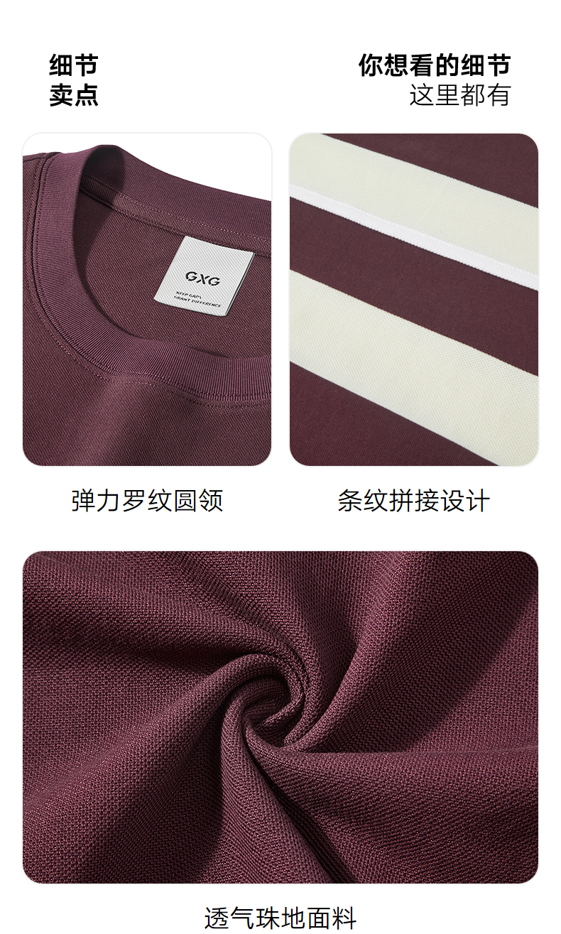 GXG男装 圆领T恤条纹设计上衣多色短袖针织 2025夏季热卖